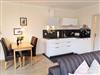 Die offene Küche beinhaltet eine voll ausgestattete Einbauküchenzeile mit 4-Platten-Ceran-Kochfeld, Dunstabzug, Backofen, Kühlschrank mit Gefrierfach, Kaffeemaschine, Wasserkocher und Toaster. Die Küche ist mit Geschirr, Gläsern, Besteck und Töpfen bestens und ausreichend ausgestattet.