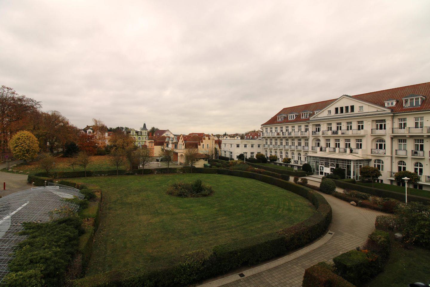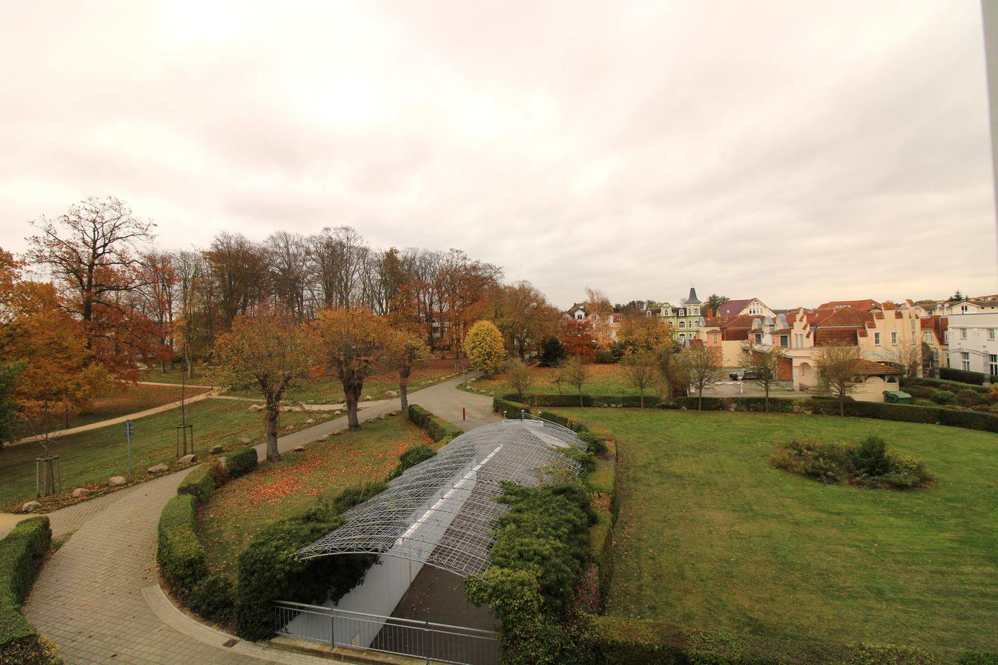 Das freundliche und moderne Wohn-/Esszimmer verfügt über eine separate Sitzgruppe mit bequemer (Schlaf-)Couch, Sessel und Couchtisch, einen separaten Esstisch mit 3 Stühlen sowie ein Sideboard. Vom Wohnzimmer aus haben Sie direkten Zugang zu dem ca. 8 m² großen Balkon (nach Osten ausgerichtet). Von hier gelangen Sie zum dem beheizten Pavillon (ca. 16 m²) mit einem traumhaften Blick auf die Ostsee und den direkt gegenüber liegenden Baltic-Park. Hier sitzen Sie auf der bequemen Korbmöbel-Sitzgruppe entspannt und gemütlich mitten im Grünen und können abends bei einem guten Glas Wein in Ruhe die lauen Sommernächte genießen!
