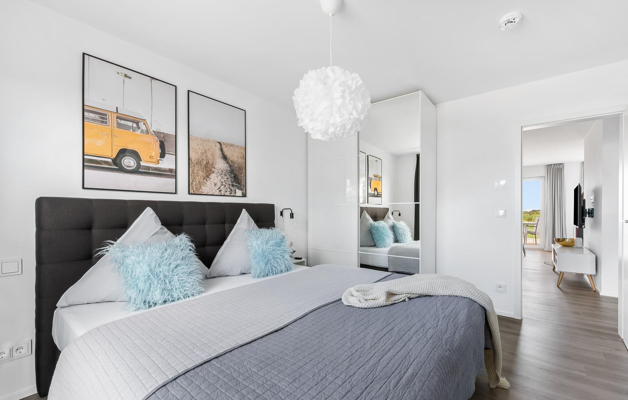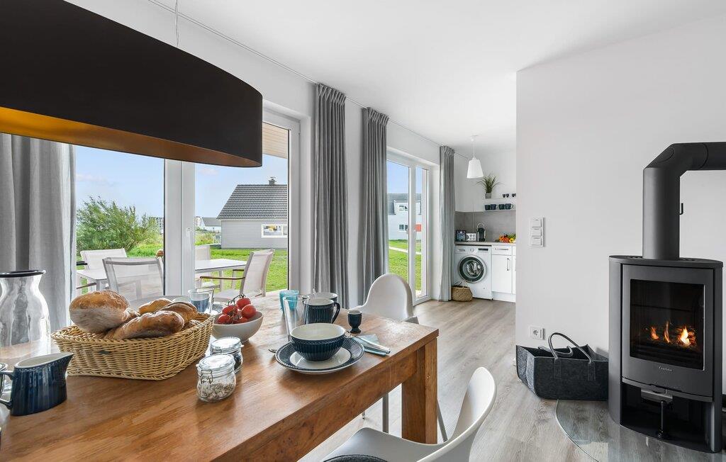 Drømmer I om en afslappende ferie ved Østersøen med hele familien? Så er COASTAL LOVE lige hvad I har brug for! I kan holde en skøn ferie her kun få minutters gang fra Weidefelds sandstrand, som har en kiosk og en rigtig hyggelig restaurant. Og hvis stranden ikke er jeres ting, er der en minigolfbane i nordisk stil i umiddelbar nærhed, som garanterer sjov for hele familien. Stranden er en smuk (næsten stenfri) sandstrand med et børnevenligt, større ståområde i starten. I højsæsonen overvåges dele af stranden af DLRG. KÜSTENLIEBE er indrettet i moderne skandinavisk stil, og den åbne og rummelige stue/alrum udstråler feriestemning fra første øjeblik. Det hyggelige sofahjørne med TV (via DVBT) og pejs inviterer til at dase eller spille spil sammen. I kan gennem vinduerne fra gulv til loft se ud til den tilstødende terrasse. Moderne havemøbler og en grill inviterer jer til at tilbringe selskabelige sommeraftener. Det indbyggede køkken lader intet tilbage at ønske, og kreativ madlavning bliver hurtigt en ny hobby her. Det store soveværelse er udstyret med en 1,80 m bred, komfortabel boxmadras. Det andet soveværelse kan tilpasses optimalt til beboernes behov som dobbeltseng eller med 2 enkeltsenge og en ekstra udtræksseng. Et legeområde med et malebord giver variation til de små gæster. Babyseng og barnestol er til rådighed i huset! På badeværelset, som er udstyret med alt hvad I behøver for at have det godt, venter den infrarøde kabine på jer til et omfattende forkælelsesprogram efter lange gåture på stranden. Den tærskelfri bruser fra gulv til loft lader intet tilbage at ønske efter et besøg på stranden. For at bade selv de mindste gæster er der også et babybadekar, der kan placeres i bruseren. I bliver også forkælet med to parkeringspladser foran huset. Og cykling er næsten obligatorisk i dette smukke område - I vil elske de brede kyster! Vores favoritsted: På terrassen bag huset, lytte til mågerne, der skriger i de behagelige afslappende stole og ser de lokale fugle i parken. Ren afslapning! Bemærk venligst: OstseeResort Olpenitz er meget populært, og der bygges fortsat i parken. Ikke desto mindre kan I se frem til en 5-stjernet standard og et førsteklasses ophold. Byggeaktiviteterne kommer ikke til at forstyrre jer på ferien, og derfor gives der ikke yderligere afslag i prisen.