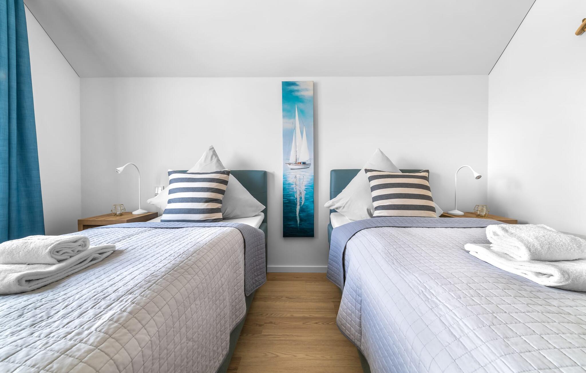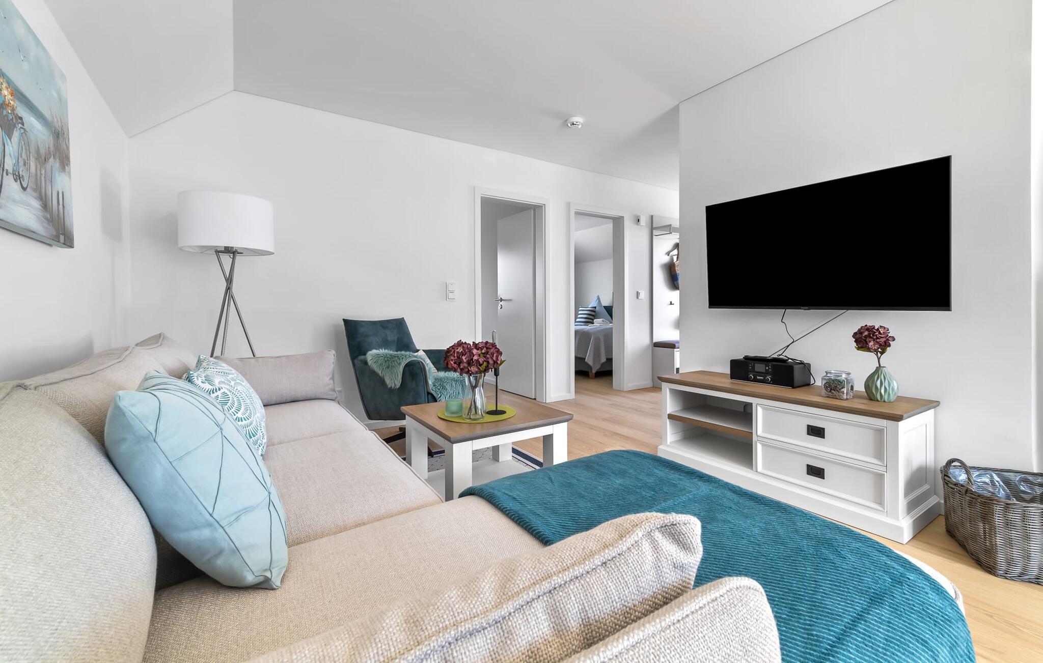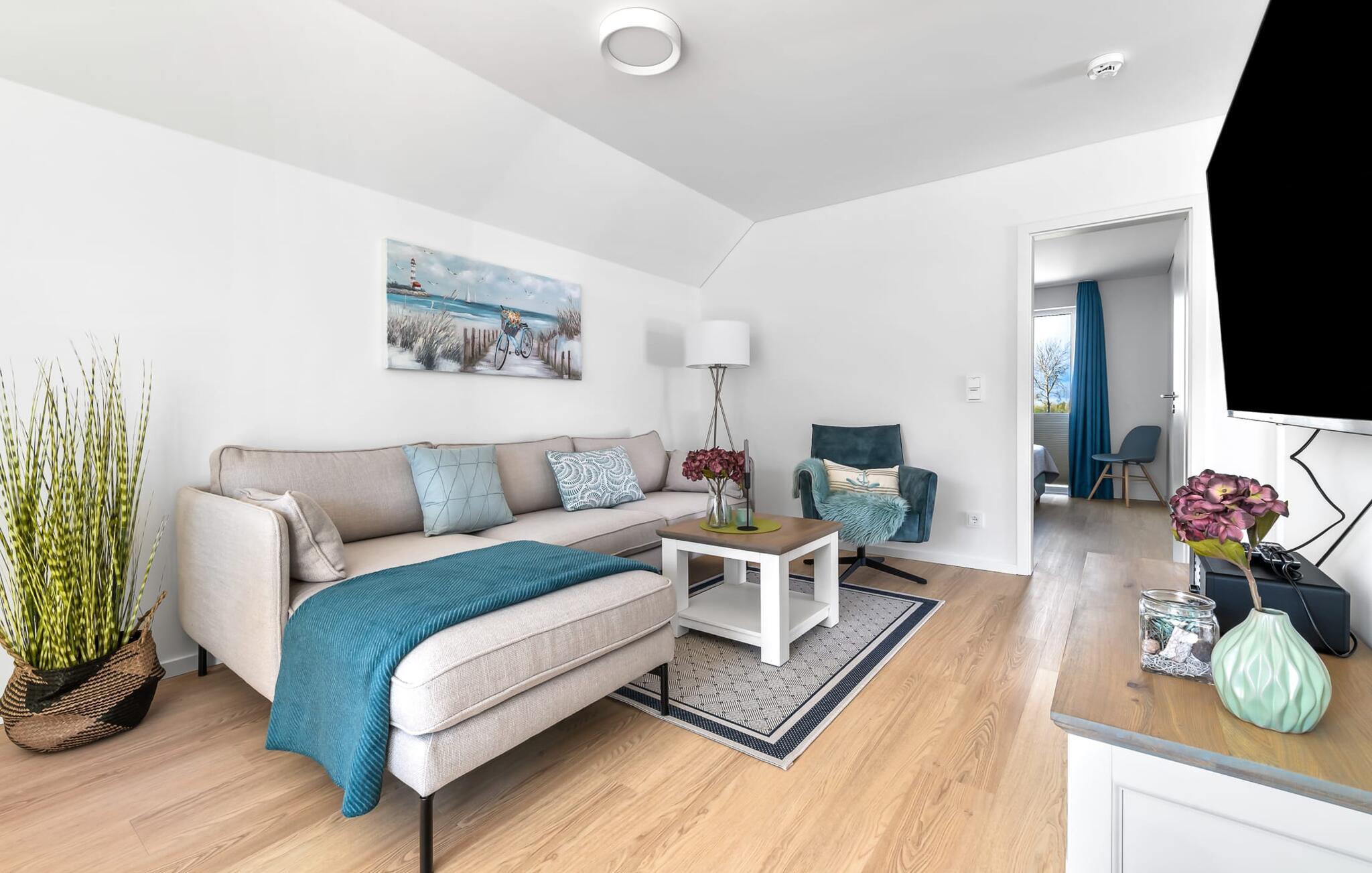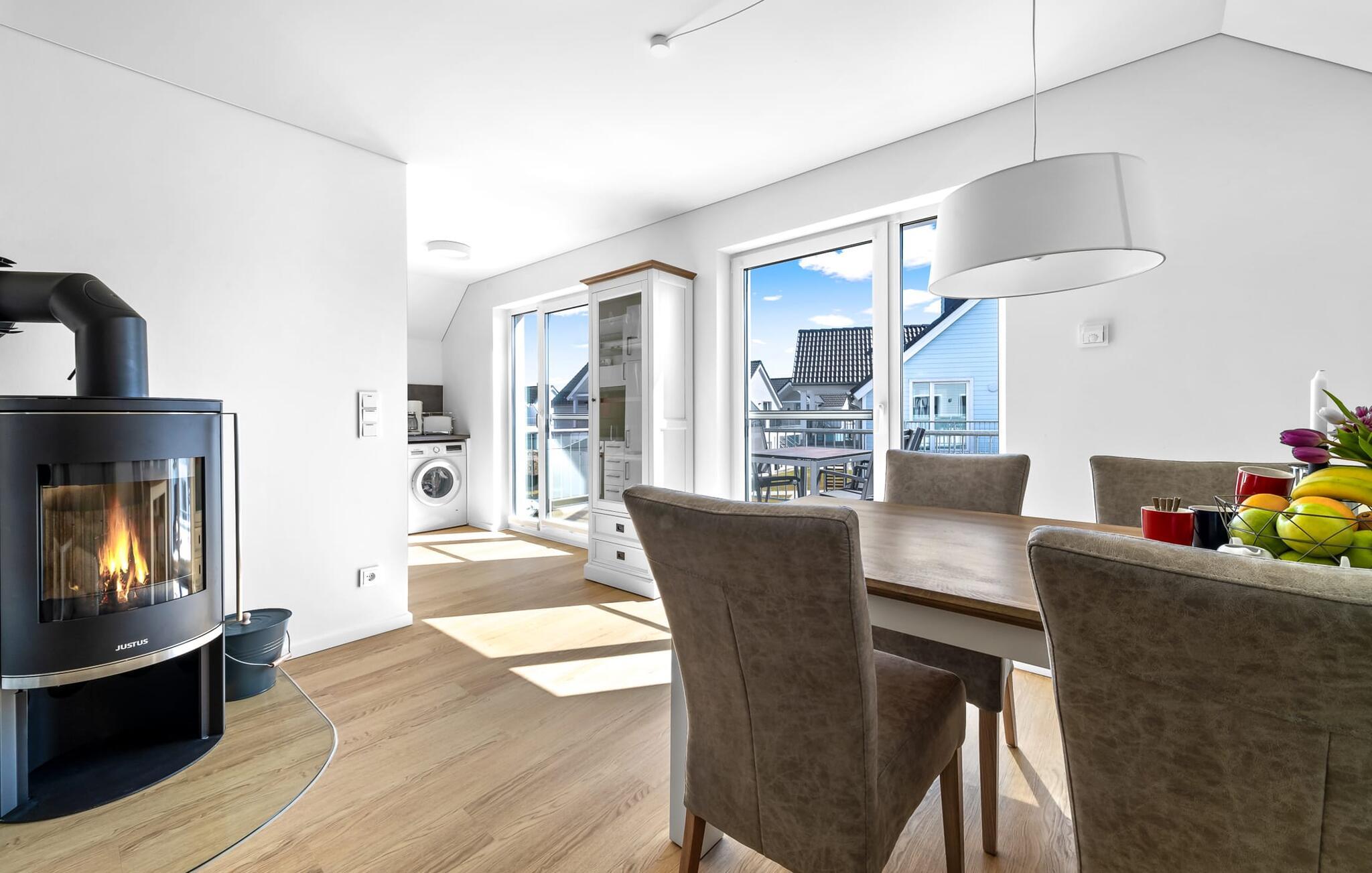 Velkommen til vores hyggelige ferielejlighed på første sal! Nyd jeres ophold i denne smukke bolig, perfekt til op til fire personer. Start jeres dag på den solrige terrasse, som er oversvømmet med varmt sollys om morgenen, eller brug den elektriske grill til en afslappet grill om aftenen. Lejligheden har to komfortable soveværelser, der garanterer fred og afslapning. Komforten på badeværelset rundes af med en brusekabine i gulvniveau og egen infrarød kabine. På køligere aftener kan I varme jer ved pejsen og tilbringe hyggelige timer. Et smart-tv er tilgængeligt for yderligere underholdning. Det fuldt udstyrede køkken inviterer jer til at tilberede lækre måltider og nyde dem sammen. Ferielejlighedens beliggenhed er ganske enkelt uovertruffen: den ligger tæt på stranden og havnepromenaden er let tilgængelig til fods. Udforsk omgivelserne og lad jer fortrylle af kystperlens skønhed. Vi ser frem til snart at byde jer velkommen som vores gæst! Vores favoritsted: Afslut dagen med at slappe af i den infrarøde kabine... Bemærk venligst: OstseeResort Olpenitz er meget populært, og der bygges fortsat i parken. Ikke desto mindre kan I se frem til en 5-stjernet standard og et førsteklasses ophold. Byggeaktiviteterne kommer ikke til at forstyrre jer på ferien, og derfor gives der ikke yderligere afslag i prisen.