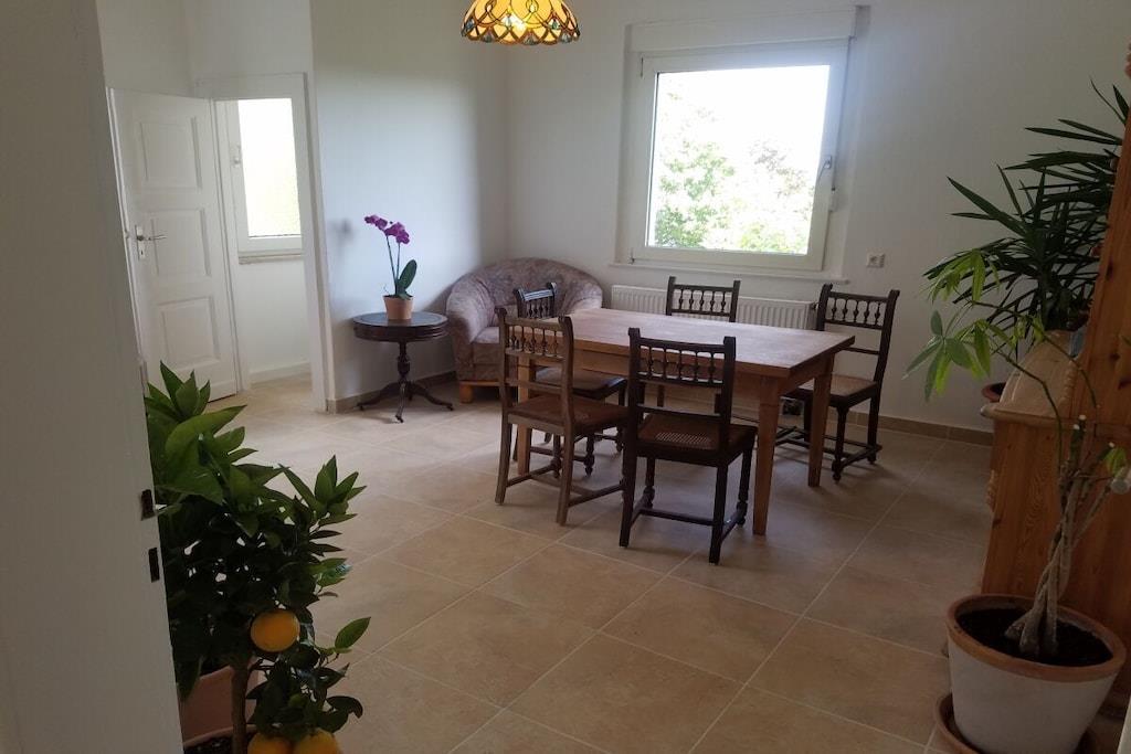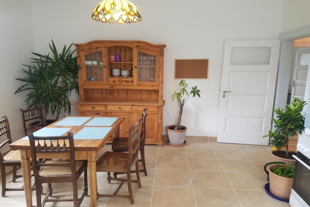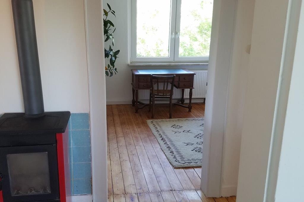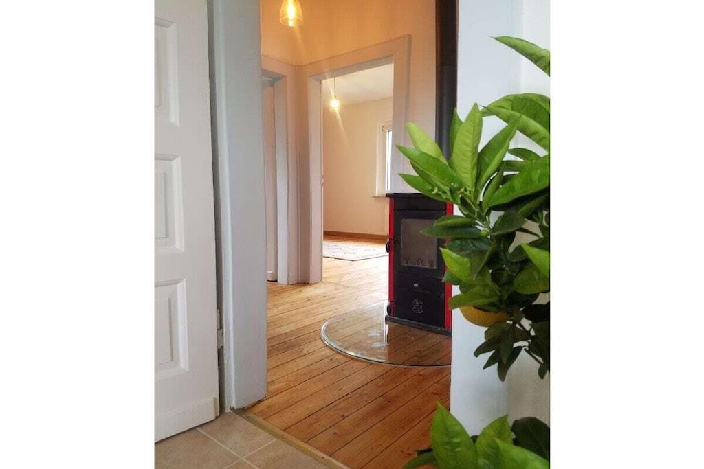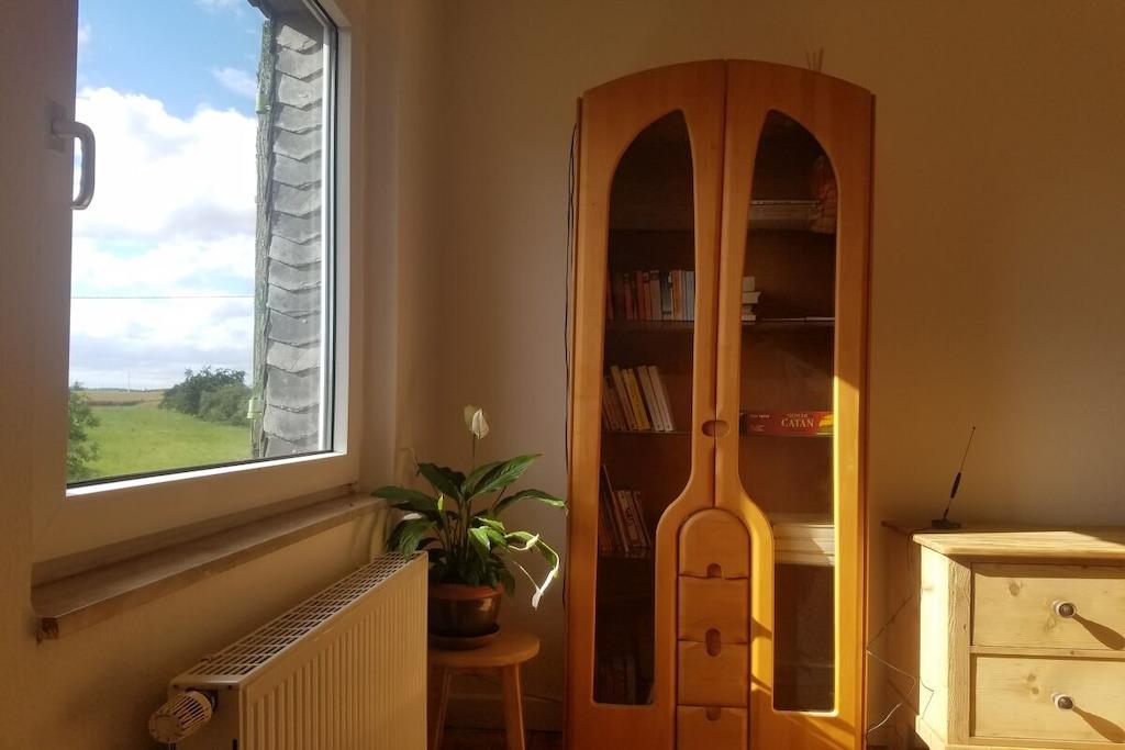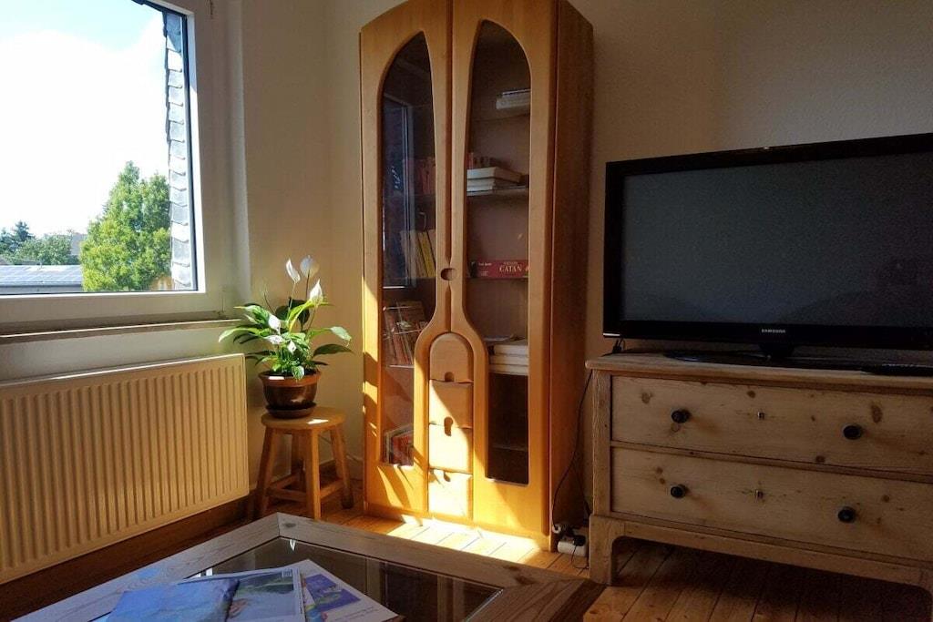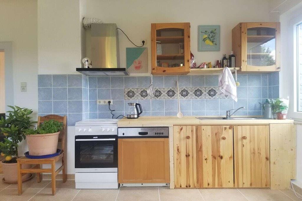 Den kombinerer charmen fra det originale og uperfekte med en hyggelig og behagelig atmosfære. Lejligheden blev renoveret i 2020 med stor sans for detaljer og en sans for sin oprindelige karakter og imponerer med sine originale trægulve, en brændeovn og de anvendte miljøvenlige, giftfri byggematerialer. Indkvarteringen Et lager af brænde inkluderet i prisen, som altid er tilgængeligt, samt et lille bibliotek med læsehjørne lover behagelige dage, selv når vejret skulle friste til at blive hængende. Smukt indrettet med et stort, lyst, sydvendt køkken-alrum, to soveværelser og en stue, er det også ideelt til familieferier (en lille, sjældent besøgt legeplads ligger lige ved siden af ejendommen). Fra vinduerne kan du nyde udsigten helt til Hunsrück eller endda helt til Maifeld og Koblenz. Den lille, rolige landsby Kail i Eifel-Mosel er et fremragende udgangspunkt for vandreture, cykelture og kulturelle/historiske udflugter i det omkringliggende område og længere væk. Faciliteter På cirka 75 kvadratmeter finder du alt, hvad du behøver – selv til et længere ophold. Fra et bogbyttehjørne, Wi-Fi/LAN-forbindelse (TV) til brætspil, en lille kaffe- og juicemaskine, friske økologiske krydderurter og et fantastisk køkken. Brugen af naturlige byggematerialer som ler- og kalkpuds, økologisk maling og olieret massivt træ gør dit ophold behageligt, selv for allergikere og følsomme personer.