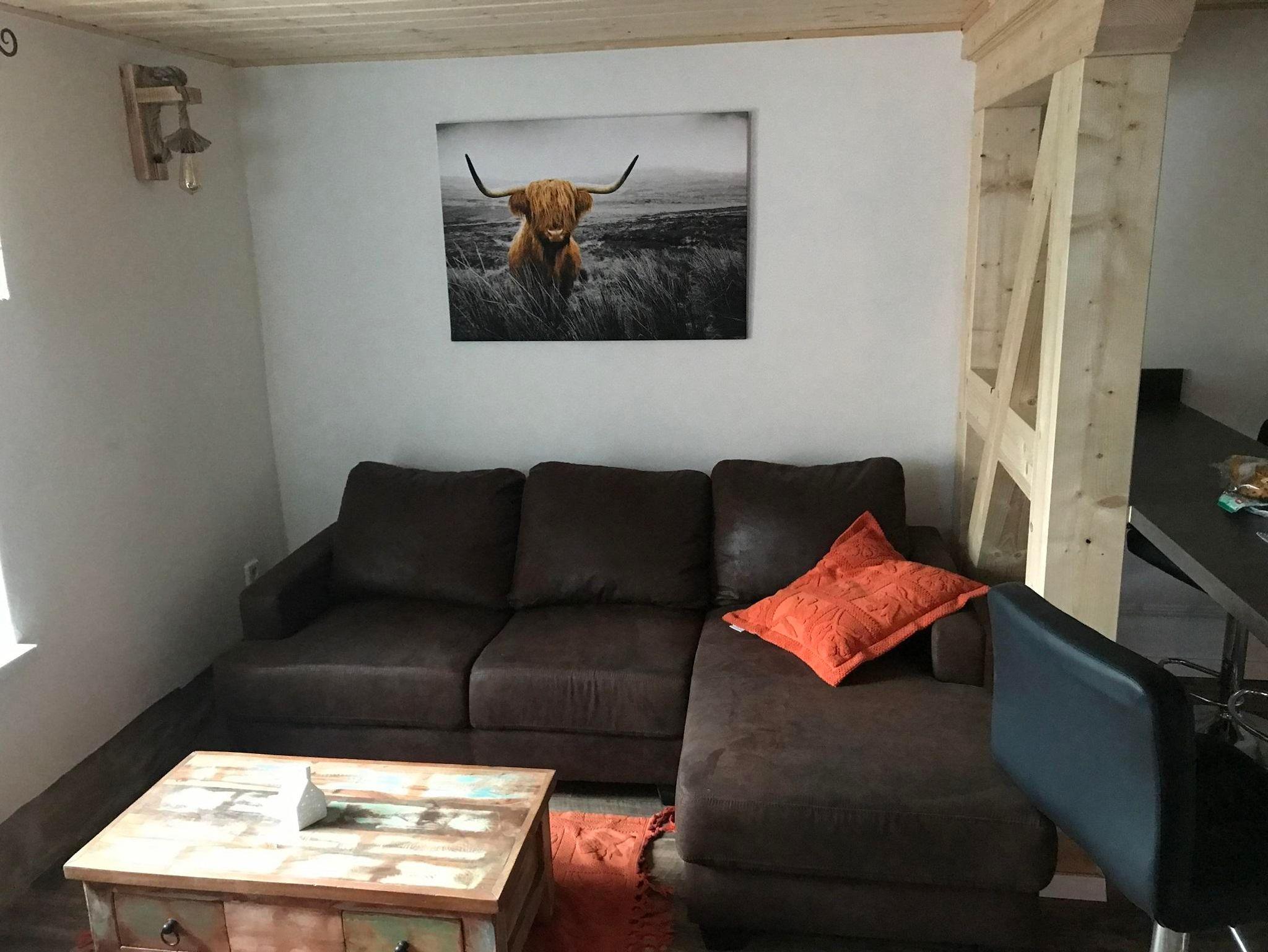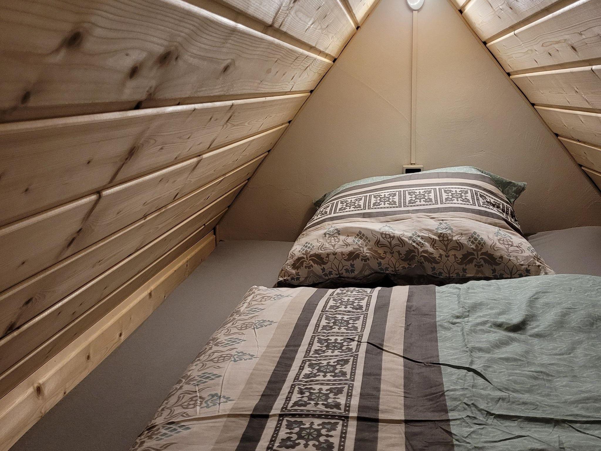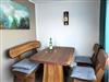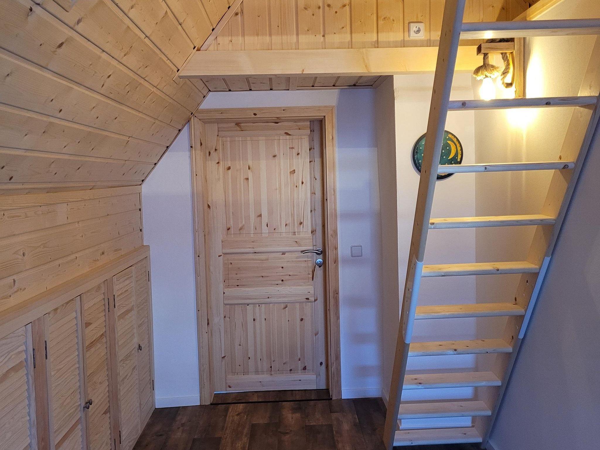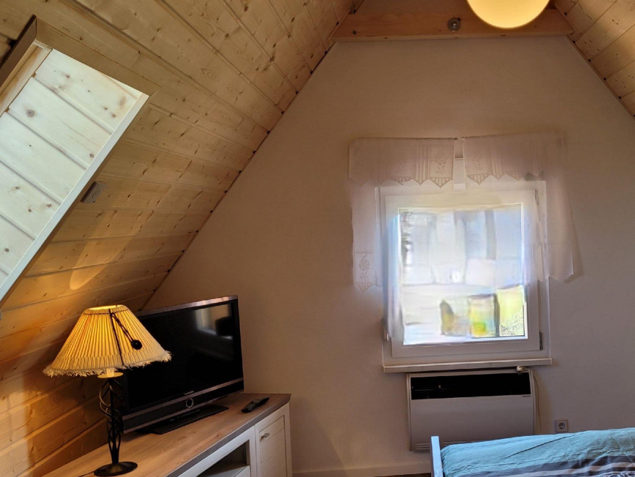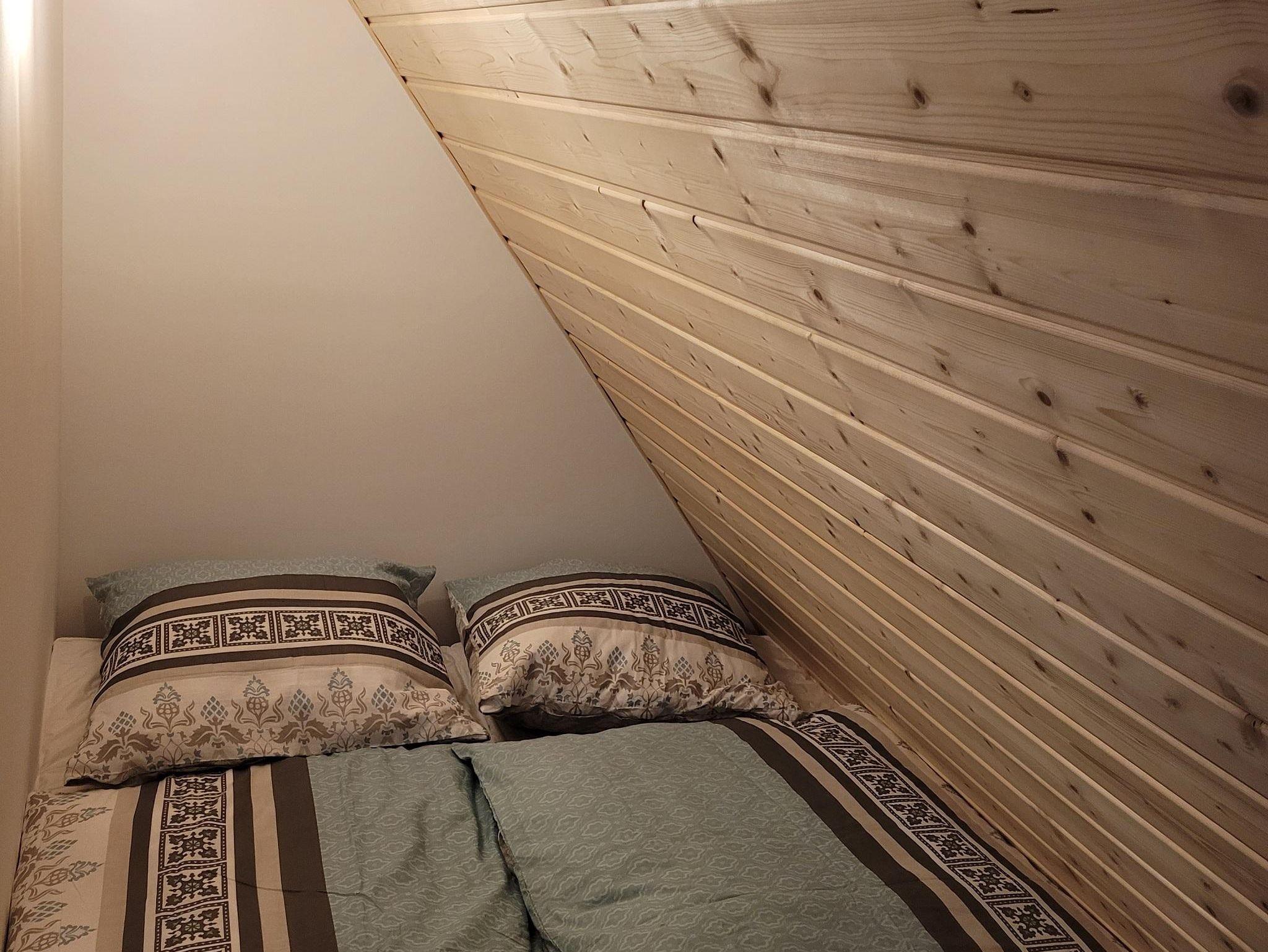 Im Obergeschoß befindet sich der Schlafbereich mit einem großen Schlafzimmer (Doppelbett, Flachbild-TV), einem kleinen Schlafraum sowie einem Schlafboden der für Kinder geeignet ist. Das Wohnzimmer mit dem Kaminofen, Sofa und Flachbild -TV lädt zu einem gemütlichen Aufenthalt ein. Die komplett ausgestattete Küche mit Spülmaschine, Kühlschrank mit Gefrierfach und Herd lässt keine Wünsche offen. Das moderne, geräumige Badezimmer sowie der Eingangsbereich mit der rustikalen Sitzgruppe runden das Gesamtbild ab.