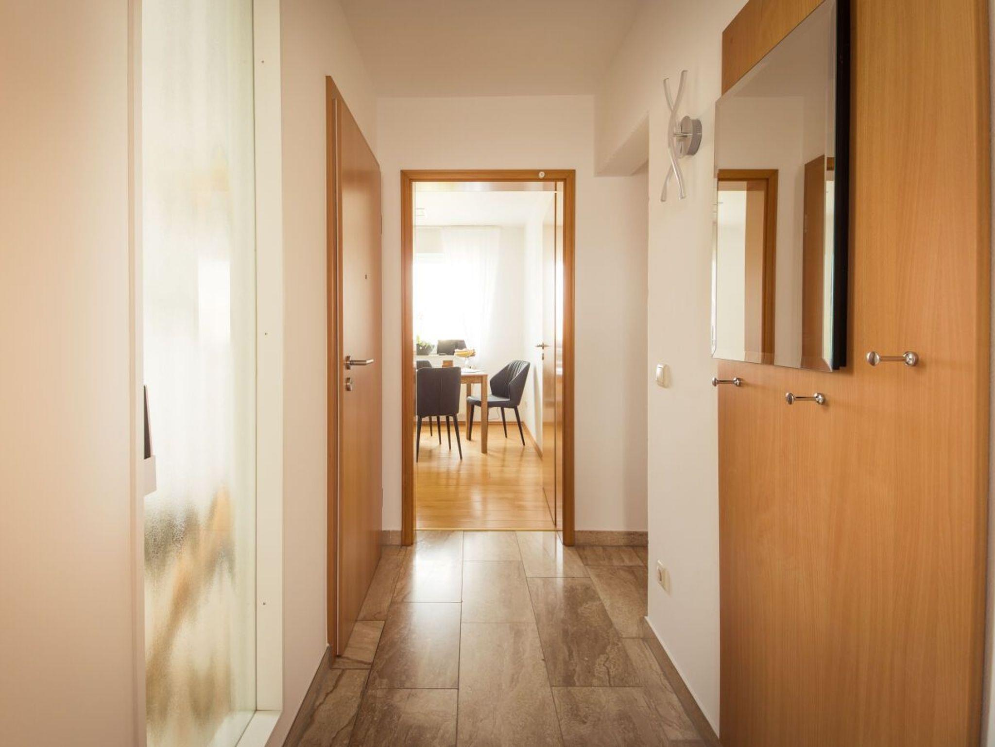 einer vollausgestatteten Küche, einem Flur sowie einem geräumigen Badezimmer