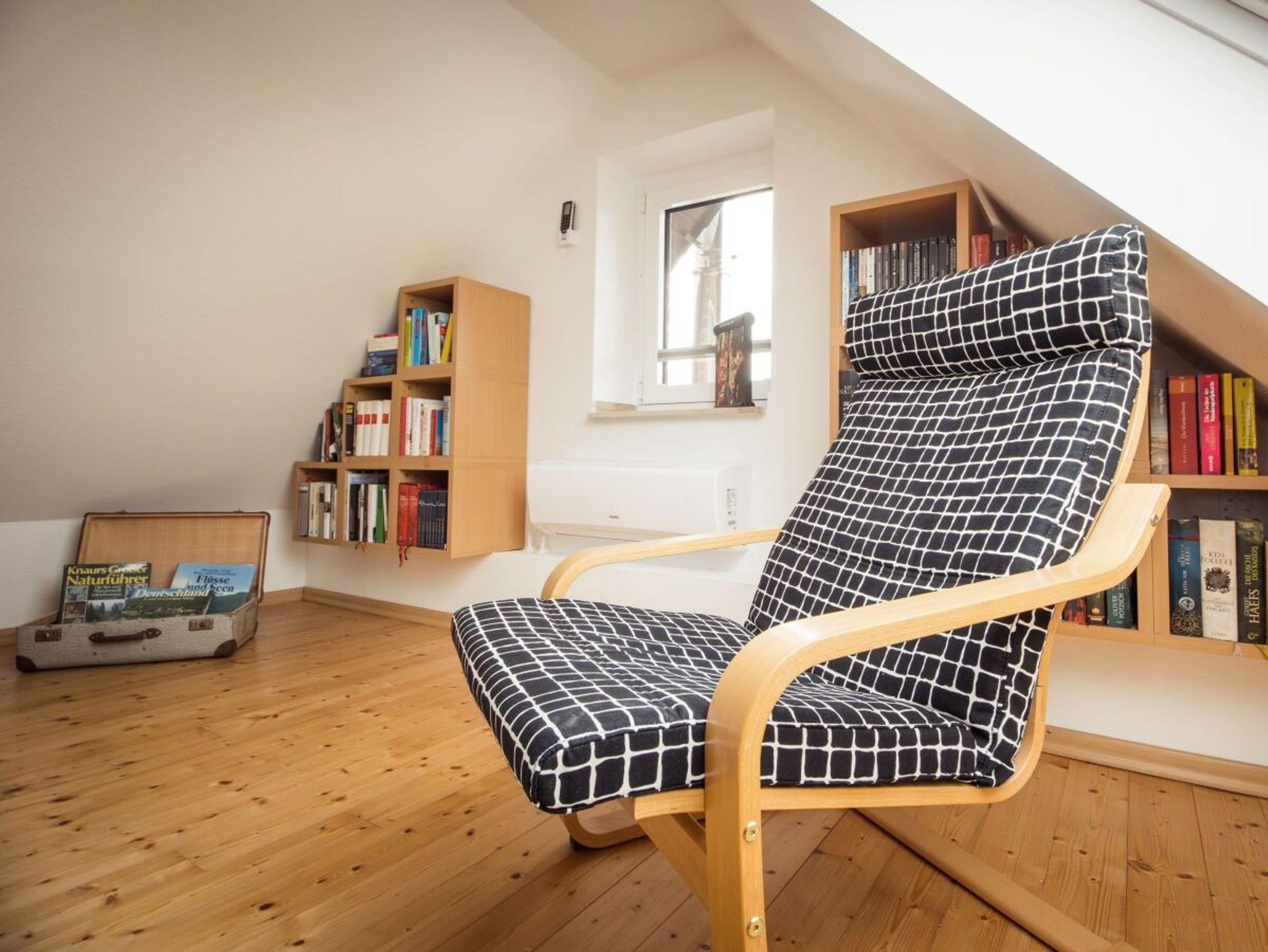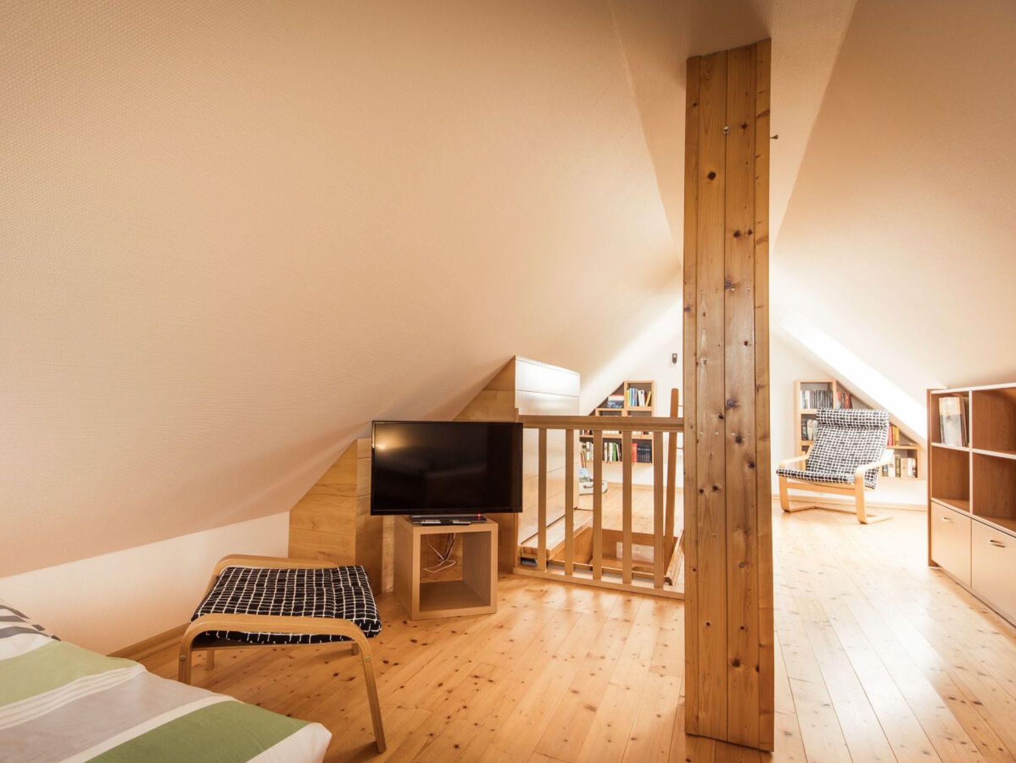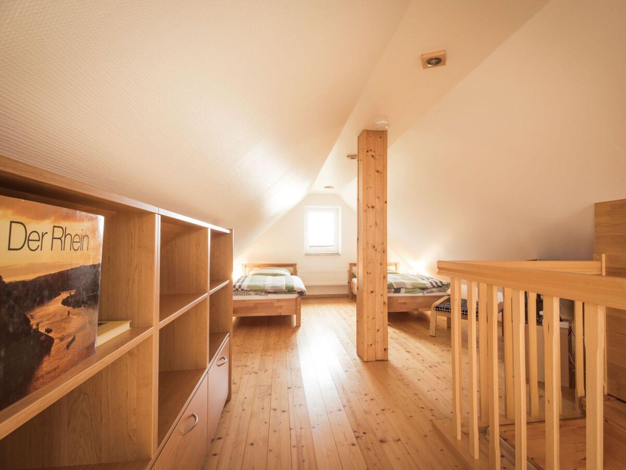 das Dachgeschoss, welches ebenfalls mit 2 Einzelbetten, TV, Sessel und Leseecke