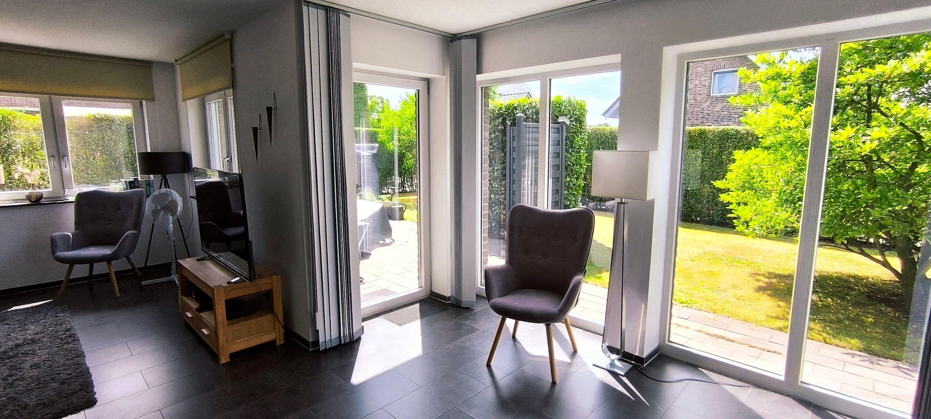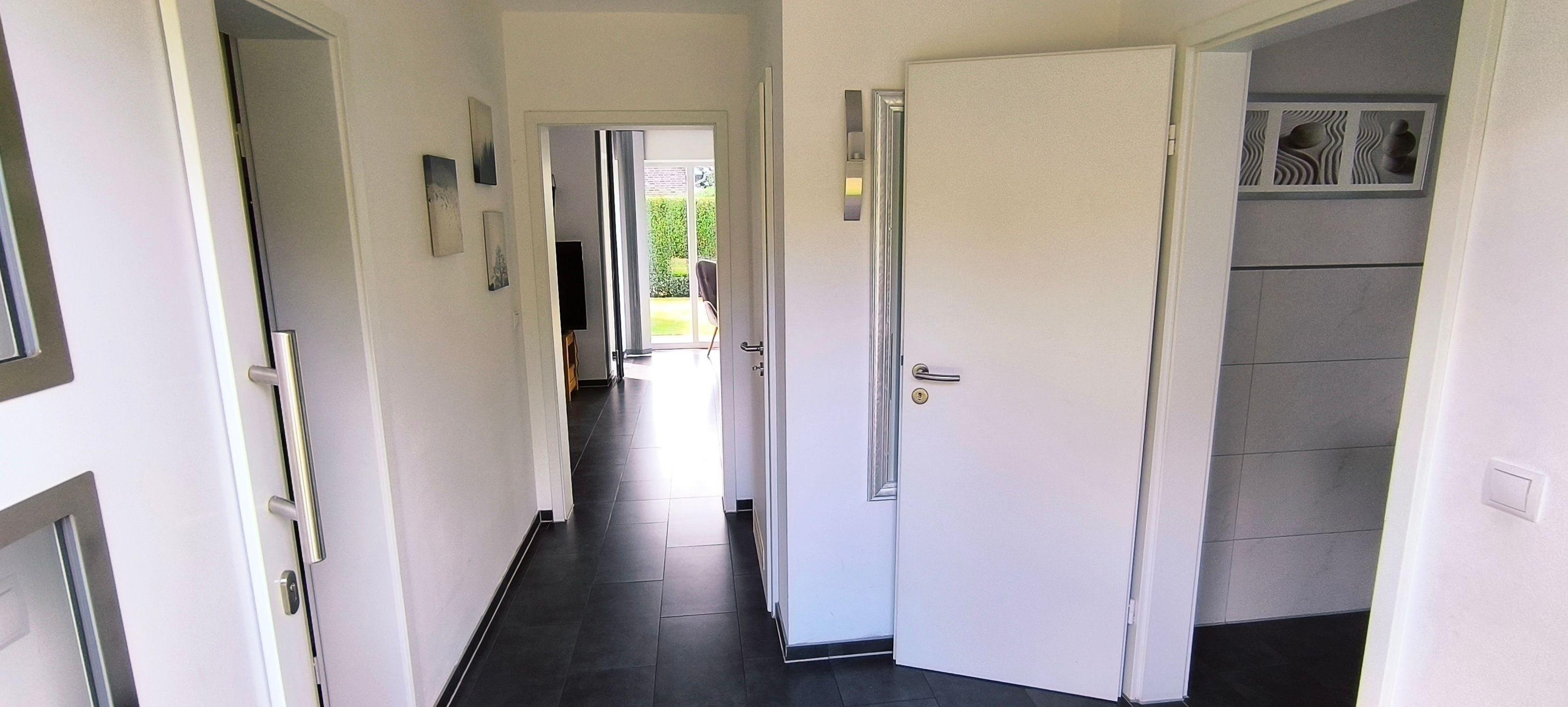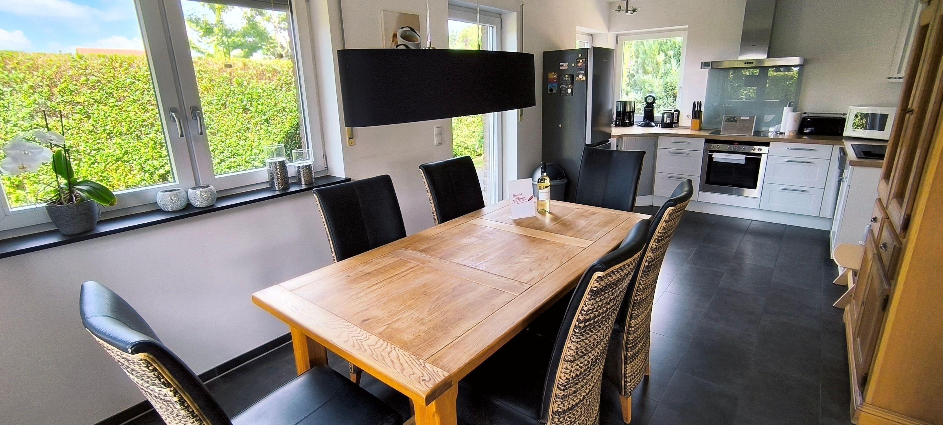 Das 130 qm große Haus ist hochwertig ausgestattet und verfügt im Erdgeschoss über einen Flur, Gäste-WC, einen Waschraum mit Waschmaschine, Trockner und einen großzügigen Bereich mit Wohnzimmer, Esszimmer und Küche. Die im gesamten Haus vorhandene Fußbodenheizung sorgt dafür, dass Sie auch im Winter keine kalten Füße bekommen. Ein 55 Zoll Flat-LCD, ein Esstisch für 6 Personen (erweiterbar auf 8 Personen) und eine komplett eingerichtete Küchenzeile lassen keine Annehmlichkeiten vermissen. Näheres zur Ausstattung entnehmen Sie bitte der Rubrik "Sonstige Informationen".