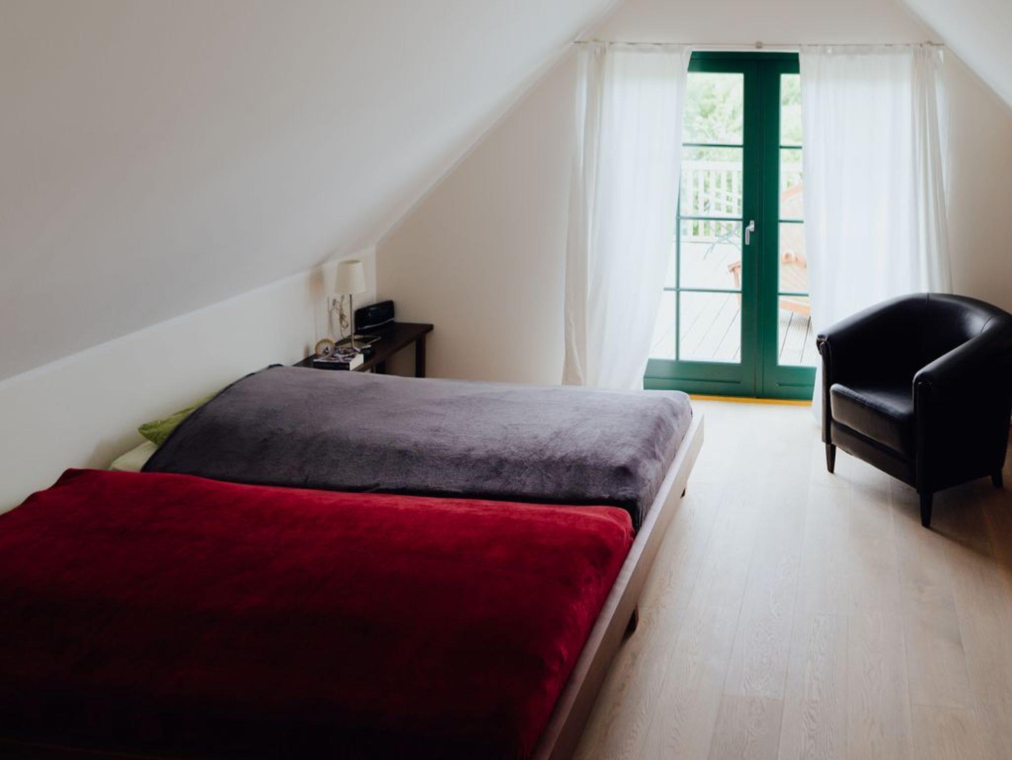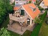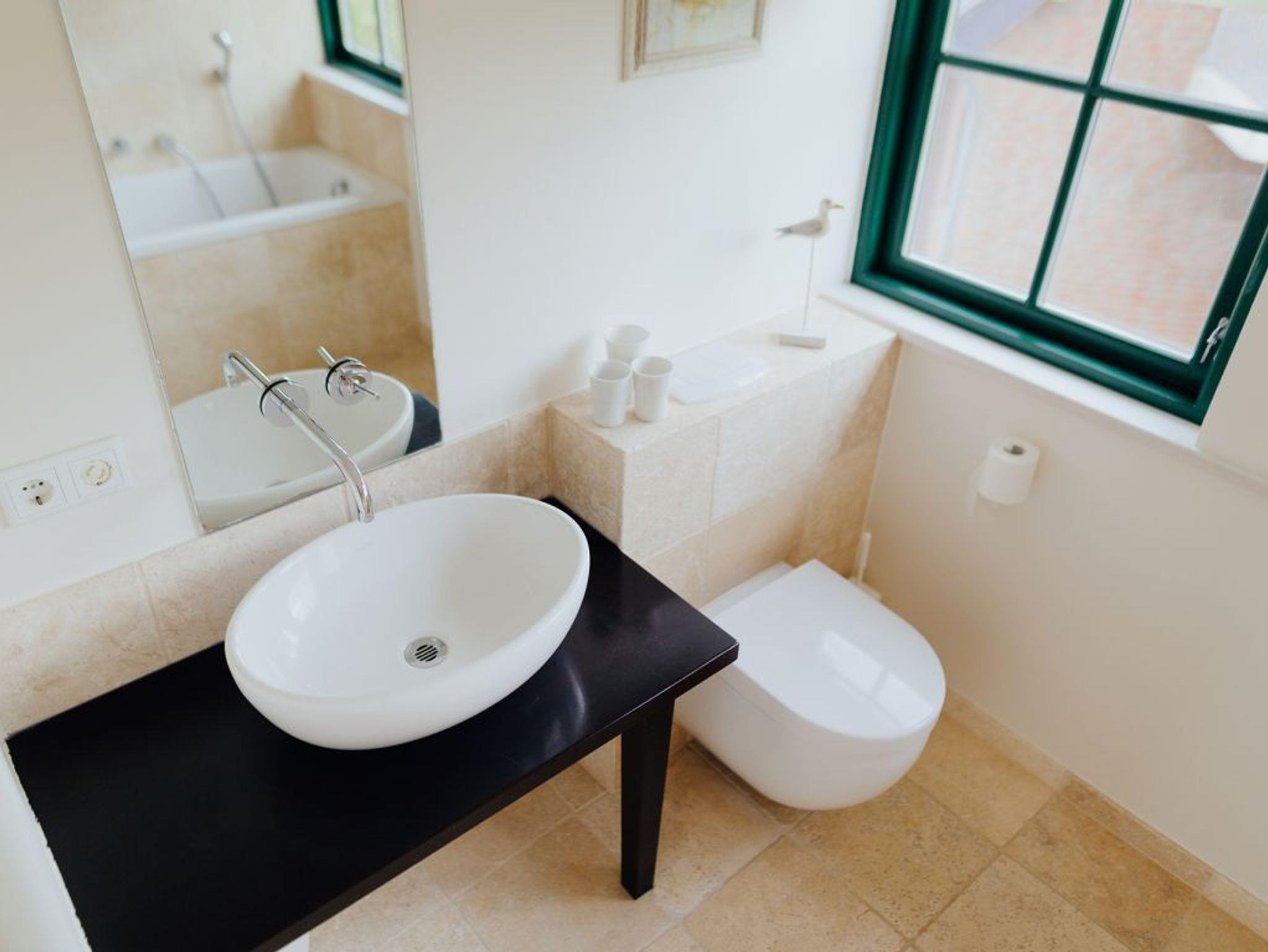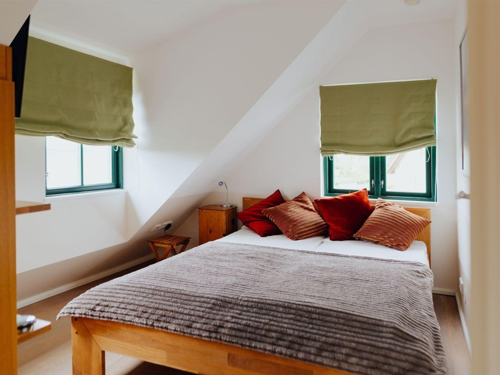 Eine Treppe führt in das Obergeschoss, wo sich drei Schlafzimmer 2x mit Doppelbett, 1x mit zwei Einzelbetten, 1x mit Fernseher befinden. Eines der Schlafzimmer ist mit Balkonzugang und Strandkorb und eine Treppe führt vom Balkon in den Garten. Ebenso ist im Obergeschoss ein hochwertiges Tageslicht Vollbad mit Badewanne und Dusche vorhanden. Im Garten können Sie mitgebrachte Fahrräder im Fahrradschuppen unterstellen.