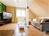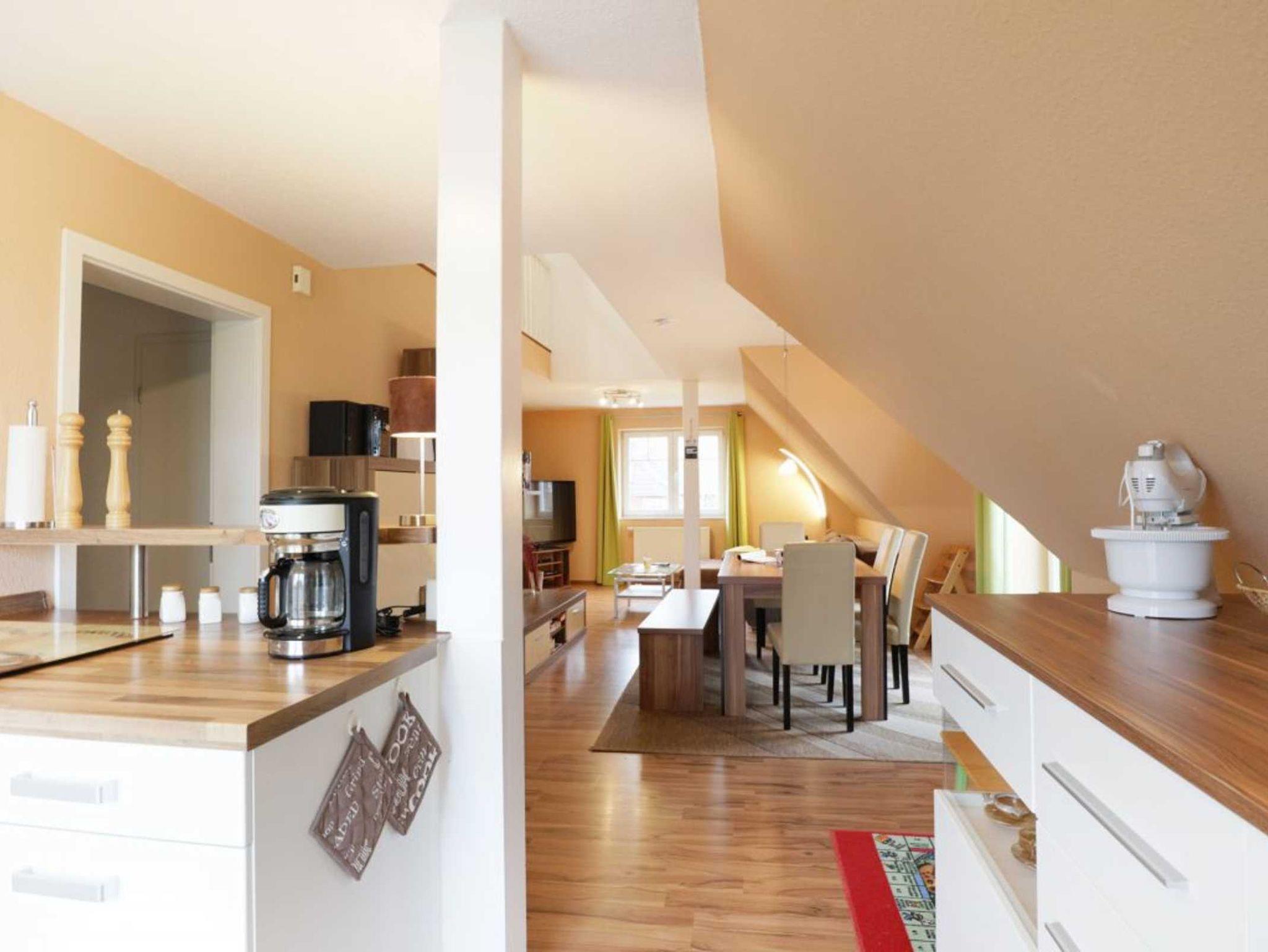 Das familienfreundliche und hochwertig eingerichtet 4-Zimmer-Appartement ? Schwannest 2- mit Balkon und Strandkorb, verfügt über eine Wohnfläche von 95qm und liegt im Obergeschoss des 2 Parteien Ferienhauses. Eine Belegung ist mit maximal 6 Personen möglich. Das Ferienappartement mit Meerblick, ist eine Maisonettenwohnung und erstreckt sich somit über zwei Ebenen. Hell und freundlich empfängt Sie der Wohn-/Essbereich mit einem großen Sofa, Schrankwand, LCD - Fernseher- DVD-Player, Musikanlage, großem Esstisch und WLAN inkl. Die in den Wohnbereich integrierte, moderne Einbauküche ist bestens ausgestattet mit Ceranfeldherd, Backofen, Kühlschrank mit Gefrierfach, Mikrowelle, Kaffeemaschine, Toaster usw. Zudem befindet sich auf dieser 1. Wohnebene ein großzügiges Schlafzimmer mit Doppelbett und Kleiderschrank. Auch das schöne Tageslicht Duschbad mit ebenerdiger Duschkabine, Waschtisch, WC ist auf der 1. Ebene. Ebenso ist ein separates Gäste - WC vorhanden. Die 2. Wohnebene bietet Ihnen zwei weitere Schlafzimmer 1x mit Doppelbett, Fernseher und 1x mit 2 Einzelbetten. Für kleine Kinder ist eine Treppensicherung vorhanden. Hochstuhl, Kinderbett, Bollerwagen und auch Spielzeug wurden bedacht. Im Eingangsbereich stehen eine Waschmaschine und ein Wäschetrockner zur kostenfreien Nutzung. Ein PKW- Stellplatz ist kostenfrei am Haus. Den Gästen des Hauses stehen der Garten sowie der gemütliche Wellnessbereich mit Sauna als inklusive Leistung zur Verfügung. Wir weisen darauf hin, dass es sich um eine Nichtraucherwohnung handelt, in der Haustiere nicht gestattet sind. Sie verbringen Ihren Ostseeurlaub Urlaub in wunderschöner, naturnaher Umgebung, die Sie am kilometerlangen Sandstrand die Seele baumeln lässt. Auf Wunsch erhalten Sie durch einen Lieferservice täglich frische Brötchen bis an die Hauseingangstür.