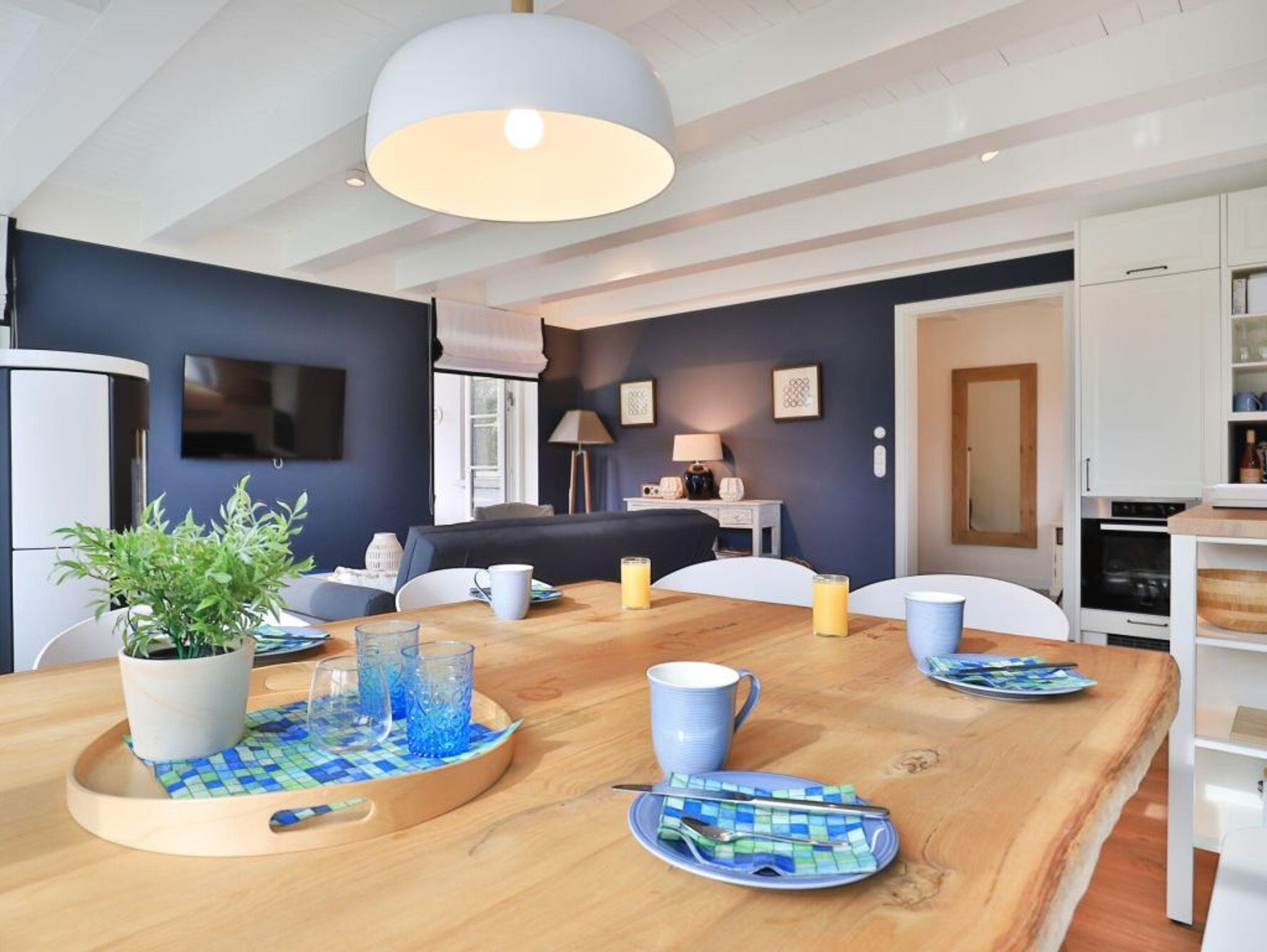 Das modern gestaltete Ferien Reetdachhaus ist mit 160qm Wohnfläche für insgesamt bis zu 8 Personen eingerichtet. Sechs Erwachsene Gäste und zwei Kinder können in diesem außergewöhnlich schicken Domizil ihre Ferien verbringen. Das Haus liegt nur 800m zum wunderschönen Strand von Groß Schwansee. Die verkehrsberuhigte Lage innerhalb eines Ferienwohngebietes und das eingezäunte Grundstück bieten beste Bedingungen für einen erholsamen Familienurlaub oder auch für den Urlaub mit Freunden. Ihr Hund ist ein sehr willkommener Gast -gegen Gebühr-. Direkt vom Grundstück des Ferienhauses gelangen Sie auf einen benachbarten Feldweg. Der Wohnbereich im Erdgeschoss, mit dem einladenden Wohn-/Essraum, ist durch eine insgesamt sehr großzügige Gestaltung auch für Rollstuhlfahrer nutzbar. Die Innentüren dieses schicken Hauses sind von der Breite her mit dem Rollstuhl durchfahrbar. Im Wohnbereich lädt sehr komfortables Mobiliar, wie auch ein wohliger Holzkaminofen zum gemütlichen Beisammensein ein. Fernseher und kostenfreies WLAN sind vorhanden. Die technisch hervorragend ausgestattete Wohnküchenzeile überzeugt mit Induktionsherd, Geschirrspüler u.v.m. Sowohl am großen Esstisch, oder im Sommer auch auf der ebenerdigen Terrasse, können Sie bequem Ihre Mahlzeiten einnehmen. Zudem ist hervorzuheben, dass Haus Barkley über vier separate Schlafzimmer verfügt. Zwei der Schlafzimmer bieten jeweils ein Doppelbett und TV. Ein drittes Schlafzimmer ist mit einem Etagenbett ausgestattet und das vierte der Zimmer mit einem ausziehbaren Einzelbett, so dass auch in diesem Schlafbereich bei Bedarf zwei Personen nächtigen können. Im Obergeschoss des Hauses ist ein weiteres Tageslicht Badezimmer vorhanden, welches Sie mit einer Badewanne und einer ebenerdigen Dusche verwöhnt. Für besondere Wohlfühlmomente empfiehlt sich die Nutzung der hauseigenen Sauna -gegen Gebühr. Die exklusive Gesamtausstattung dieses Reetdachhauses verspricht allen Mitreisenden einen sehr erholsamen Aufenthalt. Bei Anreise sind die Betten als inklusive Leistung bereits für Sie bezogen. Für Kinder steht ein Bollerwagen bereit. Waschmaschine sowie Wäschetrockner können gerne genutzt werden. Das Erdgeschoss dieses Feriendomizils ist mit dem Rollstuhl nutzbar. Es handelt sich um ein Nichtraucherhaus. Haustiere sind willkommen. Das Grundstück bietet drei PKW-Stellplätze und eine PKW E-Ladesäule. Bei Anreise ist eine Kaution in Höhe von 500 Euro in bar zu hinterlegen.