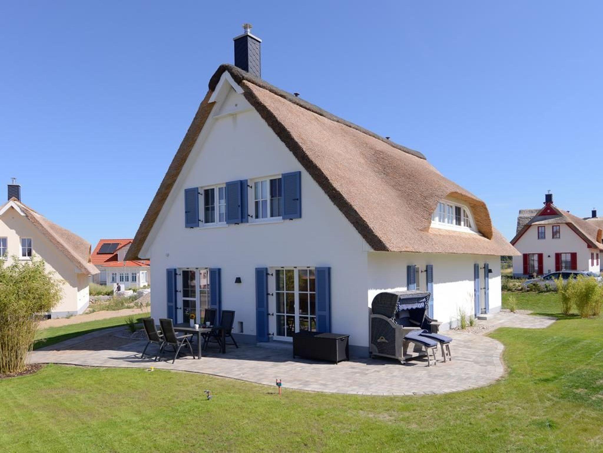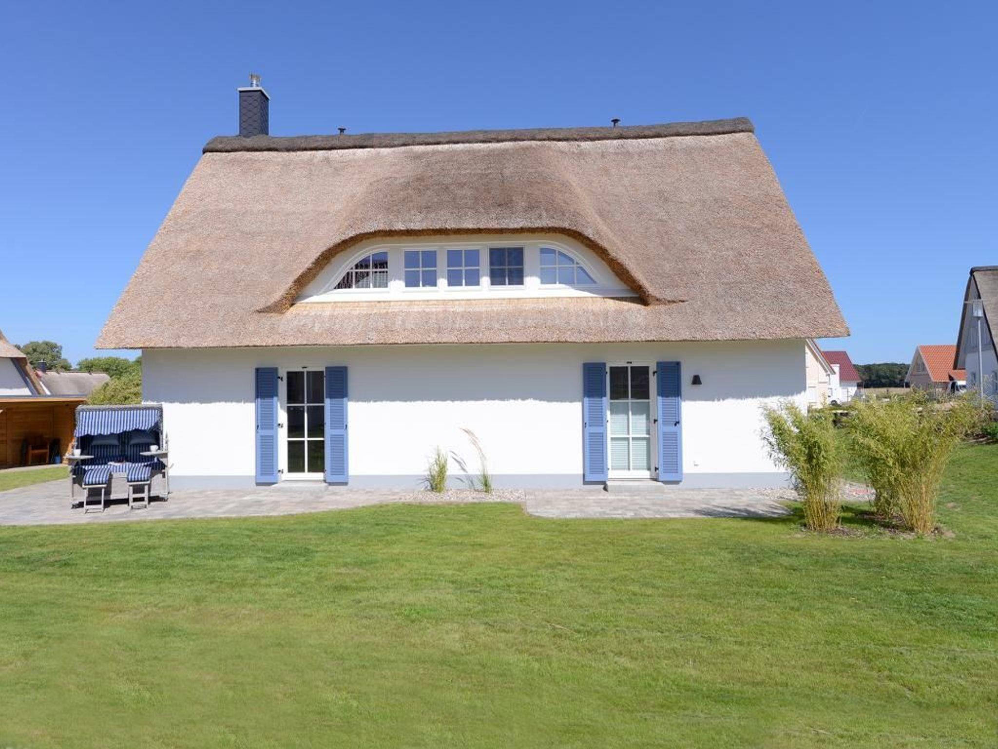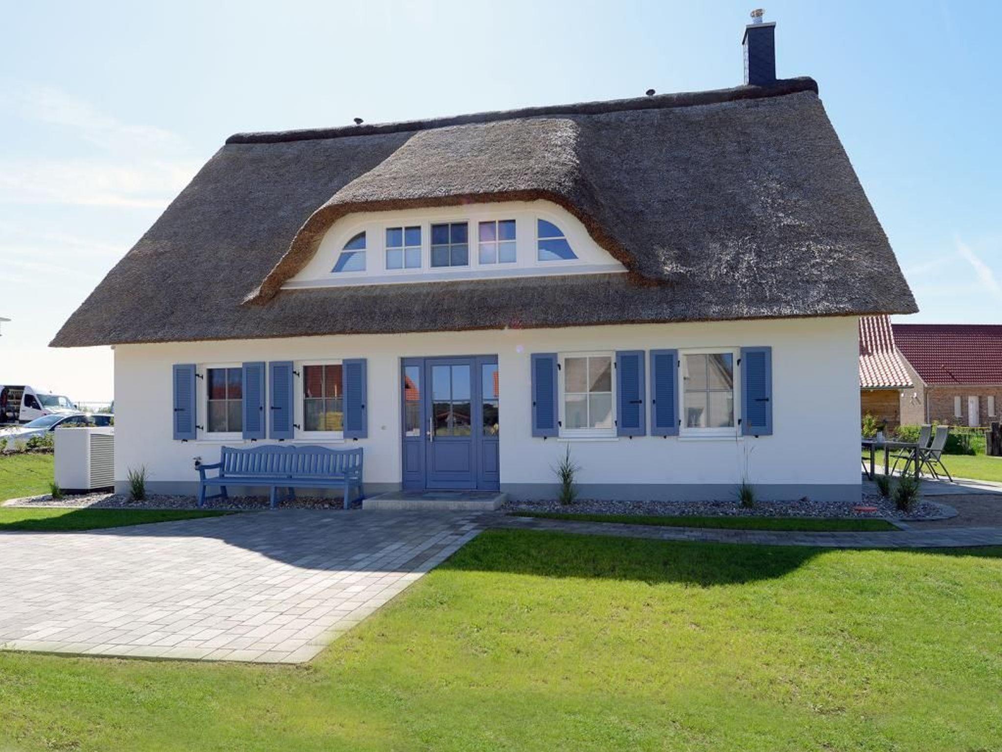 Die ?Strandbank? ist ein traumhaftes Reetdachhaus, in dem 6 Personen einen unvergesslichen Urlaub verbringen können. Das Haus erstreckt sich über 2 Ebenen und bietet mit seinen 156 m² Wohnfläche genügend Platz. Sie werden von einem stilvoll eingerichteten Wohn- / Esszimmer mit Kaminofen und TV-Gerät empfangen. Von dort aus haben Sie Zugang zu den 2 Terrassen. Die separate exklusive Küche ist komplett mit Mikrowelle, Geschirrspüler, Induktionskochfeld, Backofen, Kühlschrank mit Gefrierfach, Wasser- / und Eierkocher, Kaffeemaschine, Waffeleisen, Toaster und diversen Kleingeräten ausgestattet. Das Haus verfügt über ein Duschbad, ein Vollbad mit Badewanne und Dusche, ein Gäste WC und eine Sauna für 6 Personen in einer hochwertigen Ausführung. Im Obergeschoss befinden sich 3 Schlafzimmer mit jeweils einem Doppelbett. Das gesamte Haus ist gefliest und mit einer Fußbodenheizung ausgestattet. Auch kostenfreies WLAN steht Ihnen während Ihres Aufenthaltes zur Verfügung. Für die kleinen Gäste stehen ein Kinderhochstuhl, ein Kinderbett sowie ein Bollerwagen bereit. Ein PKW-Stellplatz befindet sich direkt am Haus.