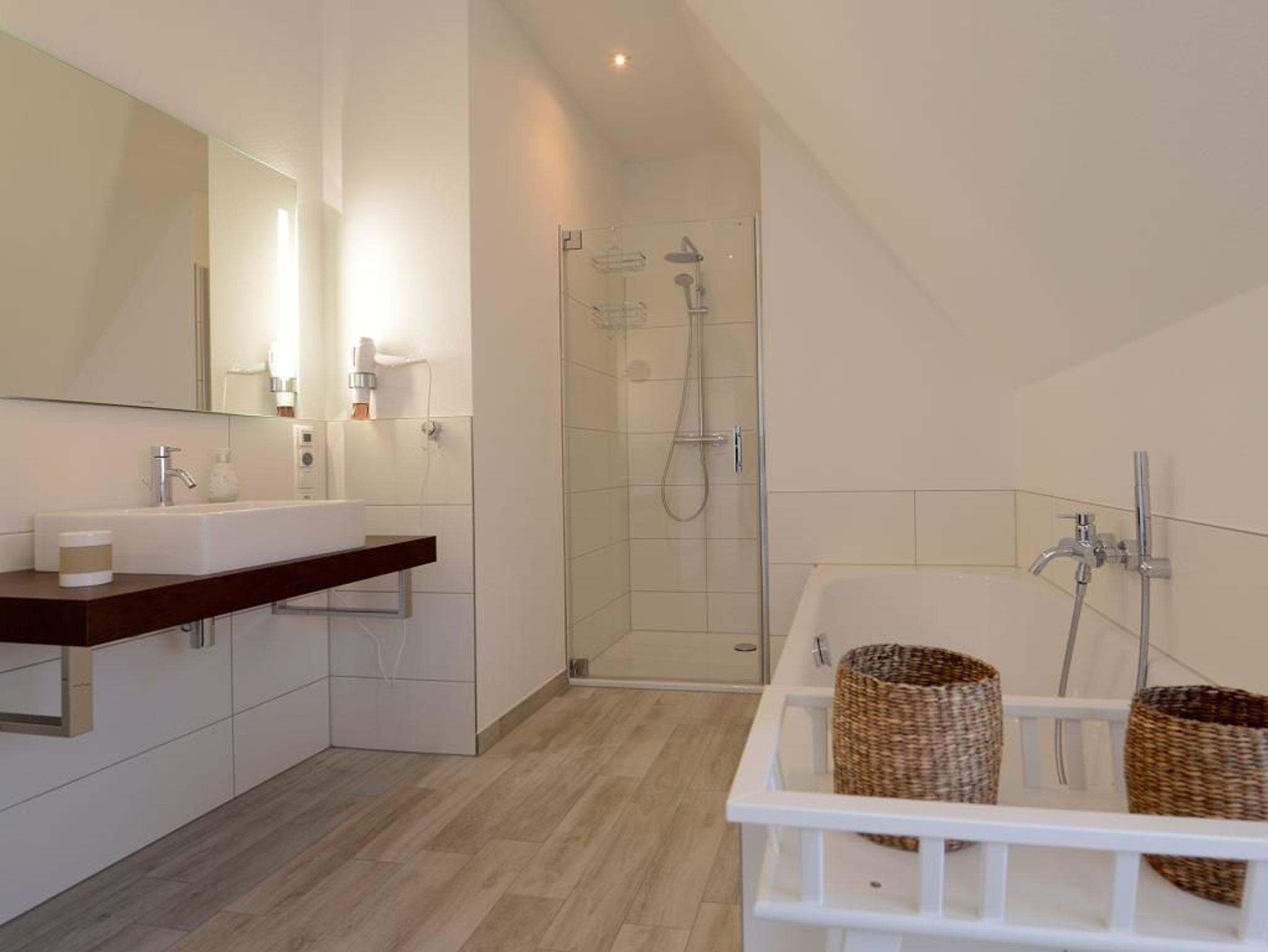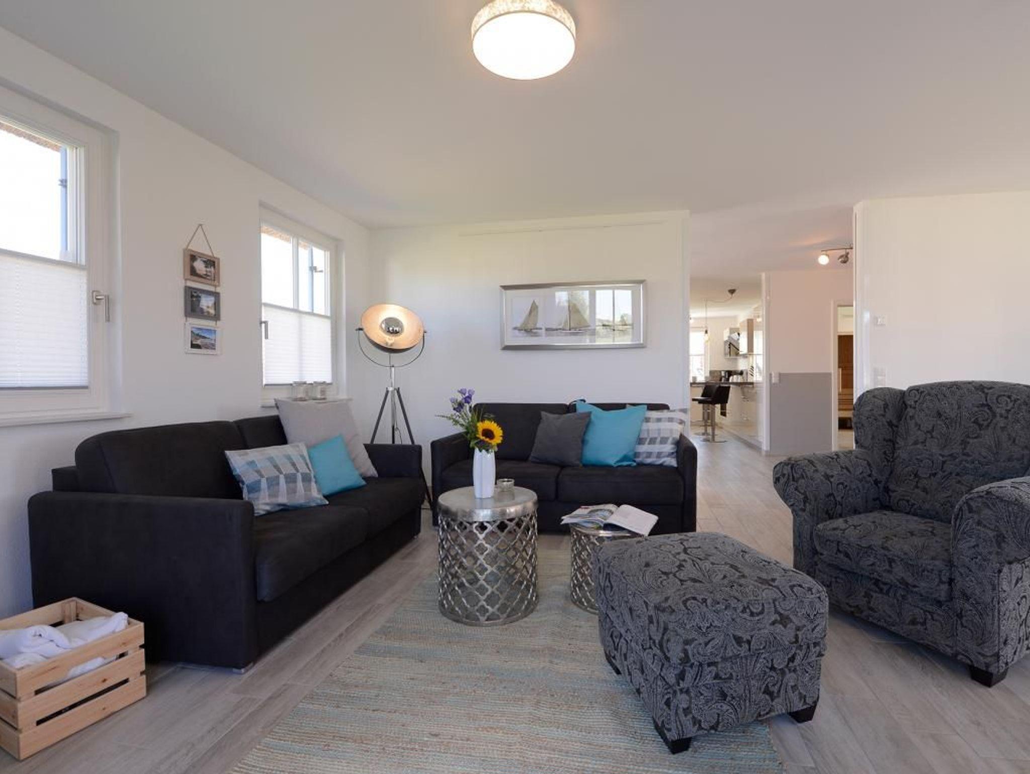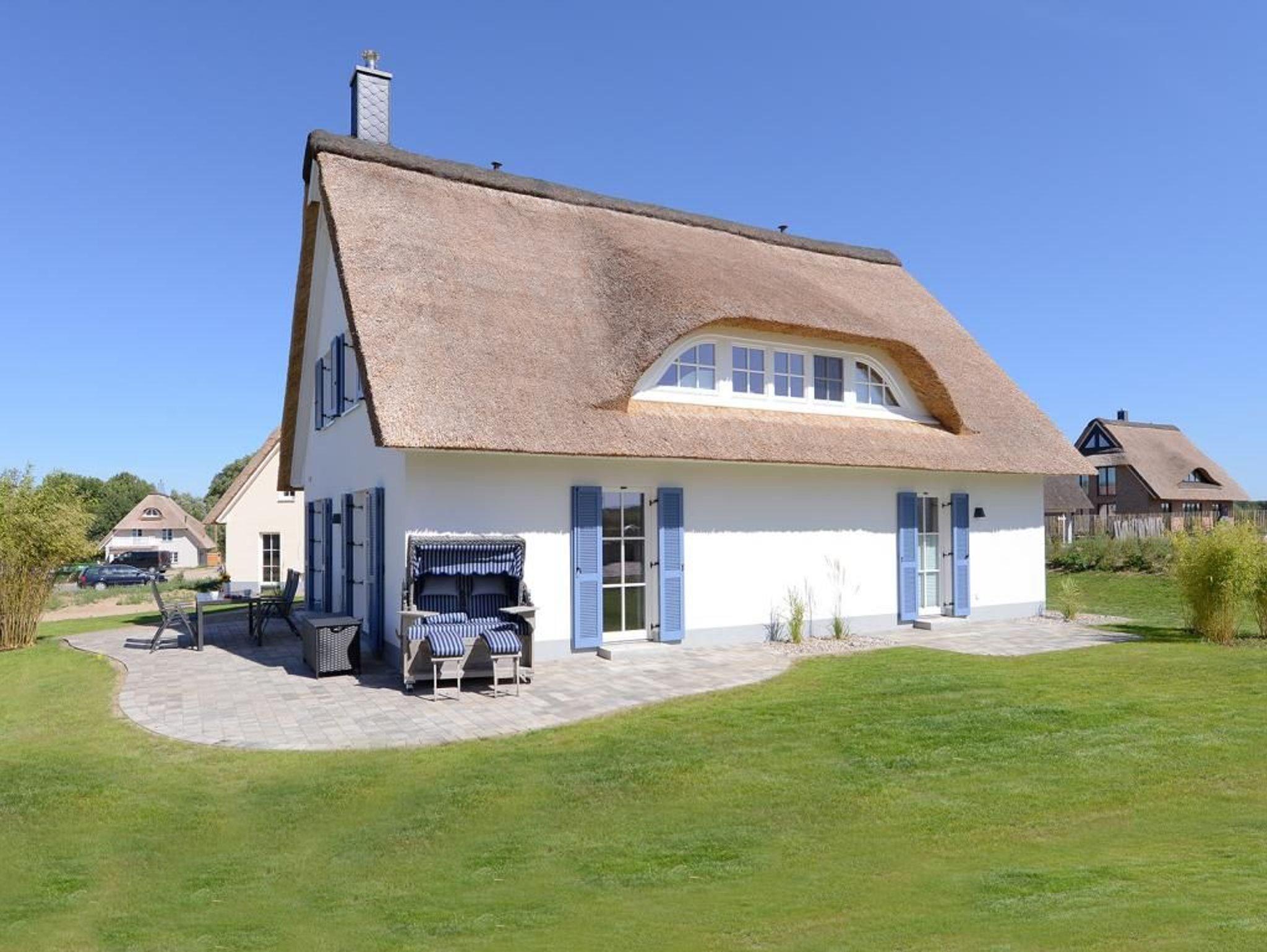 Die ?Strandbank? ist ein traumhaftes Reetdachhaus, in dem 6 Personen einen unvergesslichen Urlaub verbringen können. Das Haus erstreckt sich über 2 Ebenen und bietet mit seinen 156 m² Wohnfläche genügend Platz. Sie werden von einem stilvoll eingerichteten Wohn- / Esszimmer mit Kaminofen und TV-Gerät empfangen. Von dort aus haben Sie Zugang zu den 2 Terrassen. Die separate exklusive Küche ist komplett mit Mikrowelle, Geschirrspüler, Induktionskochfeld, Backofen, Kühlschrank mit Gefrierfach, Wasser- / und Eierkocher, Kaffeemaschine, Waffeleisen, Toaster und diversen Kleingeräten ausgestattet. Das Haus verfügt über ein Duschbad, ein Vollbad mit Badewanne und Dusche, ein Gäste WC und eine Sauna für 6 Personen in einer hochwertigen Ausführung. Im Obergeschoss befinden sich 3 Schlafzimmer mit jeweils einem Doppelbett. Das gesamte Haus ist gefliest und mit einer Fußbodenheizung ausgestattet. Auch kostenfreies WLAN steht Ihnen während Ihres Aufenthaltes zur Verfügung. Für die kleinen Gäste stehen ein Kinderhochstuhl, ein Kinderbett sowie ein Bollerwagen bereit. Ein PKW-Stellplatz befindet sich direkt am Haus.