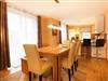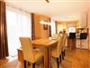 Vom Wohn-/ Esszimmer haben Sie direkten Zugang zur möblierten Terrasse. Ein Doppelbett und ein großer Kleiderschrank für Ihre Garderobe stehen im Schlafzimmer bereit. Das Badezimmer ist mit einer ebenerdigen Dusche, einem Waschtisch und einem WC ausgestattet.