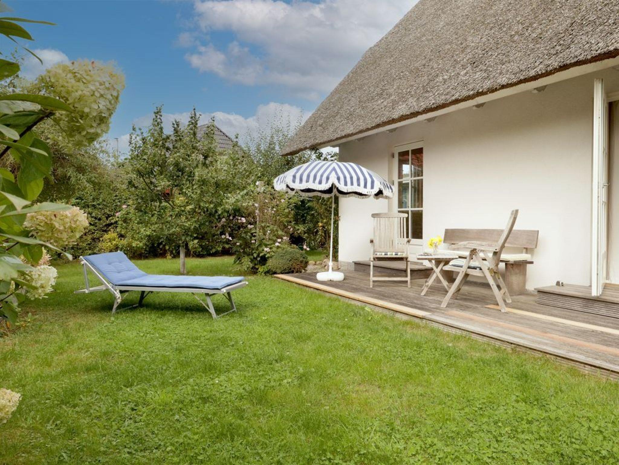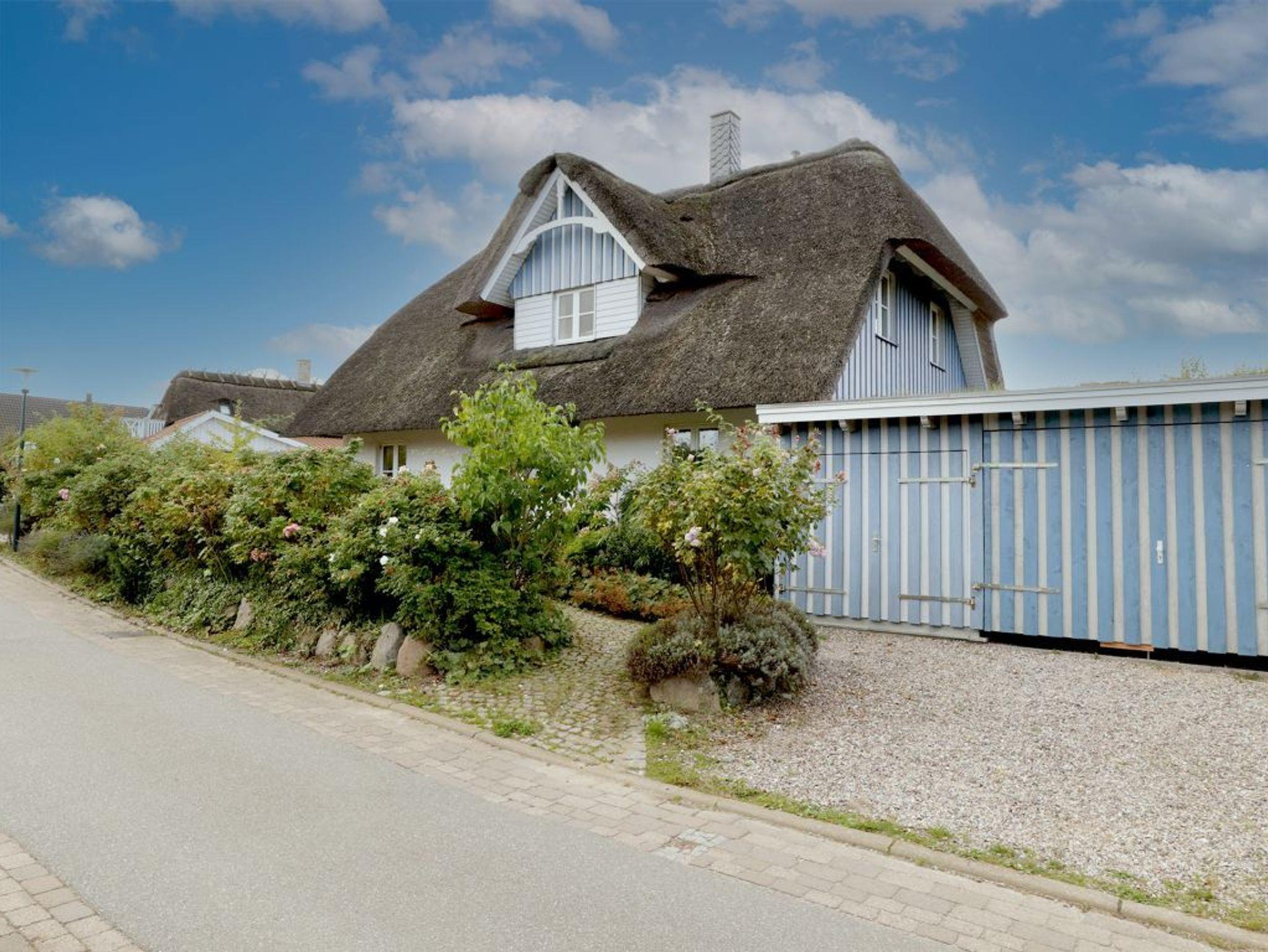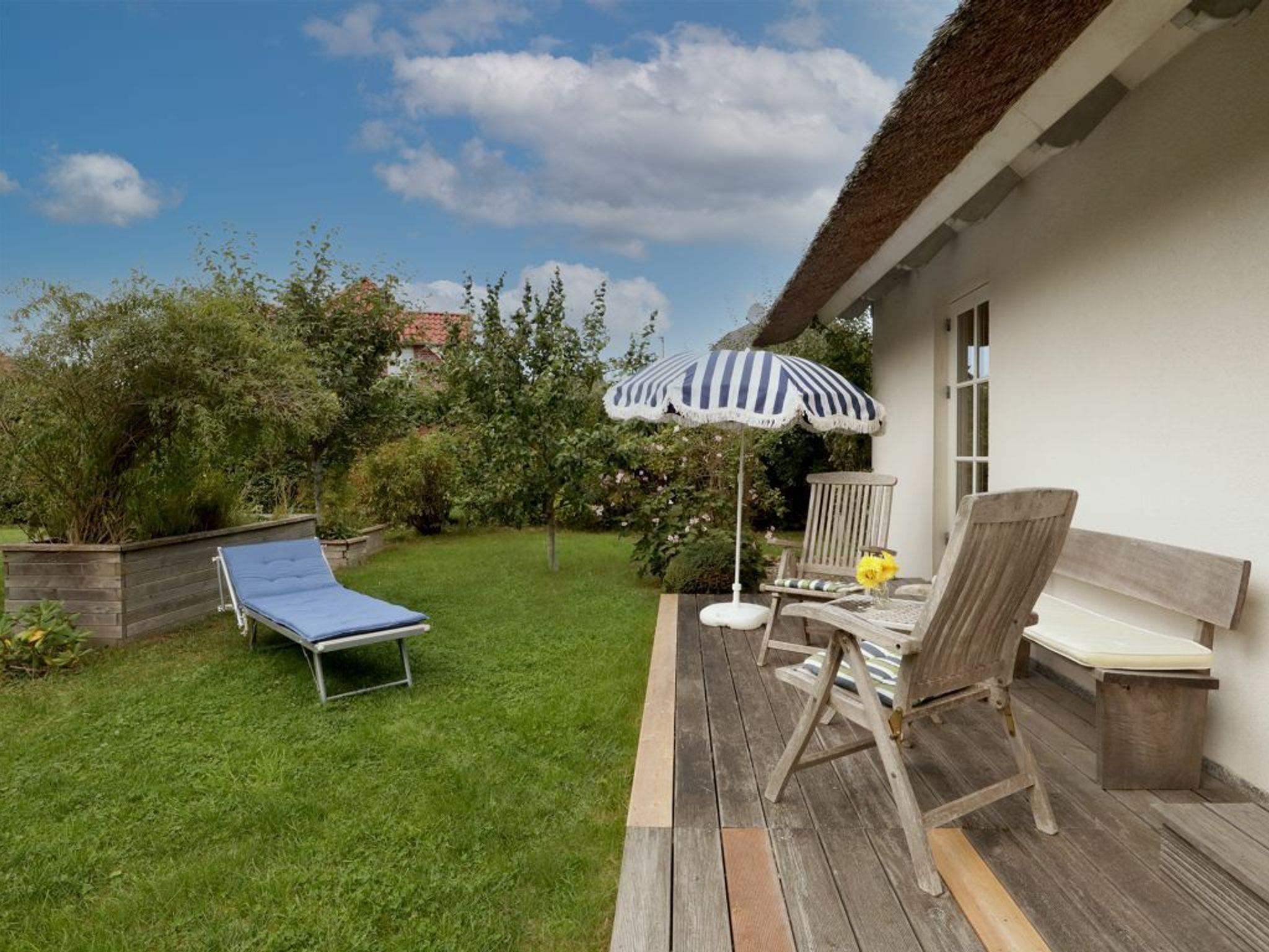Mit einer Wohnfläche von 127qm ist dieses großzügige Ferienhaus unter Reet für eine Belegung mit bis zu 5 Personen nahezu perfekt. In nur 800 Meter gelangen Sie zum wunderschönen Strand mit guten Bademöglichkeiten. Das sehr hochwertig eingerichtete Einzelhaus erstreckt sich über zwei Etagen. Im Erdgeschoss, welches sich mit einem großflächigen Eingangsbereich präsentiert erwarten Sie sehr einladend möblierte Zimmer. Der behagliche Wohn-/Essbereich mit bequemer Couch und dem großen Esstisch, bietet Ihnen einen Kaminofen für wohlige Wärme. Kaminholz ist vorhanden. Selbstverständlich befinden sich auch ein TV-Gerät, DVD und Musikanlage im Wohnzimmer. Die familienfreundliche Ausstattung beinhaltet einen Kinderhochstuhl. Hochwertig ist die Küche, die geschickt in den Wohnraum integriert wurde. Zwei Terrassen, wovon eine überdacht ist, sind von der Küche und vom Wohnzimmer aus zu betreten. Somit können Sie im Sommer Ihre Mahlzeiten im Freien genießen und sich wunderbar entspannen. Der hübsch angelegte Garten lädt zum Sonnenbaden und Spielen ein. Außerdem befinden sich im Erdgeschoss des Hauses ein Arbeitszimmer wie auch ein gehoben gefliestes Duschbad. Im Hauswirtschaftsraum ist die Nutzung von Waschmaschine und Wäschetrockner gegeben. Über eine Holztreppe gelangen Sie in das Obergeschoss, wo sich im Flurbereich ein zweiter Fernseher und eine Sitzgelegenheit befinden. Des Weiteren sind auf dieser Etage zwei Schlafzimmer mit Doppelbett, davon eines der Schlafzimmer mit Balkon, sowie ein drittes Schlafzimmer mit einem Einzelbett. Das geräumige Badezimmer besitz ein Fenster und bietet Ihnen eine Badewanne wie auch eine ebenerdige Dusche, Bidet und WC. Das gesamte Ferienobjekt wird über eine Fußbodenheizung angenehm gewärmt. Insbesondere hervorzuheben ist, dass in diesem Haus ausschließlich naturbelassene Baumaterialien verwendet wurden. Gebührenfrei nutzen Sie den PKW-Außenstellplatz am Haus.