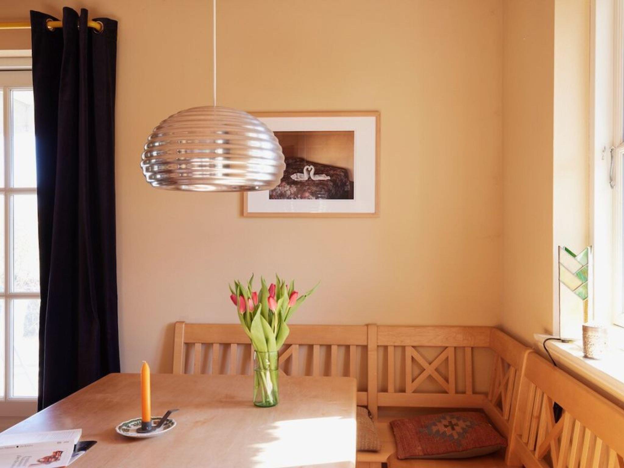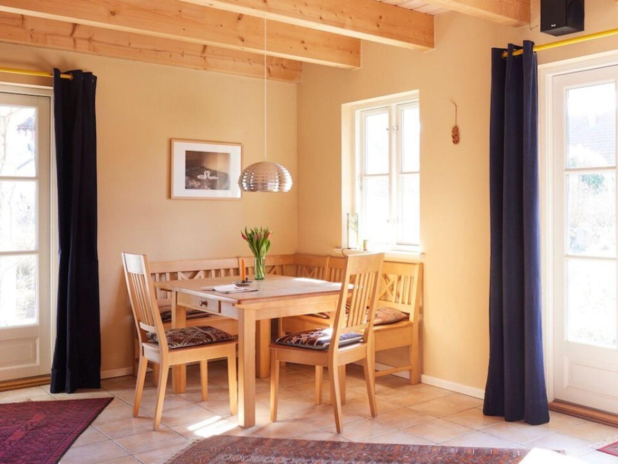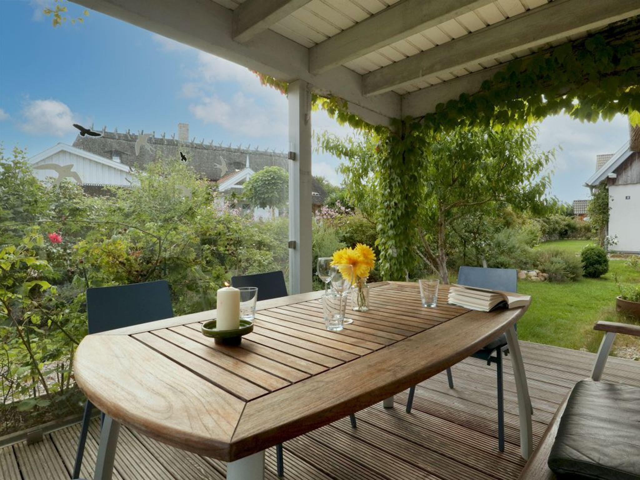 Mit einer Wohnfläche von 127qm ist dieses großzügige Ferienhaus unter Reet für eine Belegung mit bis zu 5 Personen nahezu perfekt. In nur 800 Meter gelangen Sie zum wunderschönen Strand mit guten Bademöglichkeiten. Das sehr hochwertig eingerichtete Einzelhaus erstreckt sich über zwei Etagen. Im Erdgeschoss, welches sich mit einem großflächigen Eingangsbereich präsentiert erwarten Sie sehr einladend möblierte Zimmer. Der behagliche Wohn-/Essbereich mit bequemer Couch und dem großen Esstisch, bietet Ihnen einen Kaminofen für wohlige Wärme. Kaminholz ist vorhanden. Selbstverständlich befinden sich auch ein TV-Gerät, DVD und Musikanlage im Wohnzimmer. Die familienfreundliche Ausstattung beinhaltet einen Kinderhochstuhl. Hochwertig ist die Küche, die geschickt in den Wohnraum integriert wurde. Zwei Terrassen, wovon eine überdacht ist, sind von der Küche und vom Wohnzimmer aus zu betreten. Somit können Sie im Sommer Ihre Mahlzeiten im Freien genießen und sich wunderbar entspannen. Der hübsch angelegte Garten lädt zum Sonnenbaden und Spielen ein. Außerdem befinden sich im Erdgeschoss des Hauses ein Arbeitszimmer wie auch ein gehoben gefliestes Duschbad. Im Hauswirtschaftsraum ist die Nutzung von Waschmaschine und Wäschetrockner gegeben. Über eine Holztreppe gelangen Sie in das Obergeschoss, wo sich im Flurbereich ein zweiter Fernseher und eine Sitzgelegenheit befinden. Des Weiteren sind auf dieser Etage zwei Schlafzimmer mit Doppelbett, davon eines der Schlafzimmer mit Balkon, sowie ein drittes Schlafzimmer mit einem Einzelbett. Das geräumige Badezimmer besitz ein Fenster und bietet Ihnen eine Badewanne wie auch eine ebenerdige Dusche, Bidet und WC. Das gesamte Ferienobjekt wird über eine Fußbodenheizung angenehm gewärmt. Insbesondere hervorzuheben ist, dass in diesem Haus ausschließlich naturbelassene Baumaterialien verwendet wurden. Gebührenfrei nutzen Sie den PKW-Außenstellplatz am Haus.