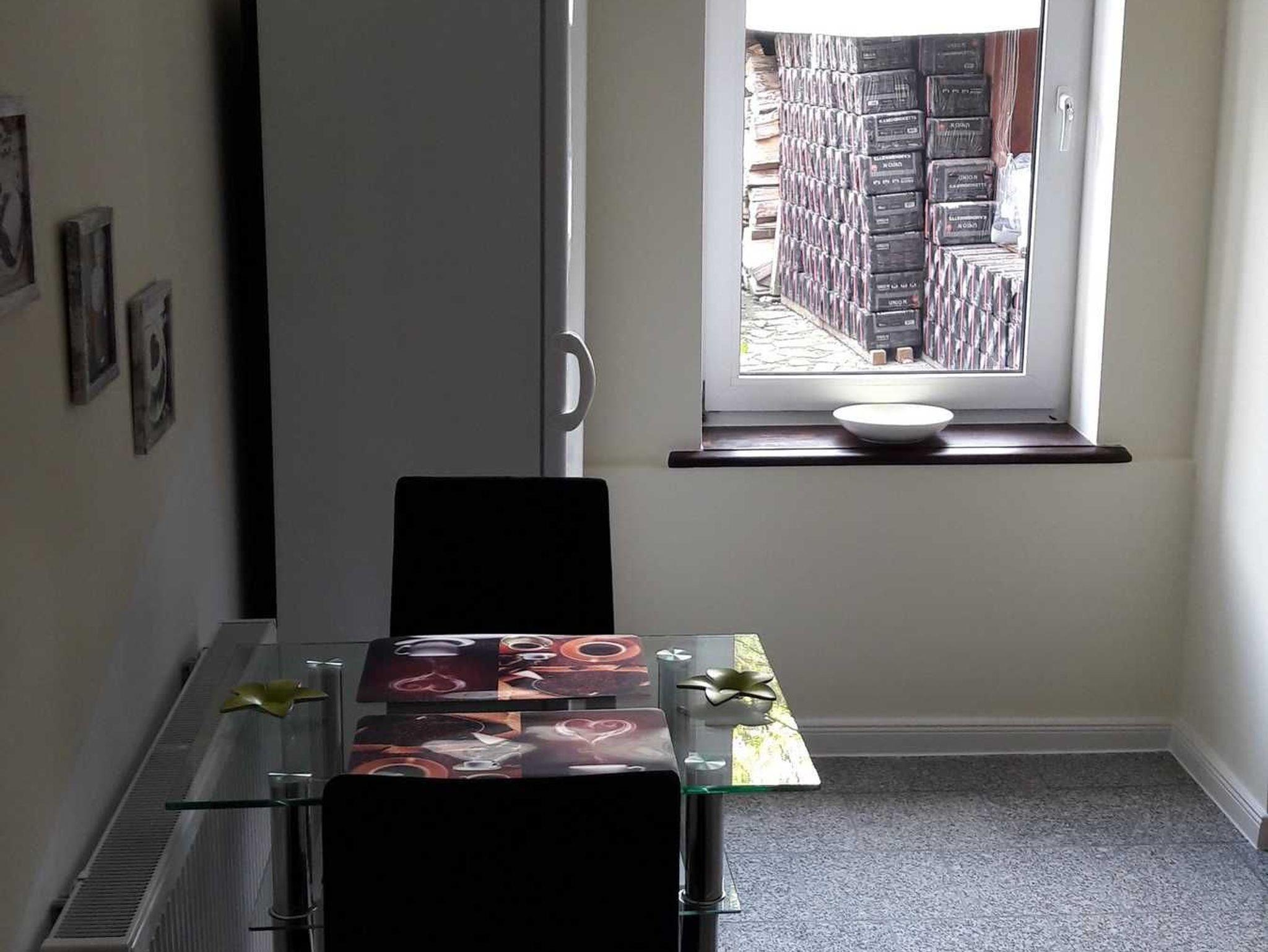 Die Wohnung verfügt über ein Schlafzimmer, Wohnzimmer mit Schlafcouch und Pelletofen, Küche, Flur, Esszimmer, Bad, Terrasse/Garten, Autostellplatz. Es können max. 3 Personen übernachten. Im Ort (ca. 200m) ist ein Tante Emma Laden mit frischen Brötchen und Lebensmitteln.