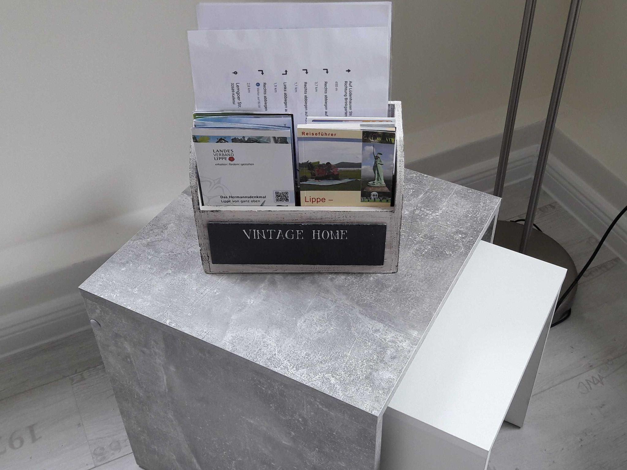 In 6 km Entfernung befindet sich Hohenhausen mit Ärzten, Apotheken, div.Geldinstituten, Friseuren, Lebensmittelgeschäften, Tankstellen, Pizzeria, Freibad. In Lemgo 12km befindet sich ein Krankenhaus. Ausflugsziele sind in Detmold das Freilicht Museum, Hermannsdenkmal, Externsteine, Adlerwarte Berlebeck, Vogelpark Heiligenkirchen. Es handelt sich um eine Nichtraucherwohnung und ohne Tierhaltung!