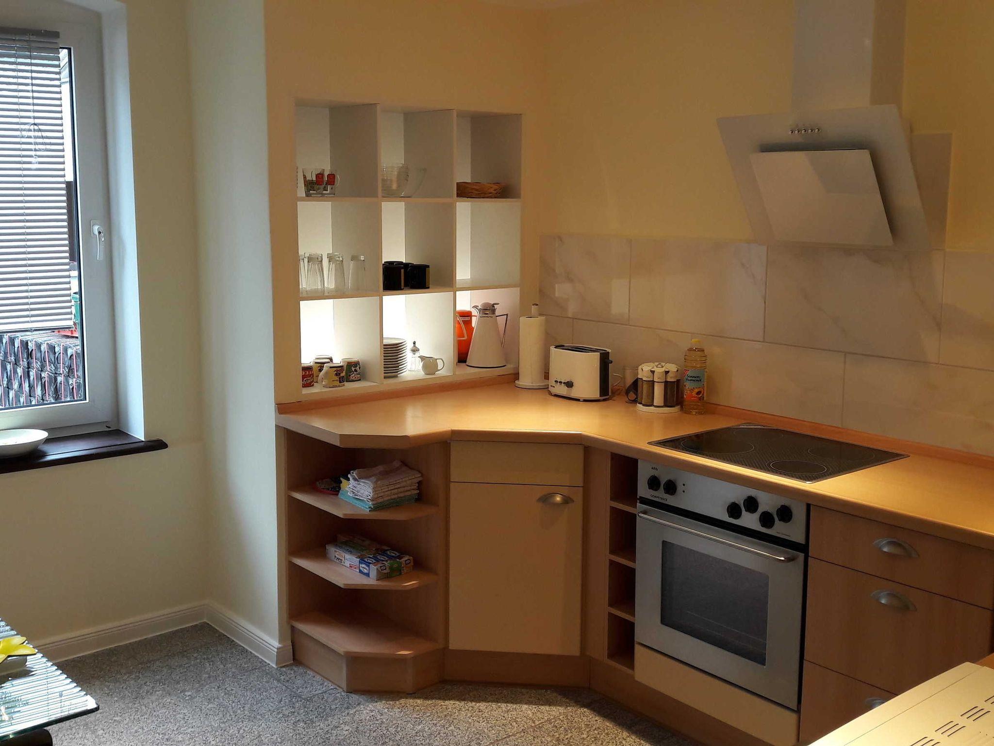 Unsere Küche ist voll ausgestattet mit Kaffeemaschine, Toaster, Tassimo Kaffeeautomat inkl. Pads (begrenzte Anzahl), Wasserkocher, Kühlschrank, Mikrowelle, Backofen, Herd, Gewürzen, 1.Hilfe Set,