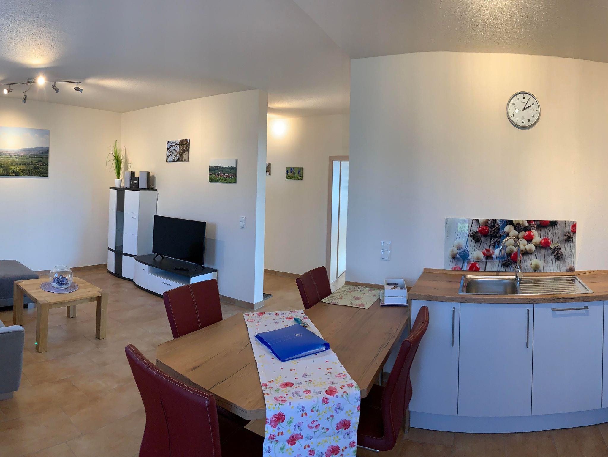Unsere modern eingerichtete Ferienwohnung bietet Platz für bis zu 3 Erwachsene oder Familien mit 2 Kindern. Sie ist im Erdgeschoß gelegen und weitgehend barrierearm.