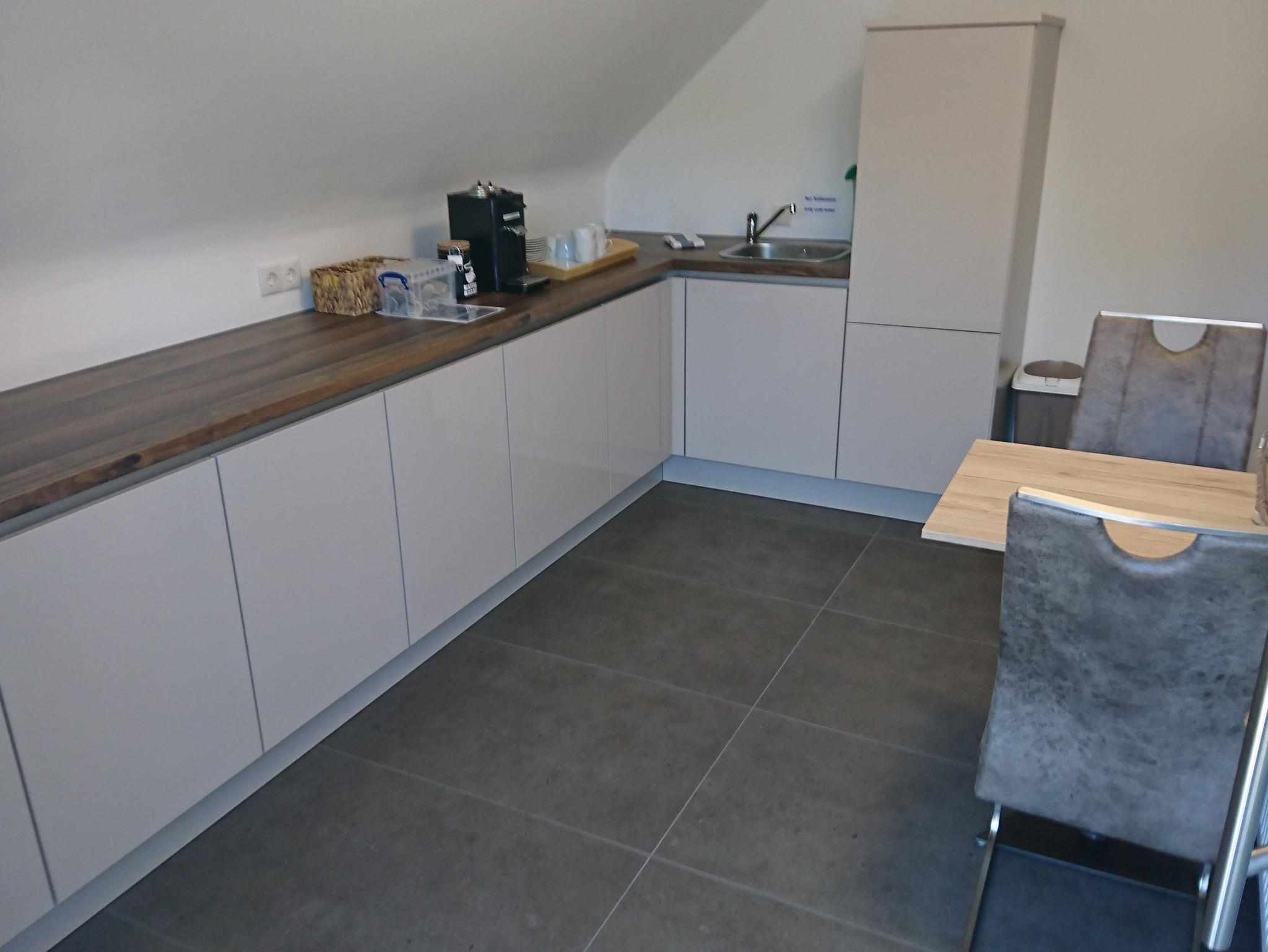 Unser Doppelzimmer Karussell ist hell und modern eigerichtet und mit Fernseher und einem kleinen Kühlschrank ausgestattet. Bad mit Dusche und Tageslicht, Handtücher und Fön sind vorhanden. Im Eingangsbereich vor dem Doppelzimmer befindet sich ein Tisch mit 2 Stühlen, eine Kochgelegenheit mit einer Induktionskochplatte, Kaffee-Padmaschine, Spühlbecken, Wasserkocher und Toaster. Wer möchte kann sich hier Frühstück oder Abendbrot zubereiten. Allerdings wird dieser Bereich von den Gästen der Ferienwohnung Wippermann passiert.