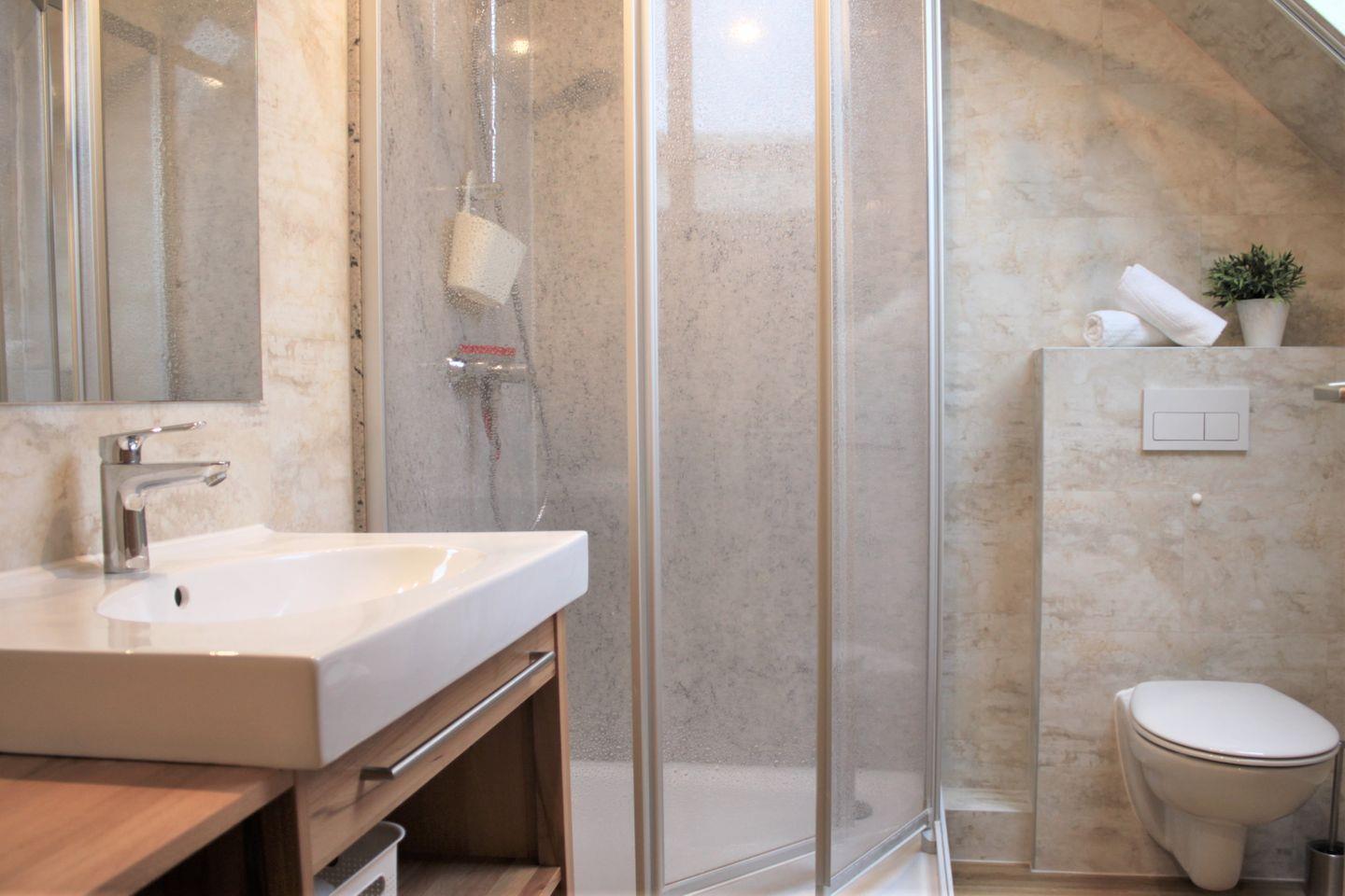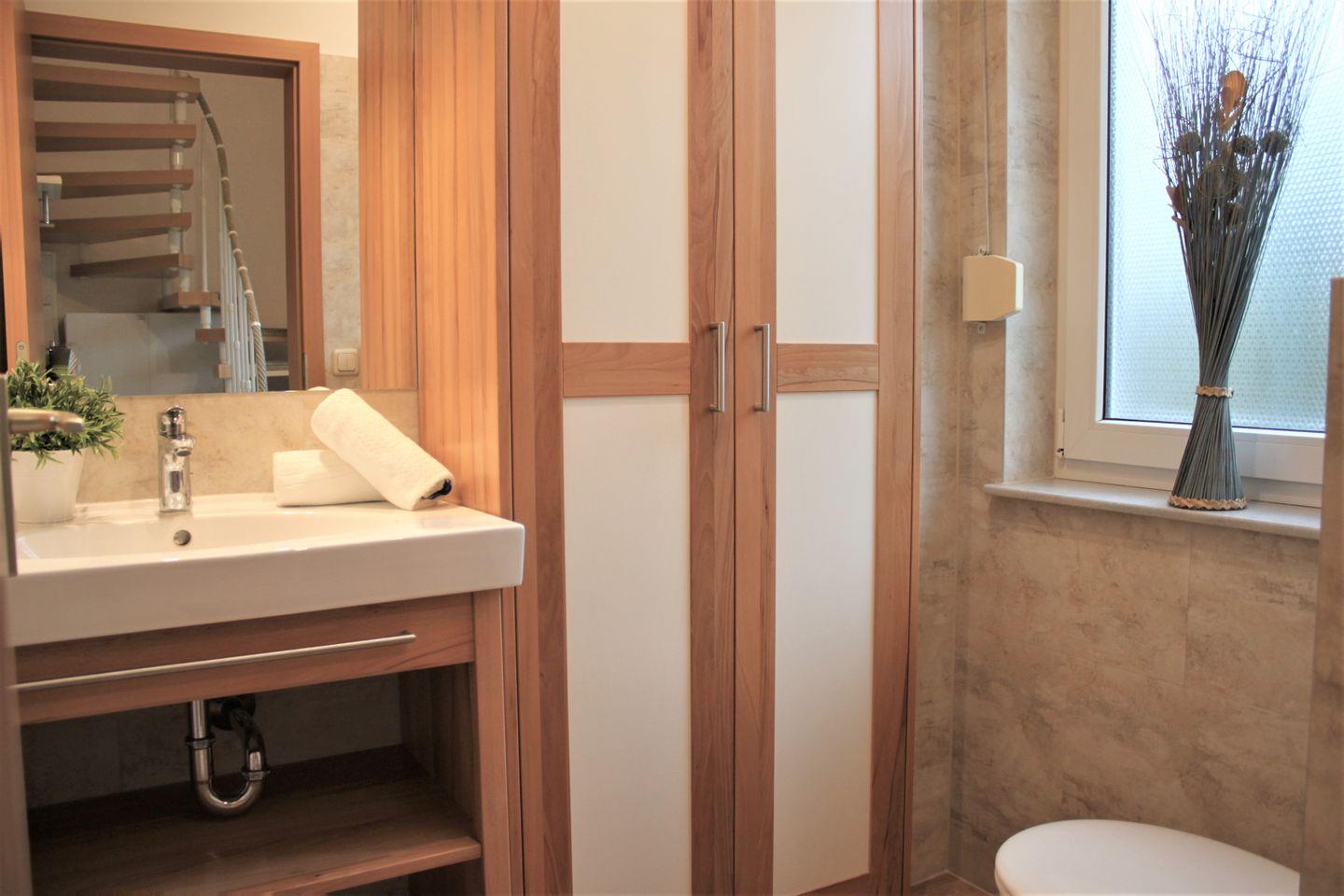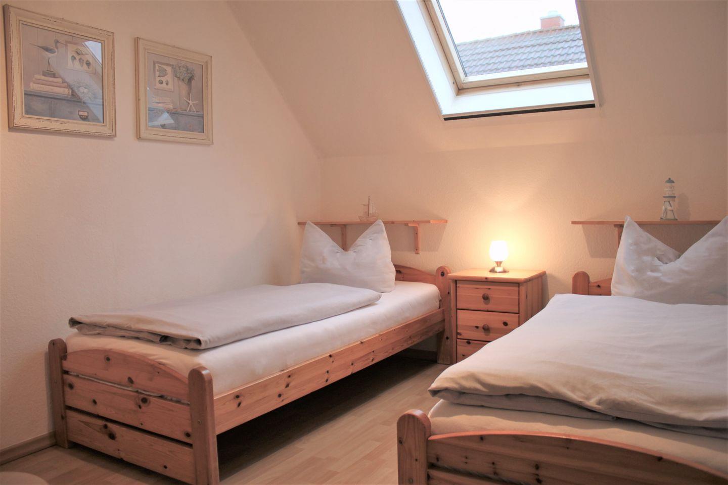 Zum Ferienhaus gehören außerdem zwei separate Schlafzimmer, die entweder mit einem Doppelbett oder zwei Einzelbetten ausgestattet sind. Des Weiteren steht Ihnen ein Bad mit Dusche und WC sowie ein zusätzliches Gäste-WC zur Verfügung.