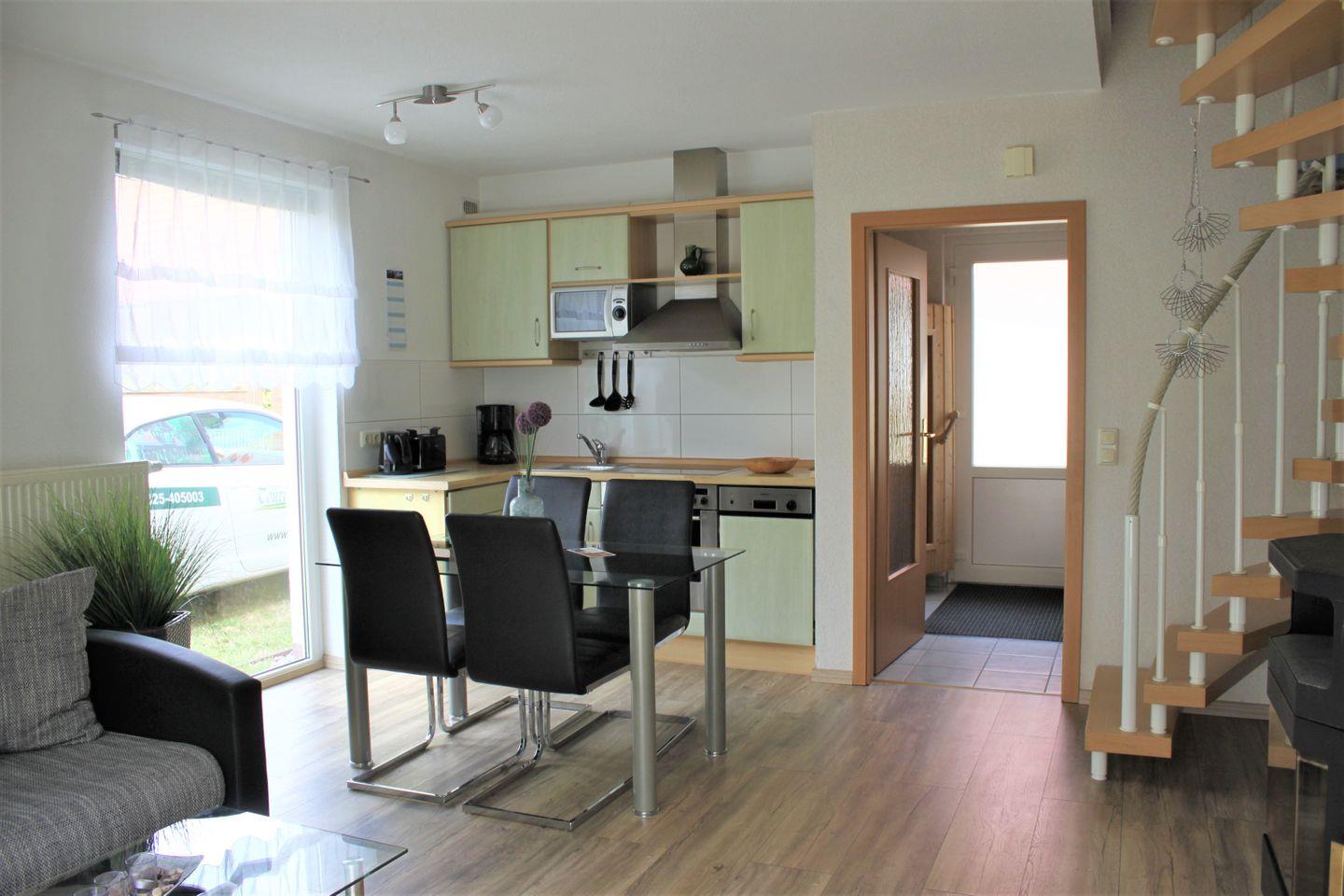 Die Küche ist voll ausgestattet mit Herd mit Backofen, Kühlschrank mit Gefrierfach, Geschirrspüler, Kaffeemaschine, Wasserkocher und vielem mehr und ist in den Wohnraum integriert.