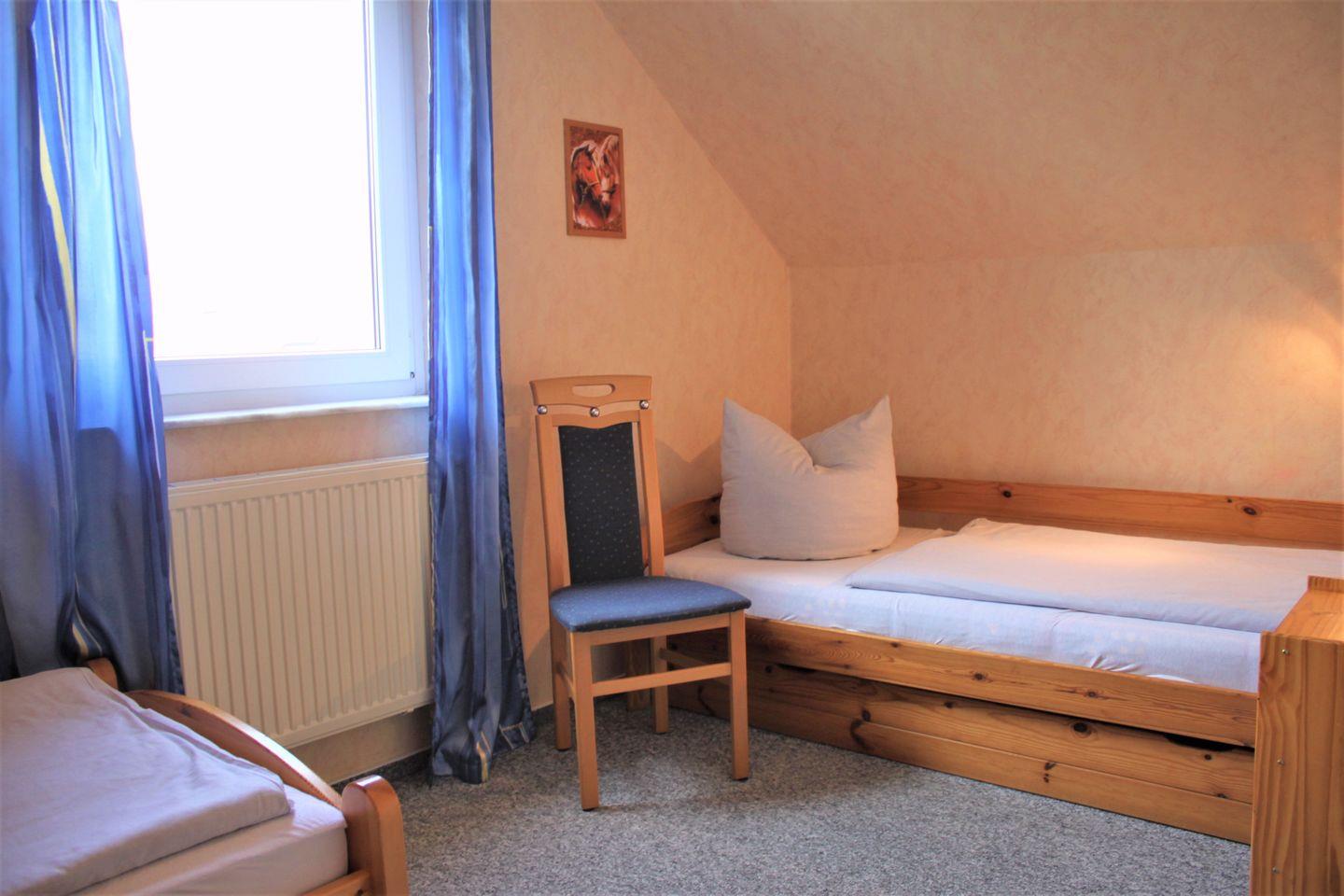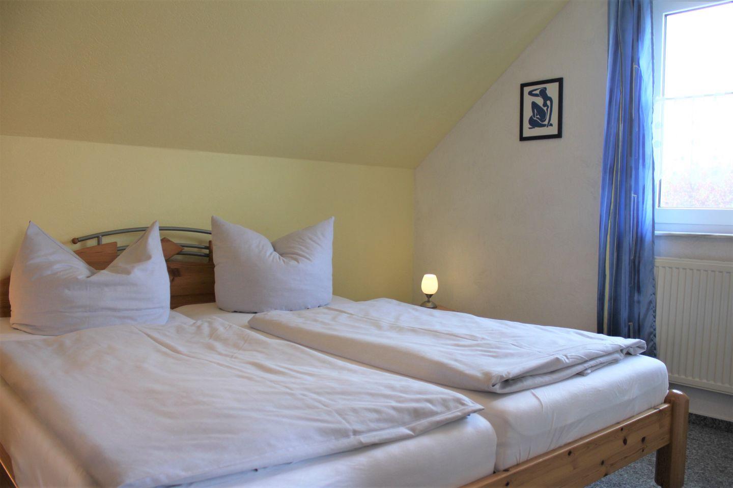 Im zweiten Schlafraum befinden sich zwei Einzelbetten und ein Kleiderschrank. Eine weitere Person findet auf dem ausziehbaren Sofa im Wohnzimmer einen bequemen Schlafplatz.