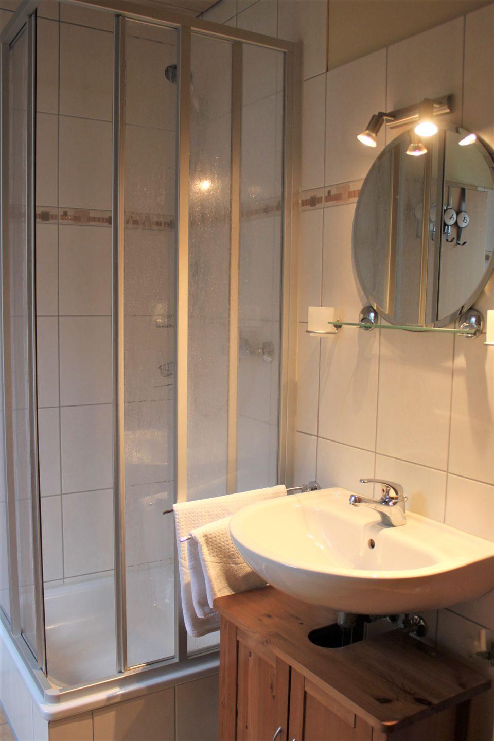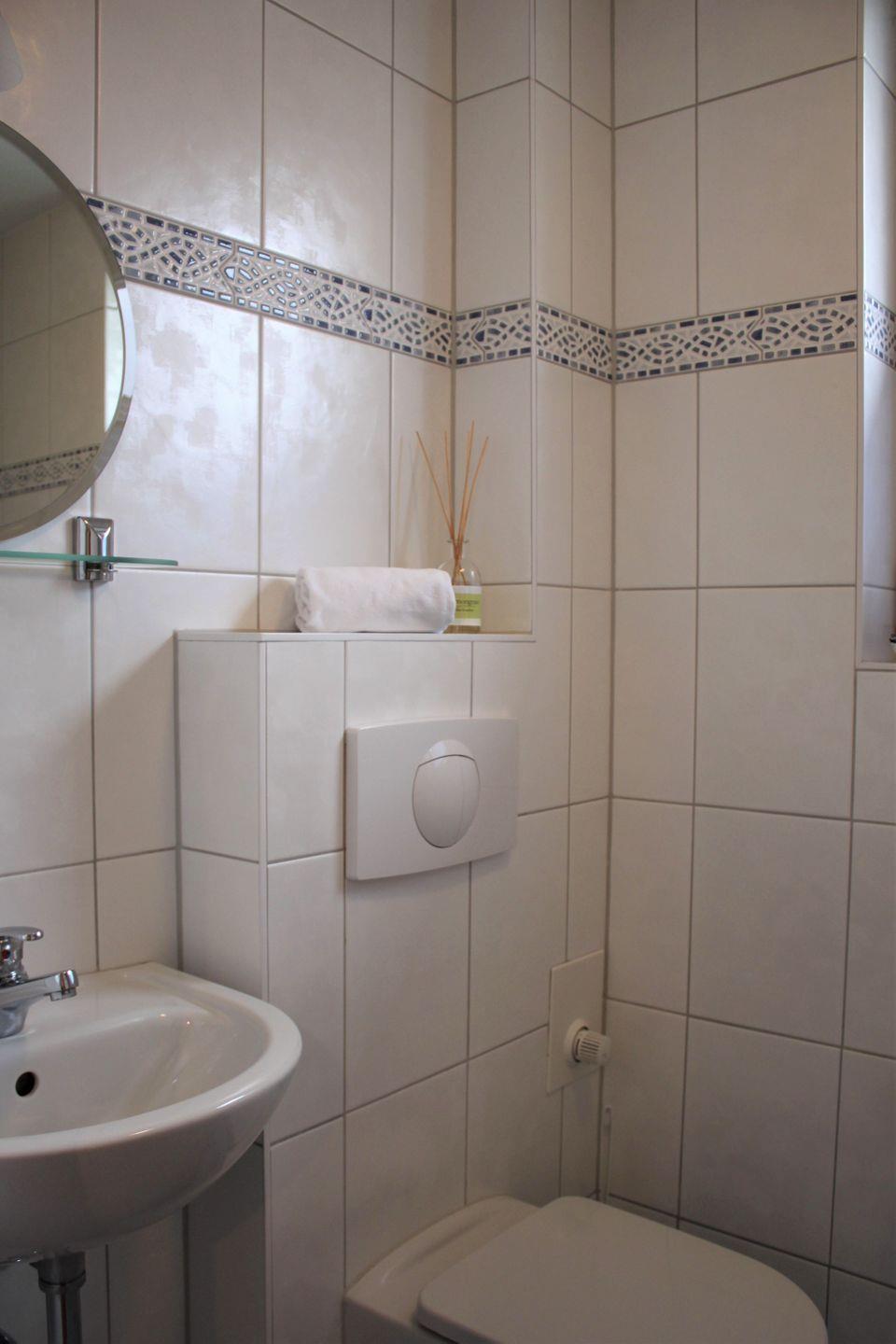 Das Badezimmer ist mit einer Dusche, einem Waschtisch, WC und einer Sauna ausgestattet. In der Nebensaison relaxen Sie hier nach einem langen Spaziergang am Strand. Ein zusätzliches Gästebadezimmer mit Waschtisch und WC runden das Angebot des Ferienhauses ab.