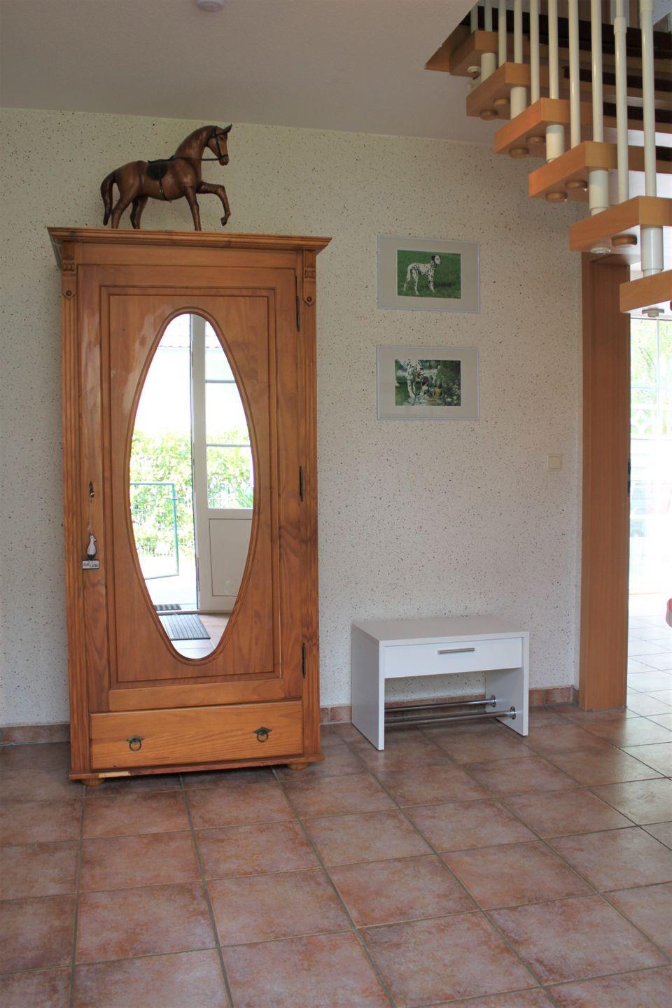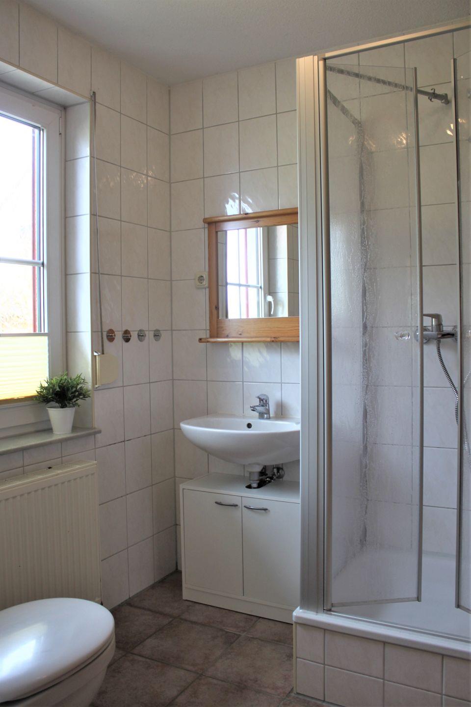 Das Badezimmer, ebenfalls in der oberen Etage des Hauses, ist mit einer Badewanne, WC und Waschtisch ausgestattet. Im zweiten Badezimmer, welches sich im Erdgeschoss des Hauses befindet, stehen Ihnen eine Dusche, ein Waschtisch, WC und eine Sauna zur Verfügung.
