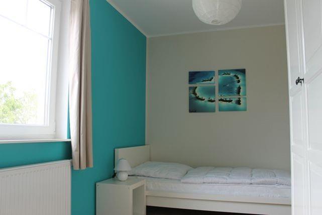 Über eine Treppe im Eingangsbereich gelangen Sie in die obere Etage des Hauses. Hier befinden sich die drei separaten modernen Schlafzimmer, die entweder mit einem Doppelbett, zwei Einzelbetten oder einem Etagenbett und jeweils genügend Stauraum für Ihre Garderobe möbliert sind.