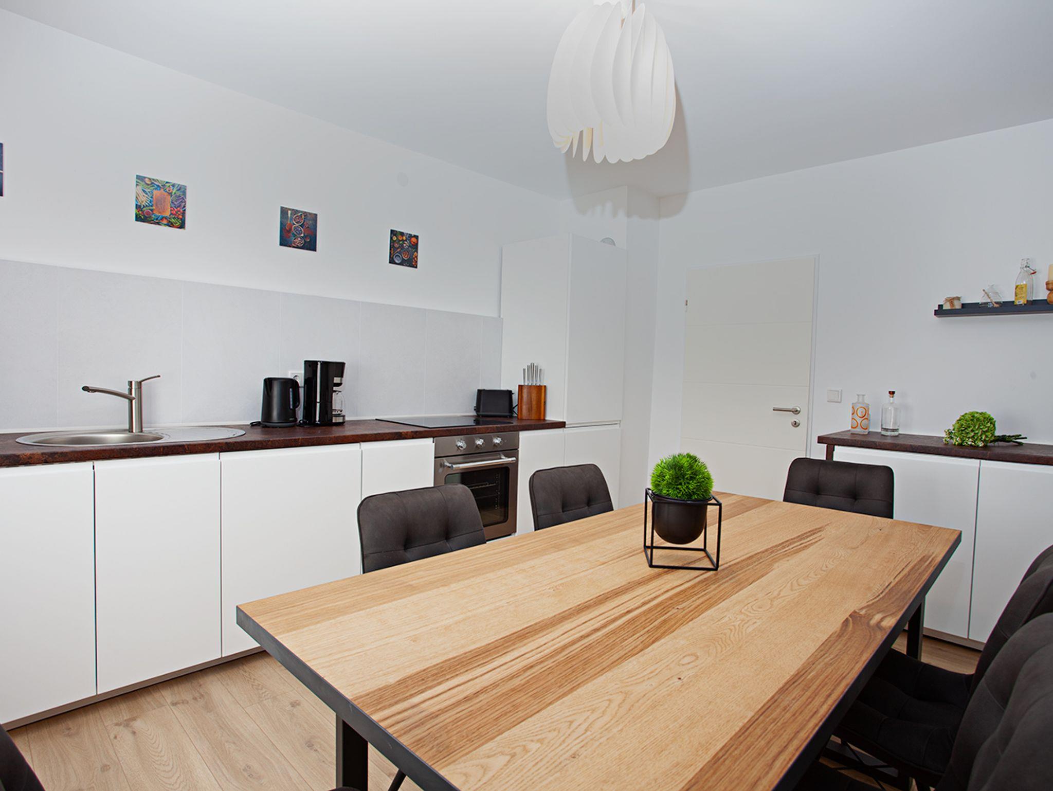 In allen Appartements befindet sich eine voll ausgestattete Küche mit Induktionsherd, Kühlschrank, Mikrowelle/Grillkombination, Wasserkocher und Nespresso-Kaffeemaschine. Das schöne wertige Koch- und Essgeschirr bereitet Selbstversorgern Vergnügen und lässt keine Wünsche offen. In jedem Zimmer befindet sich ein großer SMART – TV.