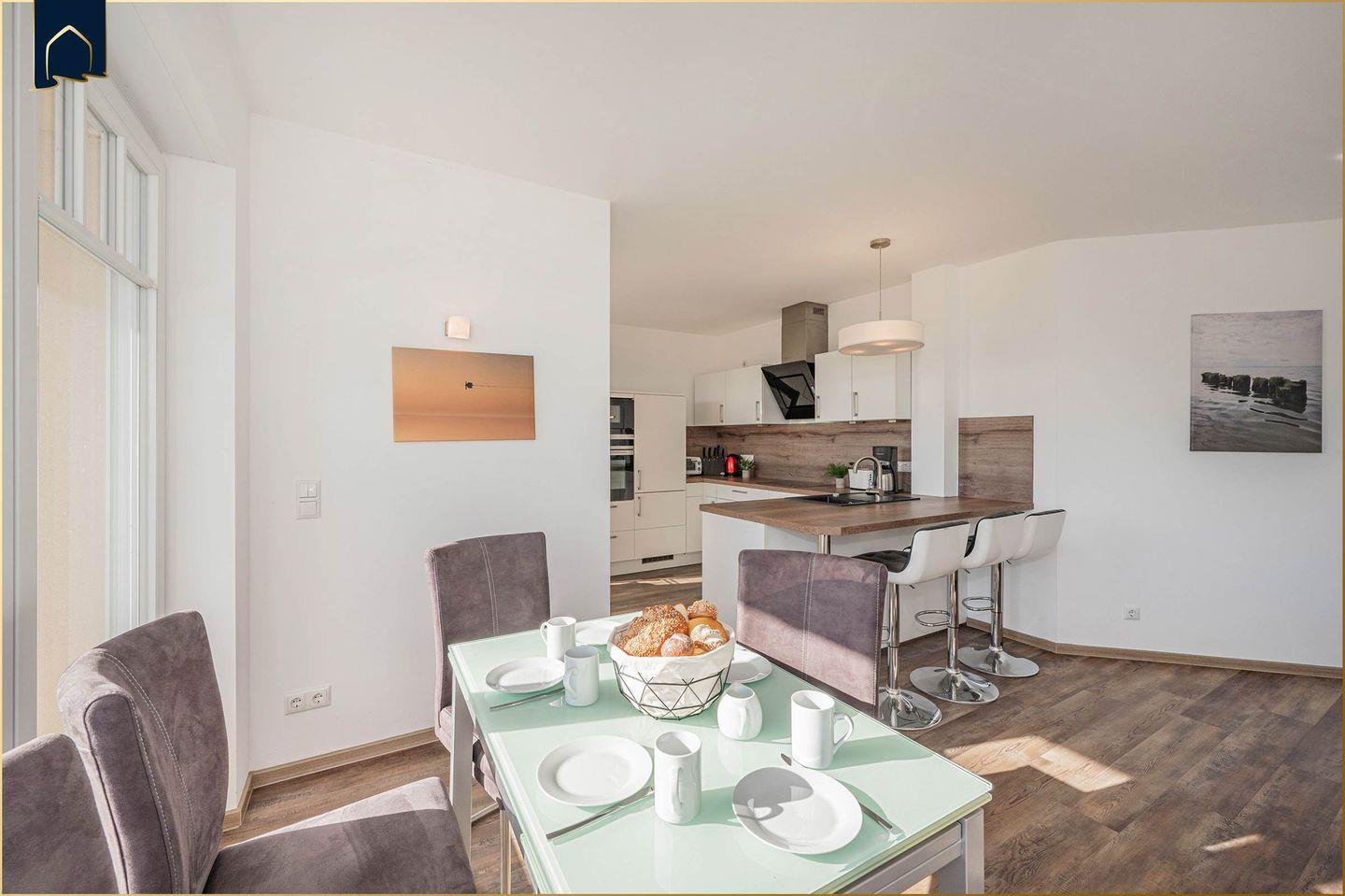 Diese stilvolle 86?m² große Ferienwohnung bietet alles, was das Urlaubsherz begehrt – ob für Paare, Familien oder Freunde. Zwei gemütliche Schlafzimmer mit Platz für bis zu 5 Personen, ein modernes Badezimmer mit Dusche sowie ein großzügiger Wohnbereich mit Sofaecke und TV sorgen für Komfort und Erholung. Die offene Küche ist vollständig ausgestattet – mit Backofen, Herd, Mikrowelle, Kühlschrank mit Gefrierfach, Kaffeemaschine und Spülmaschine. WLAN, zwei Fernseher runden das moderne Medienangebot ab.