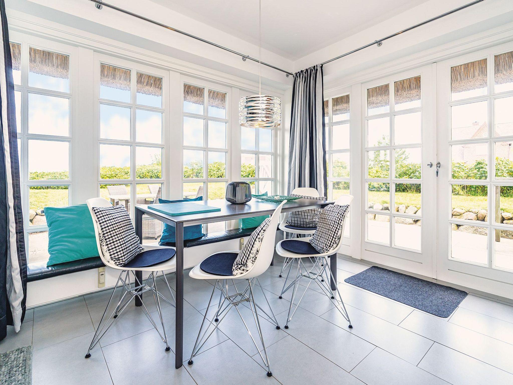 Unser Käpt´n Cook 1 in der Kurhausstraße erstrahlt nun in noch frischerem Glanz. Sie betreten dieses Quartier im Erdgeschoss, wo neben einem kleinen Duschbad gleich gegenüber der offene WohnEssbereich folgt. Um den Esstisch vor der großen Fensterfront stehen klassische Eameschairs, von hier und der großen Terrasse hat man einen tollen Weit- und Meerblick bis zum Quermarkenfeuer. Die traumhaften Sylter Sonnenuntergänge kann man von hier zu jeder Jahreszeit genießen. Vor dem Kamin finden Sie einen Relaxsessel und ein ganz besonderes Sofa, ein wahres Verwandlungswunder - mal Longchair, mal Sofa. Hier lässt sich jede Wetterlage gut verbringen. Nun kann man auch im wahrsten Sinne des Wortes ganz urlaubslike im Bett frühstücken und das Meer sehen, denn ein offenes Doppelschlafzimmer schließt direkt an die voll ausgestattete Küchenzeile an. Die Wendeltreppe hinab erwarten Sie ein Einzel- und ein Doppelschlafzimmer, sowie ein weiteres schönes Duschbad. Alles hier ist ansprechend hell und wohnlich mit kleinen Farbakzenten gestaltet.