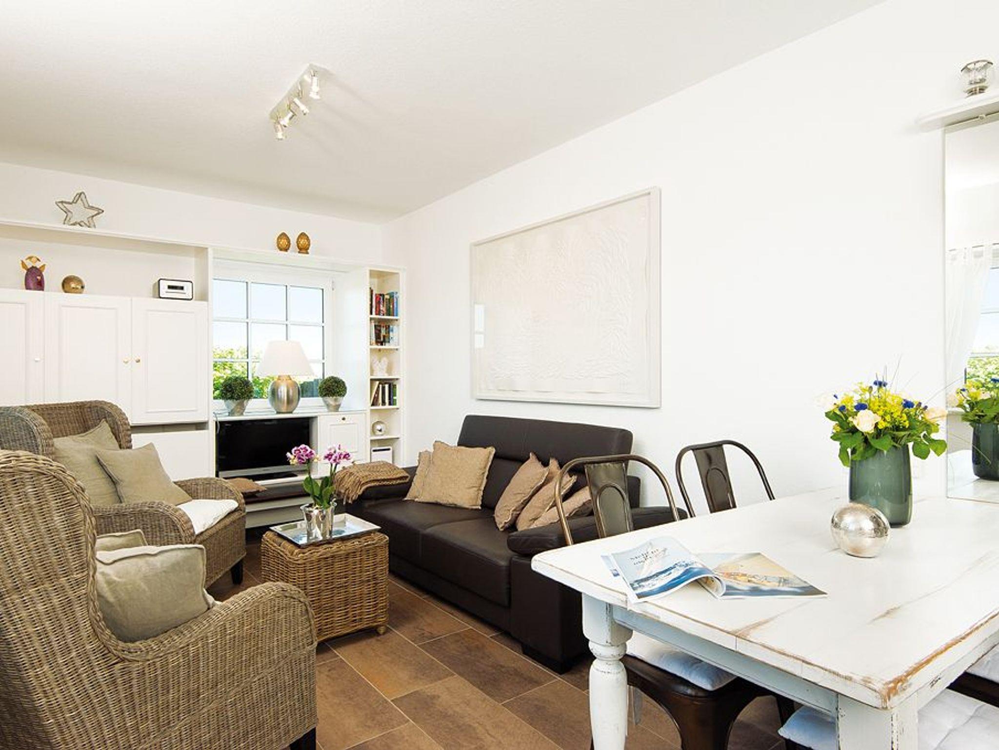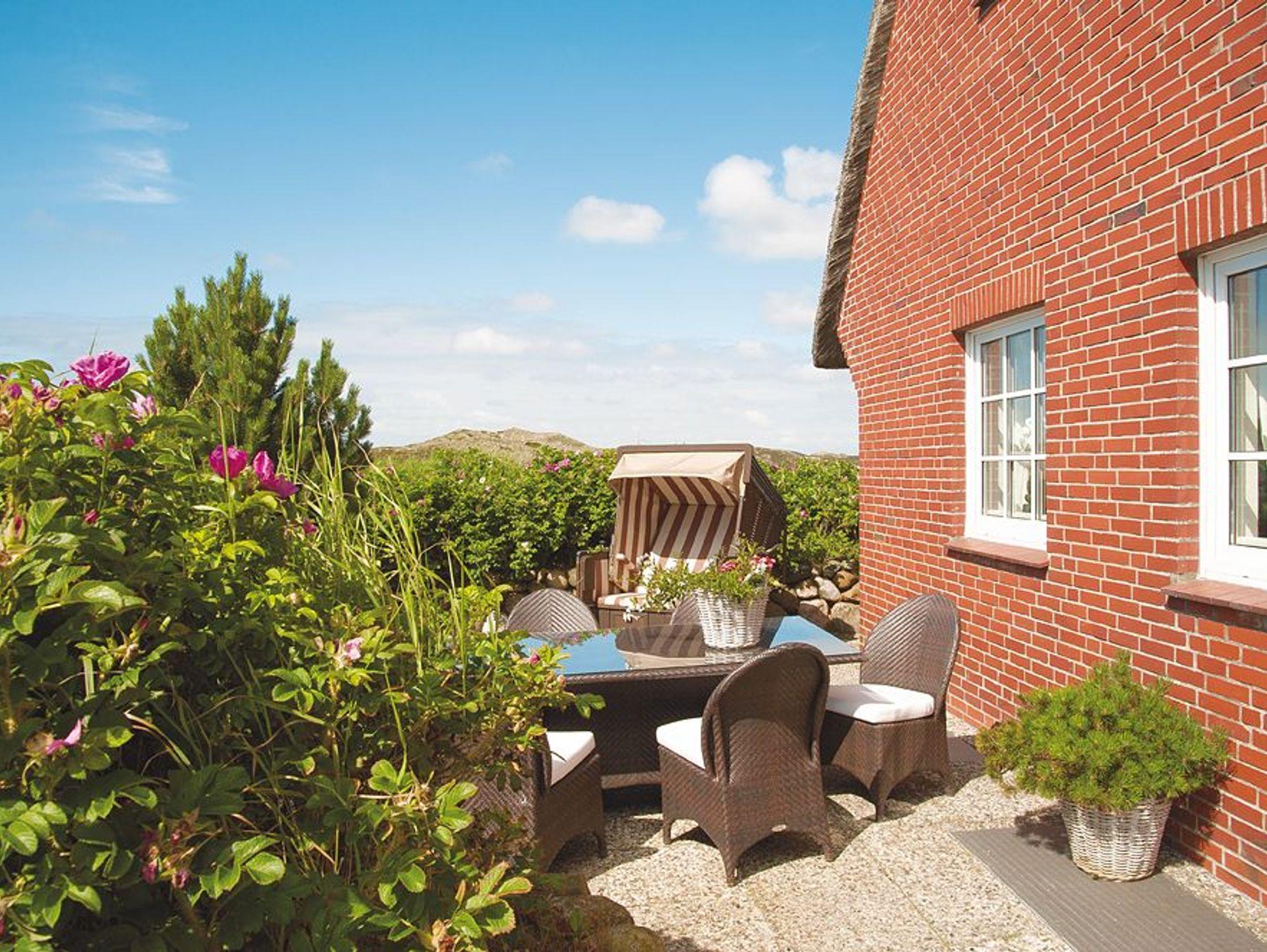 Ein verschlungener Pfad führt zu diesem Hausteil im Norden Kampens auf einer Düne unweit der Hauptstraße, was angesichts der grandiosen Kulisse kaum ins Gewicht fällt. Der Panoramablick reicht vom Quermarkenfeuer über die Salzwiesen bis zum Wattenmeer. Von der Terrasse nach Westen geht es in den gemütlichen Wohnbereich mit einem Esstisch für Vier und separater Küche. Aus dem Doppelschlafzimmer im Obergeschoss ist der Ausblick herrlich. Außerdem gibt es hier ein elegantes Duschbad. Im Untergeschoss befindet sich ein weiteres Doppelschlafzimmer und ebenfalls ein modernes Duschbad samt Waschmaschine.