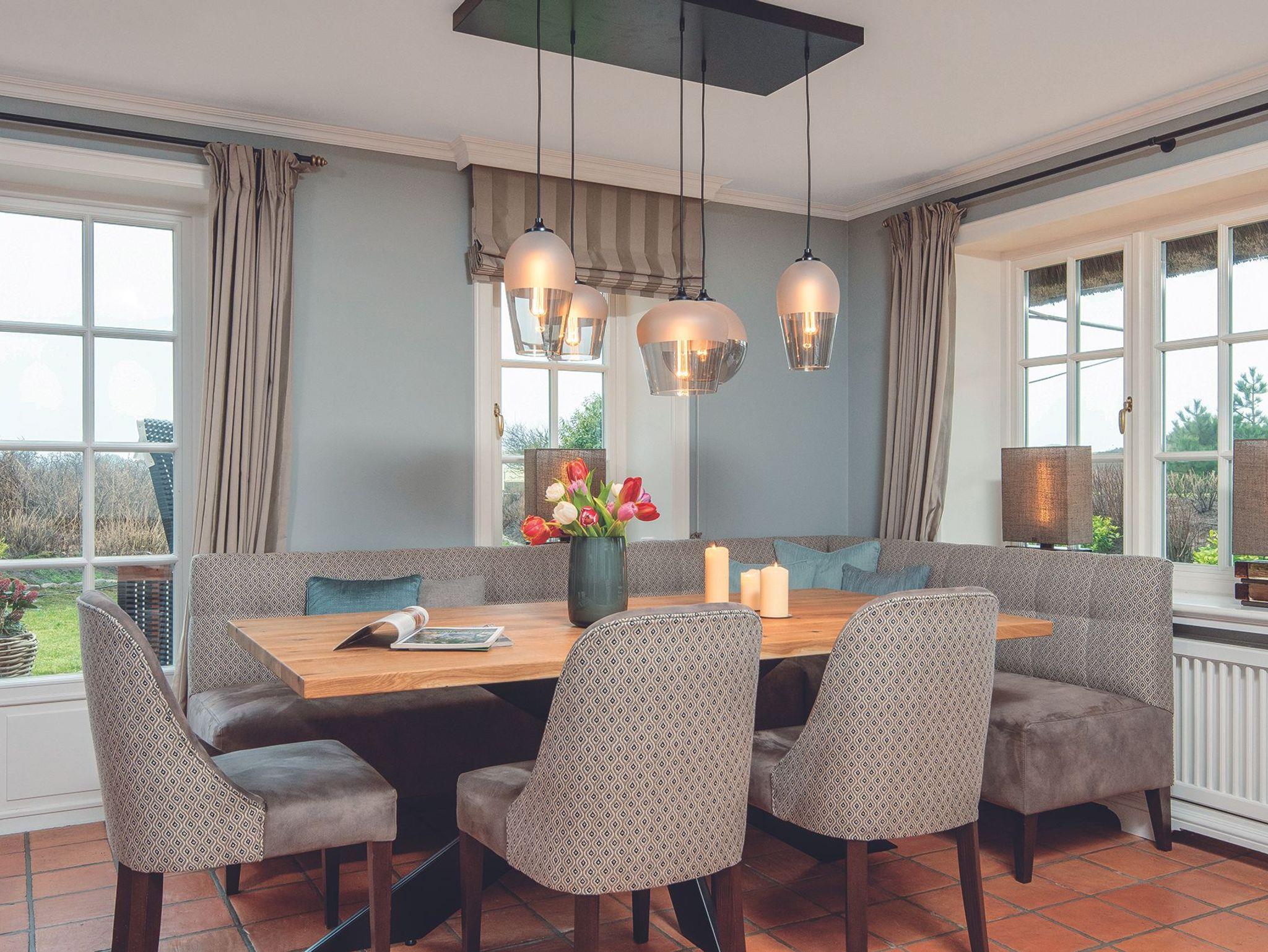 Platz für bis zu 6 Personen und viel Wohnqualität, bietet das vierte Hausteil des Prahl Hüs. Elegante Holzfußböden, Tischlereinbauten, ein Kamin und gehobene Ausstattung gehören hier zum Standard. Gekocht wird in einer perfekt ausgestatteten offenen Küche. Im Ober- und Untergeschoss gibt es jeweils ein Einzel- und ein Doppelzimmer. Das elegante Bad im Untergeschoss besitzt Wanne und Dusche. Oben wartet ein modernes Duschbad auf Sie, parterre ist zusätzlich ein Gäste-WC. Die Südterrasse im offenen Gartenteil wartet mit einem eigenen Strandkorb auf. Für das Wohlgefühl sorgt die hauseigene Sauna- Dampfbad- Oase, die allen Gästen des Prahl Hüs zur Verfügung steht.
