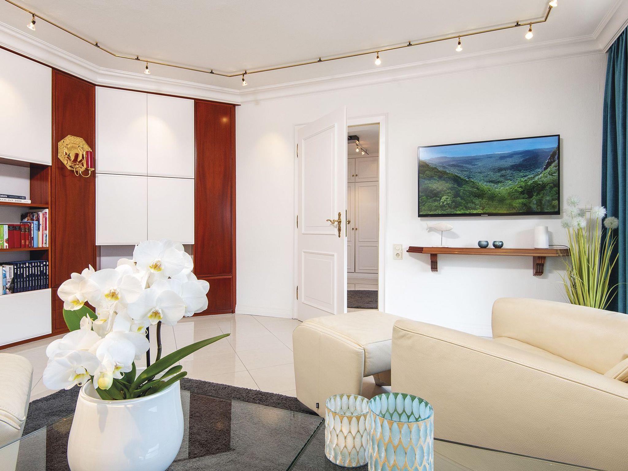 Dieses wohnliche Appartement liegt im 1. Obergeschoss eines hochwertigen Appartementhauses in der Kurhausstraße. Über einen kleinen Flur erreichen Sie den gefliesten Wohnbereich, welcher sich in eine kleine offene Küche mit Essplatz für Vier, sowie ein Wohnzimmer mit Balkon samt Strandkorb und seitlichem Meerblick aufteilt. Das mit Teppichboden ausgelegte Obergeschoss erreichen Sie über eine offene Wendeltreppe. Hier hält das Quartier ein Doppelschafzimmer nebst durch einen Raumtrenner separierten Arbeitsplatz, ein Bad mit kleiner Wanne und ein Einzelschlafzimmer mit kleinem Duschbad en suite für Sie bereit. Ein funktionales Raumwunder für bis zu drei Gäste in bester Lage Kampens.
