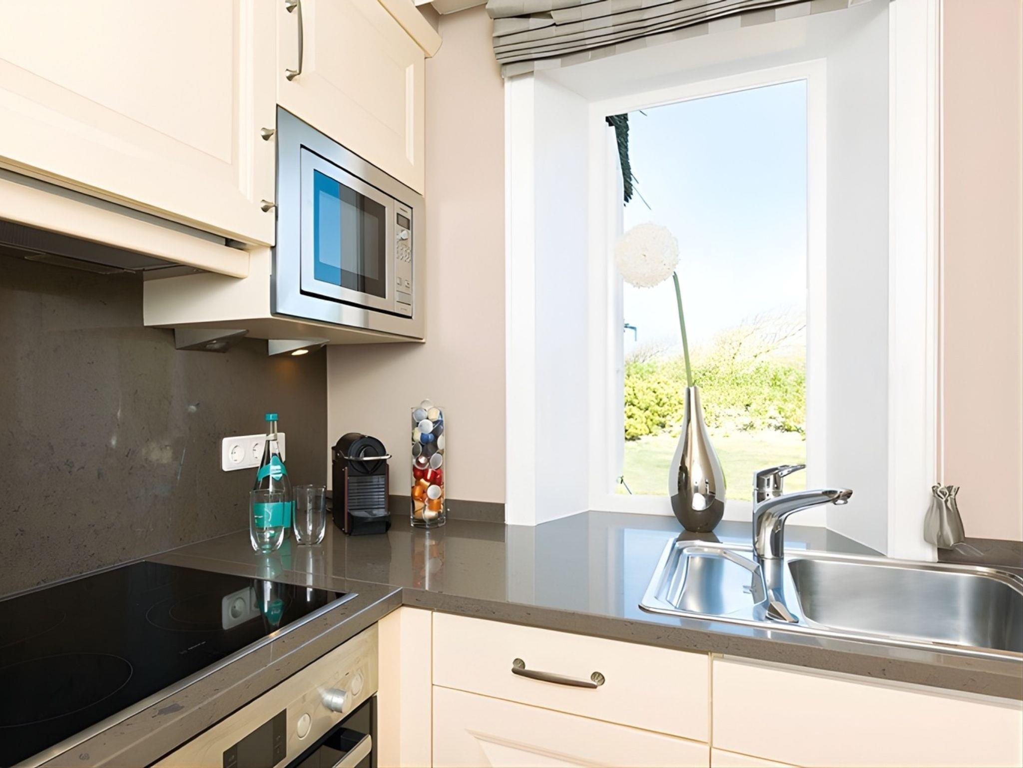 Das passende Quartier für vier Personen: Die Südterrasse samt Strandkorb und Gartenmöbeln bietet einen malerischer Blick auf die Dünen. Für Gaumenfreuden aller Art können Sie in der offenen Küche sorgen. Der Wohnraum besitzt neben einem gemütlichen Sofa und dem großzügigen Essplatz auch einen Kamin und ist mit Natursteinboden ausgelegt. Im Obergeschoss erwartet Sie ein behagliches Doppelschlafzimmer, sowie ein edles Duschbad. Im Untergeschoss wurden ein weiteres Doppelzimmer und ein DuschWannenbad exquisit ausgestattet. Für das Wohlgefühl auch an trüben Tagen sorgt die hauseigene Sauna Dampfbad-Oase, die allen Gästen des Prahl Hüs zur Verfügung steht.