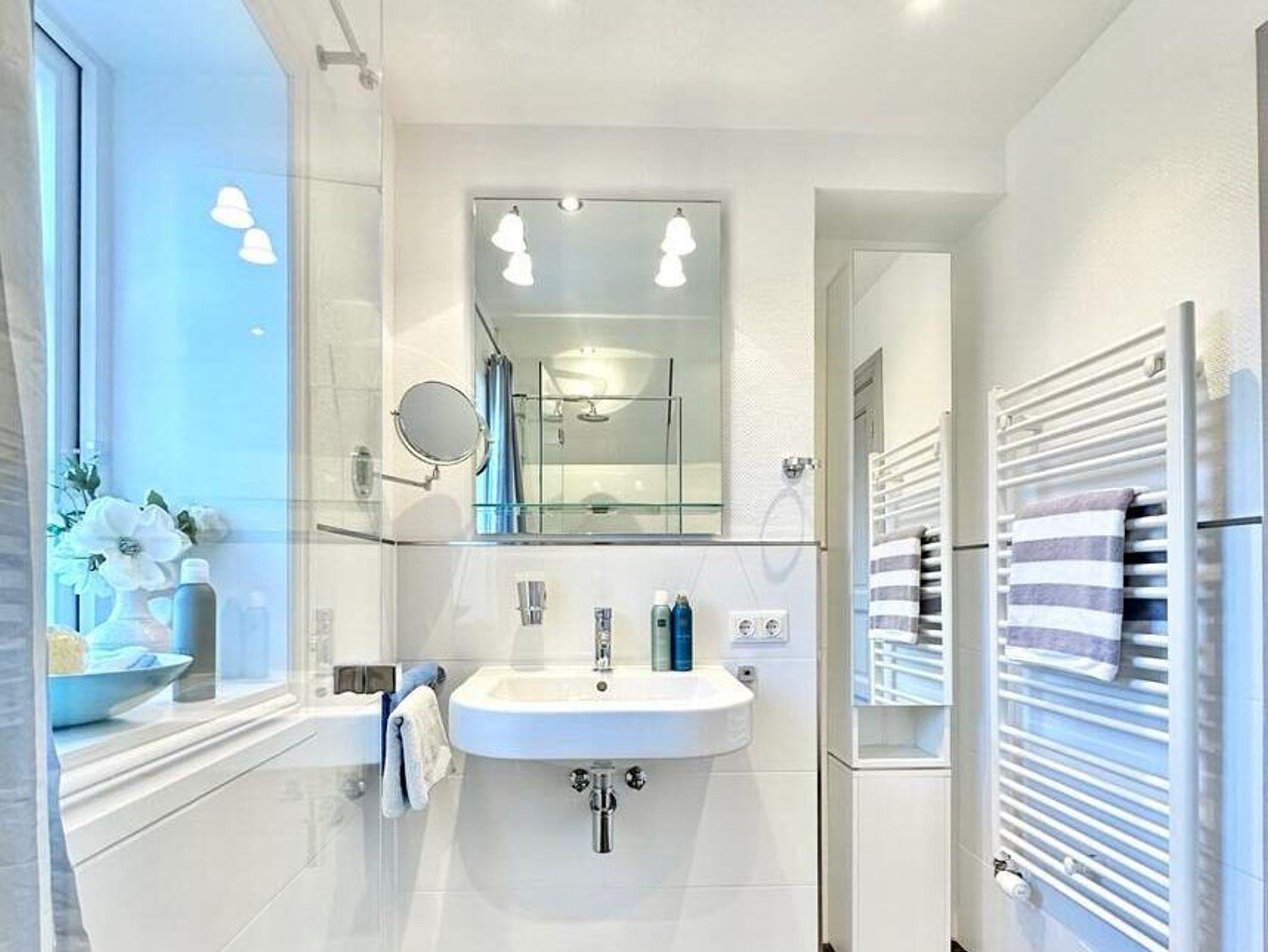 Umgeben von einem hübschen Garten, mitten im Dorf und doch ganz ruhig, liegt das Schroeders Haus. Das Hausteil Mitte verfügt über ein eine friesische Stube mit Esstisch und angrenzender separater Küche. Vorbei am Gäste-WC erwarten Sie im Obergeschoss zwei Doppelschlafzimmer, ebenfalls in friesisch-blau. Beide haben einen kleinen Schreibtisch und einen ganz verwunschenen Blick in den Garten. Ebenfalls auf dieser Etage befindet sich ein modernes Duschbad. Zum Quartier gehört auch ein eigener Terrassenplatz im Garten für eine gemütliche Tasse Kaffee in der Sylter Sonne.