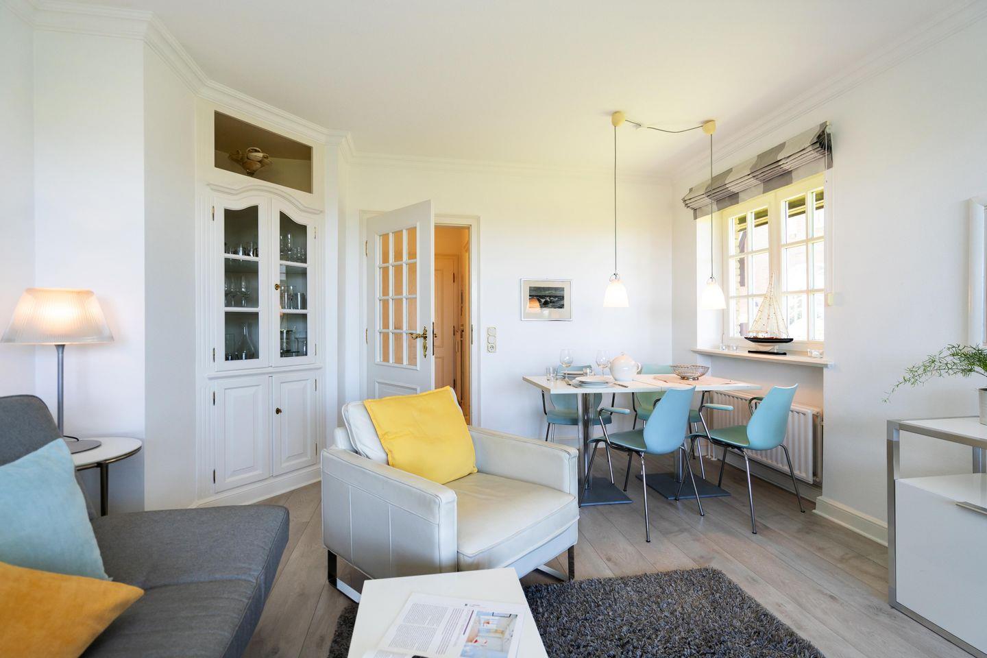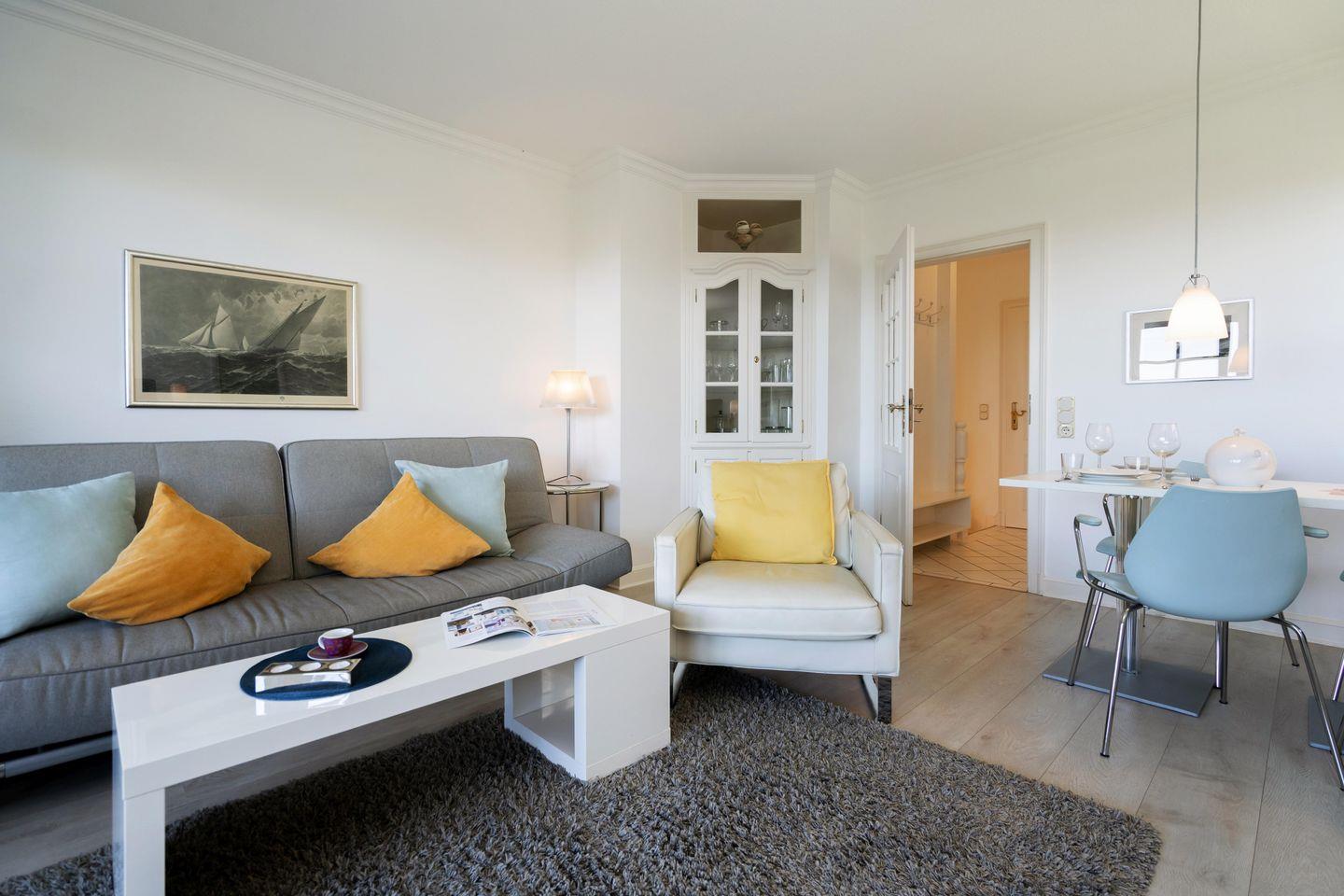 Das hochwertig eingerichtete App. "Sunny-Beach" für bis zu 2 Personen verläuft über zwei Ebenen und verspricht Ihnen absoluten Komfort in einem modernen Ambiente. Im Erdgeschoss erwartet Sie ein heller Wohnbereich mit direktem Zugang zur eigenen Terrasse samt Strandkorb und Gartenmöbeln (in der Saison) sowie Blick über die Dünen bis hin zu beiden Meeren. Die kleine Küche ist voll ausgestattet und dient hervorragend zum Kochen. Der Wohnbereich ist durch eine moderne Essecke ausgestattet. Das ausziehbare Sofa bietet eine zusätzliche Schlafmöglichkeit. Über eine Treppe gelangen Sie runter ins Souterrain. Dort erwartet Sie ein geräumiges Doppelschlafzimmer mit Boxspringbett. Der große Einbauschrank bietet Ihnen eine Menge Stauraum für Ihren Sylturlaub. Ebenfalls im Souterrain befindet sich das helle Badezimmer, welches mit einer Badewanne inkl. Duschfunktion ausgestattet ist. Das App. verfügt über WLAN. Kostenlose, öffentliche Parkmöglichkeiten befinden sich direkt an der Kurhausstraße. Einen gemeinschaftlichen Waschraum inkl. Waschmaschine und Wäschetrockner (gebührenpflichtig) finden Sie im Keller des Hauses. Haustiere sind nicht gestattet.