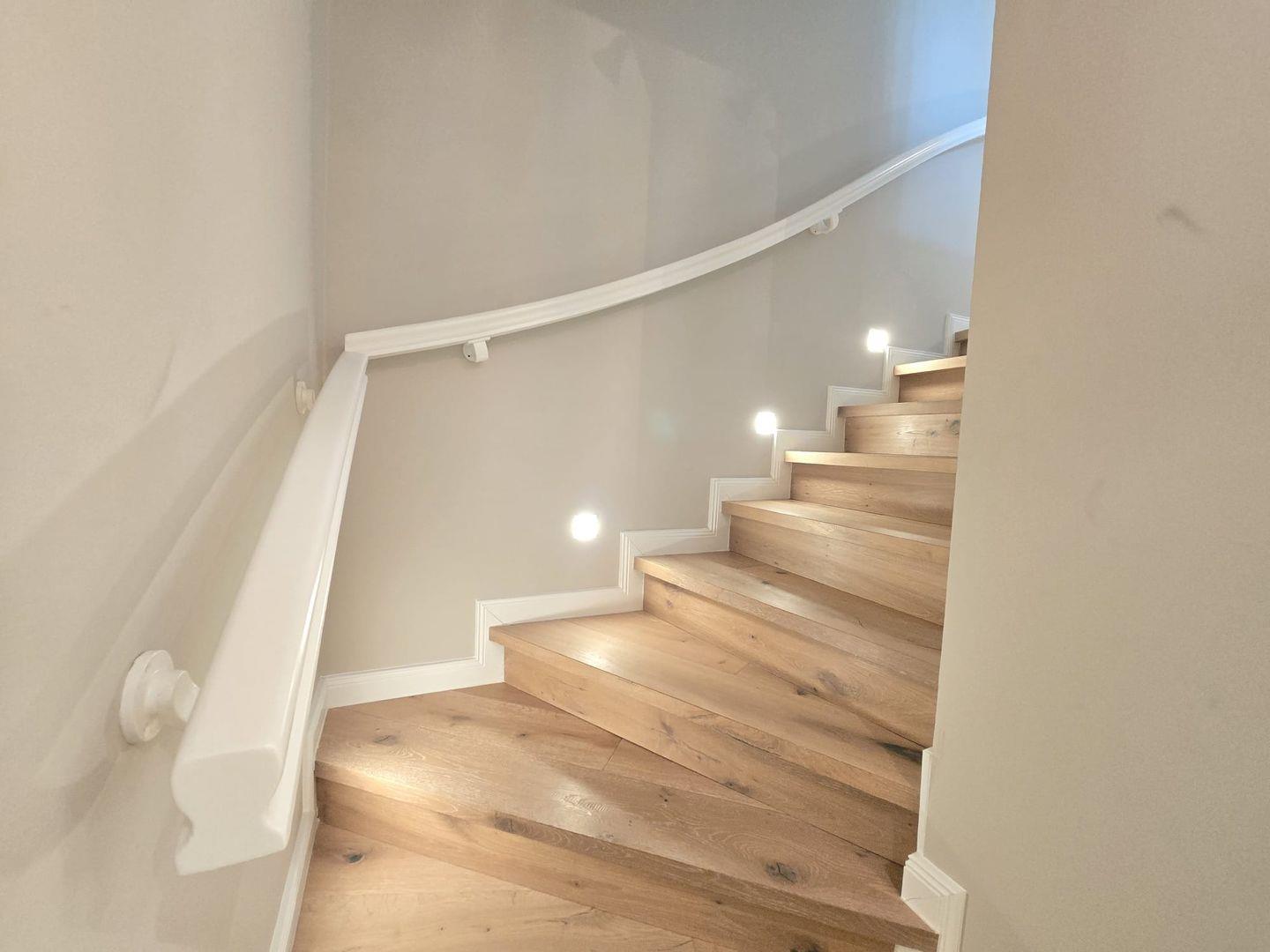 Im Erdgeschoss befindet sich ein offener Wohn-/Essbereich mit einer modernen Küche. Der helle Wohnraum verfügt über eine einladende Wohnlandschaft, die zu einem gemütlichen Fernsehabend vor dem Flatscreen-TV einlädt. Die Küche ist voll ausgestattet und bietet Ihnen u. a. ein Induktionskochfeld, einen Geschirrspüler, einen Backofen, eine Nespresso Maschine.