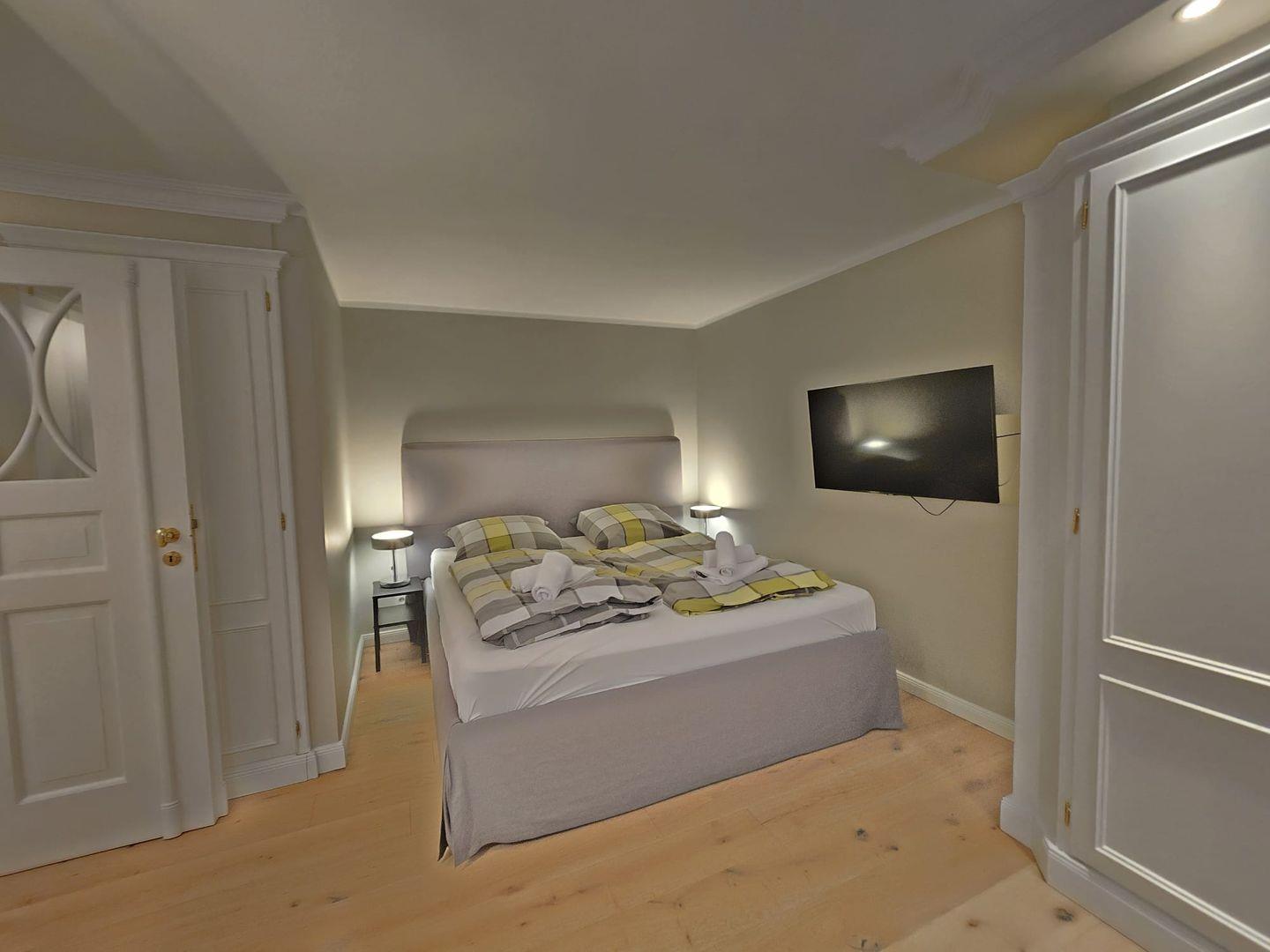Im Souterrainbereich steht Ihnen ein schön gestalteter Raum mit einem großen Boxspringbett (1,80 m x 2,00 m) und einer Schlafcouch zur Verfügung. Benachbart empfängt Sie ein weiteres Badezimmer mit Dusche.