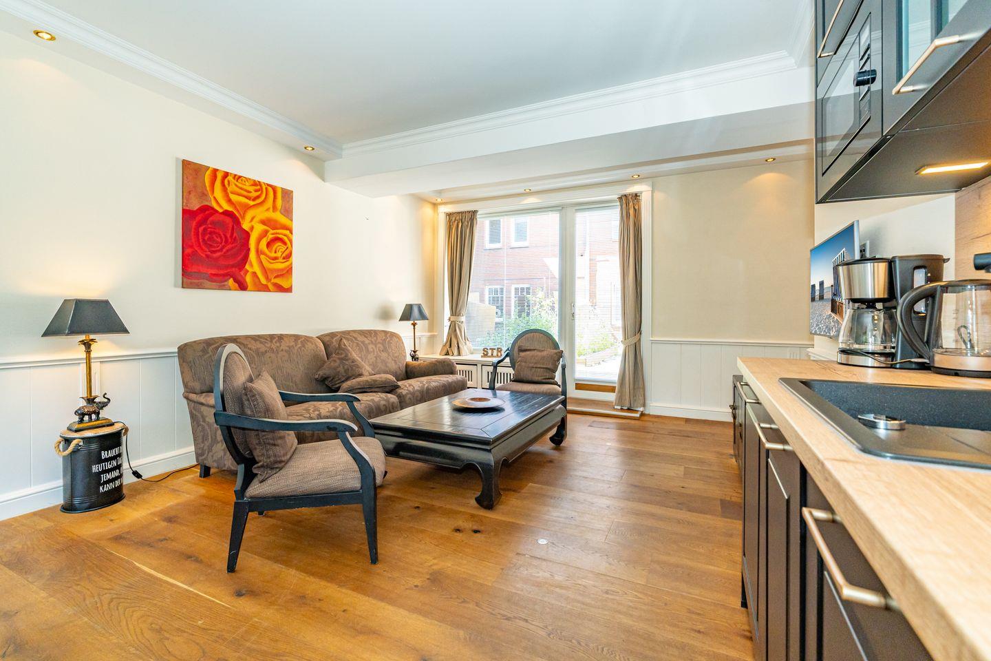 Die 2-Zimmer-Ferienwohnung verteilt sich über zwei Ebenen. Im Erdgeschoss der Ferienwohnung befindet sich der offene und helle Wohn- und Essbereich mit Couch, TV (Alle TV Geräte sind ausschließlich für eigene Streamingdienste nutzbar.) und Essplatz. Die voll ausgestattete Küche ist mit modernen Geräten wie einem Induktionsherd, Kühlschrank, Mikrowelle und sogar einer Spülmaschine ausgestattet, sodass Sie im Handumdrehen Ihr Lieblingsgericht zaubern können. Vom gemütlichen Wohn- und Essbereich haben Sie auch Zutritt zur nach Osten ausgerichteten Terrasse mit Gartenmöbeln und Strandkorb (saisonal). Über eine Treppe gelangen Sie in das Untergeschoss (Souterrain) der Wohnung, dort befindet sich das gemütliche Schlafzimmer mit Doppelbett und einem maritimen Kojenschrankbett (Länge ca. 170cm) für Kinder. Ein Highlight dieser Unterkunft ist das Badezimmer, das sowohl über eine große, offene Dusche als auch über eine Badewanne verfügt. Hier können Sie nach einem erlebnisreichen Tag an der frischen Luft entspannen und die Seele baumeln lassen. Ein Parkplatz gehört nicht zur Ferienwohnung, Sie können aber kostenfrei direkt an der Straße vor dem Haus parken. Im Haus befindet sich ein neu sanierter Wellnessbereich mit Pool und Saunen zur gemeinschaftlichen Nutzung.