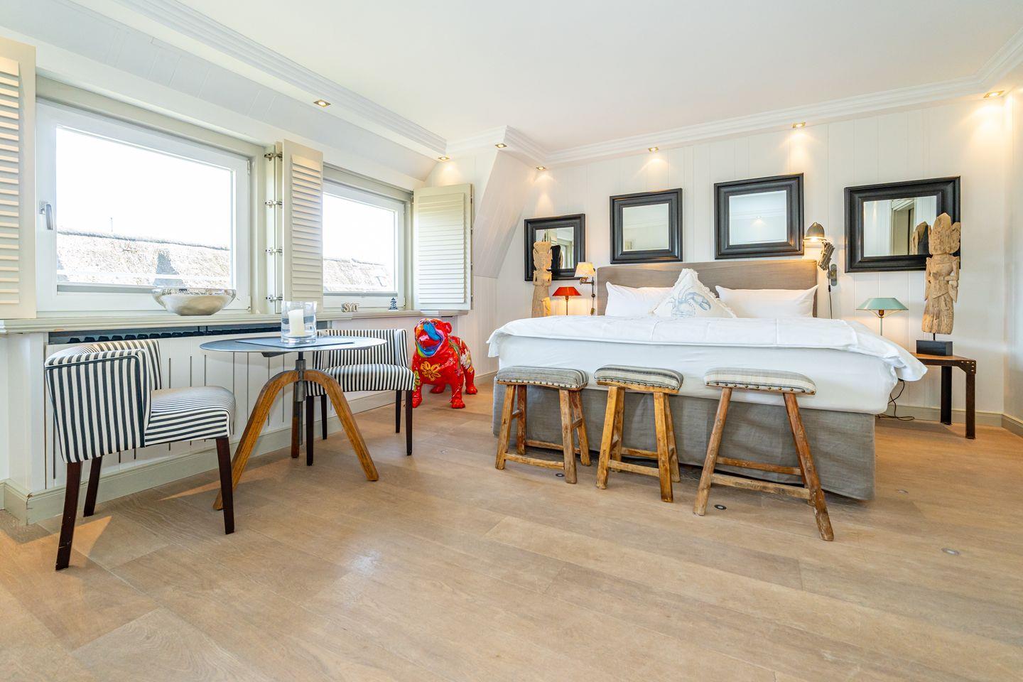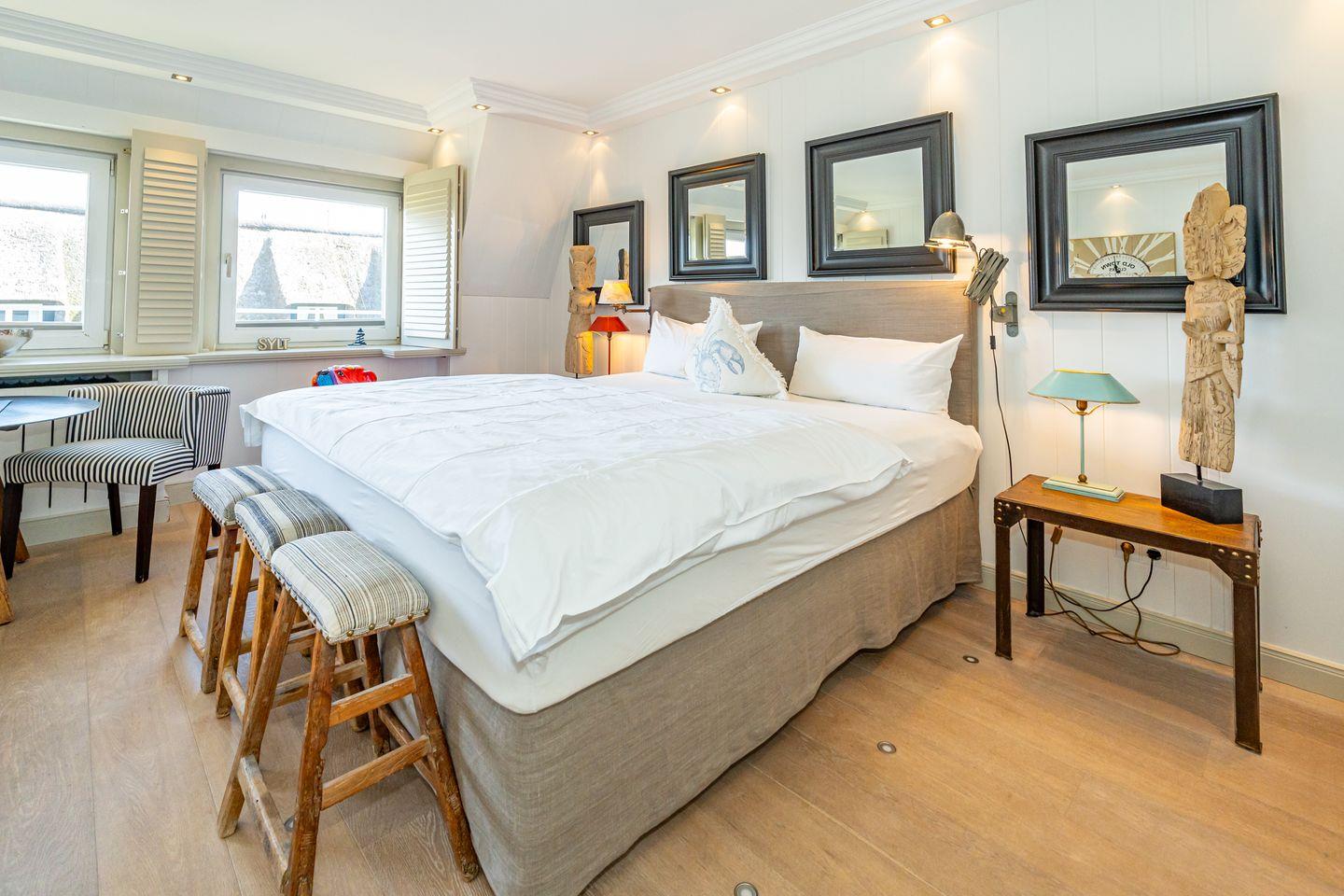 Die charmante Ferienwohnung Kampenkliff begrüßt Sie in bester Lage direkt auf der bekannten Kurhaus Straße in Kampen. Exclusive Boutiquen und angesagte Bars und Clubs befinden sich in unmittelbarer Nähe. Der traumhafte Kampener Strand ist auch nur einen Steinwurf entfernt. Auf 40 qm erwartet Sie hier Stil und Komfort auf höchstem Niveau. Das kombinierte Wohn- und Schlafzimmer , ausgestattet mit hochwertigem Holzfußboden, Flat TV, Doppelbett, sowie geschmackvollen Designer Möbeln verspricht Erholung pur.