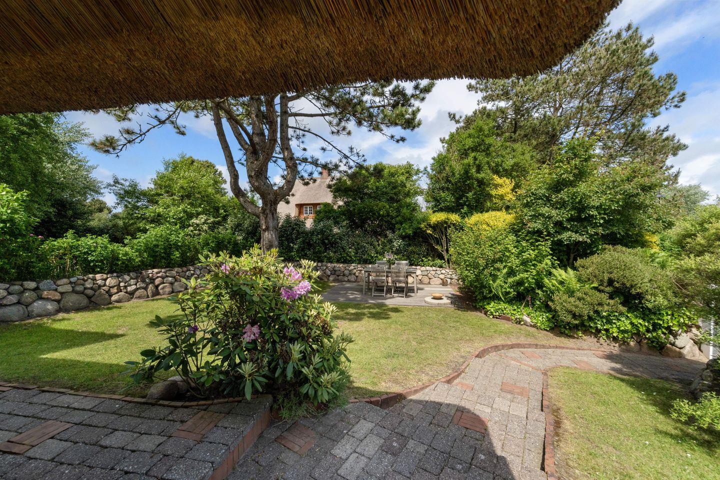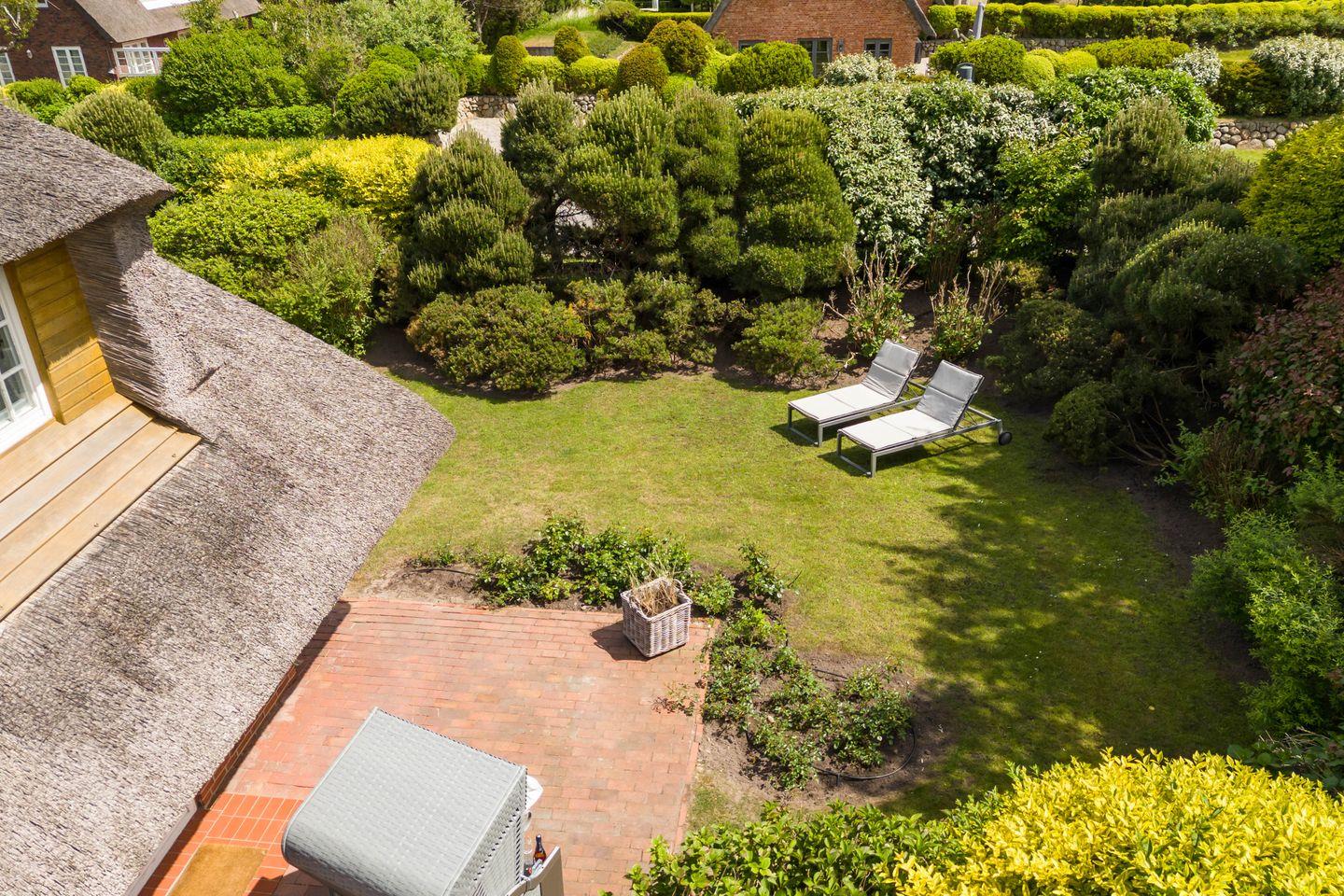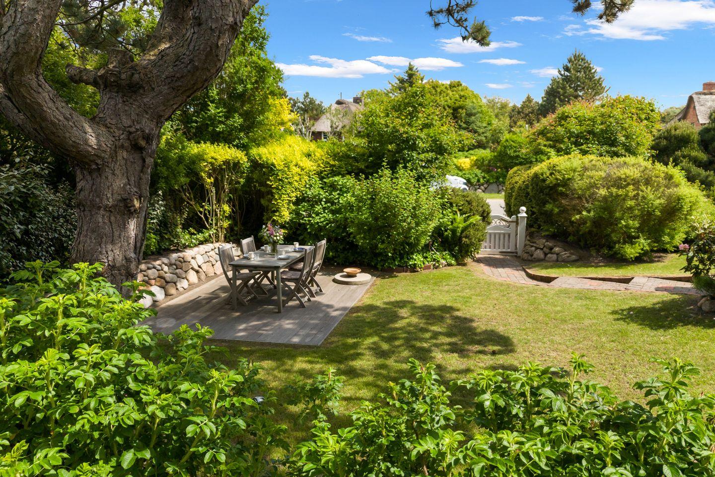 Ein besonderes Highlight des Hauses ist der weitläufige, eingewachsene Garten. Hier können Sie die frische Nordseeluft in vollen Zügen genießen. Auf der Sonnenterrasse können Sie sich entspannen und die Natur auf sich wirken lassen – von den ersten Sonnenstrahlen am Morgen bis zu den letzten warmen Stunden des Tages. Der Garten ist perfekt für ein Frühstück im Freien oder eine entspannte Lektüre im Liegestuhl.