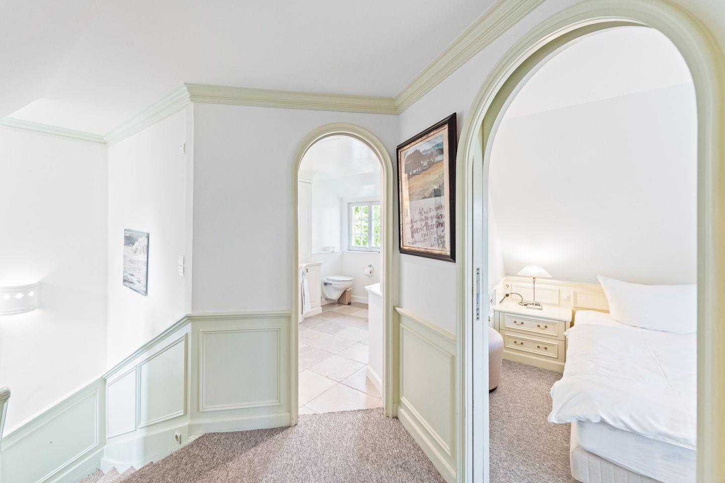 Das moderne Badezimmer ist lichtdurchflutet und mit einer belebenden Dusche sowie einem Föhn ausgestattet – ideal, um erfrischt in den Tag zu starten. Ein separates Gäste-WC bietet zusätzlichen Komfort.
