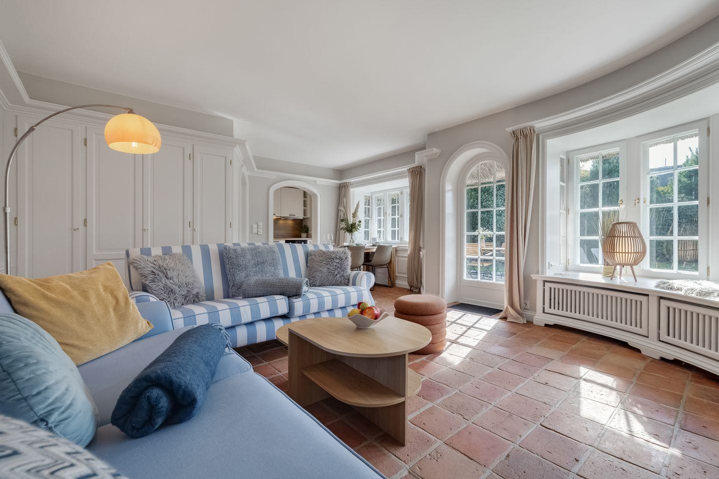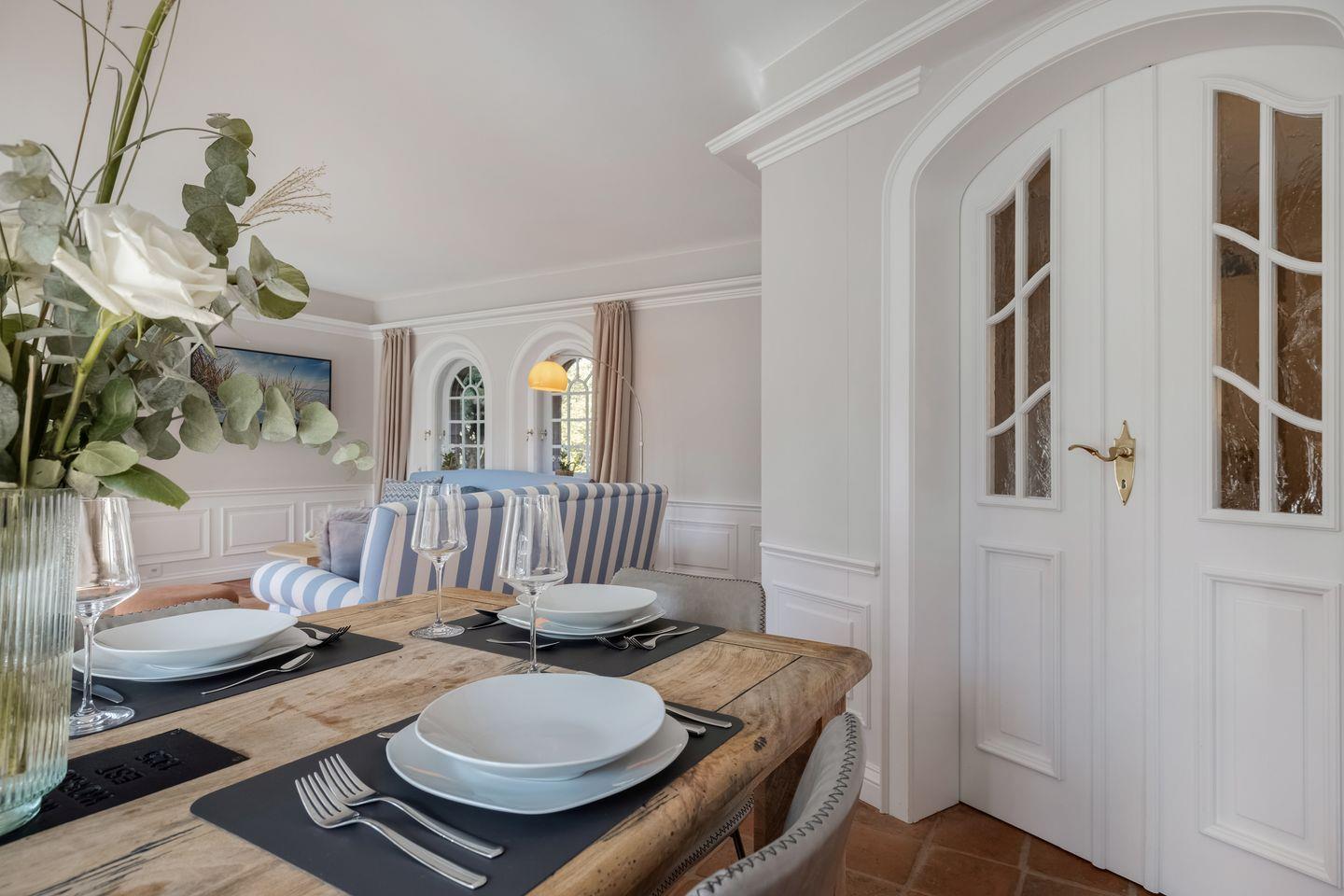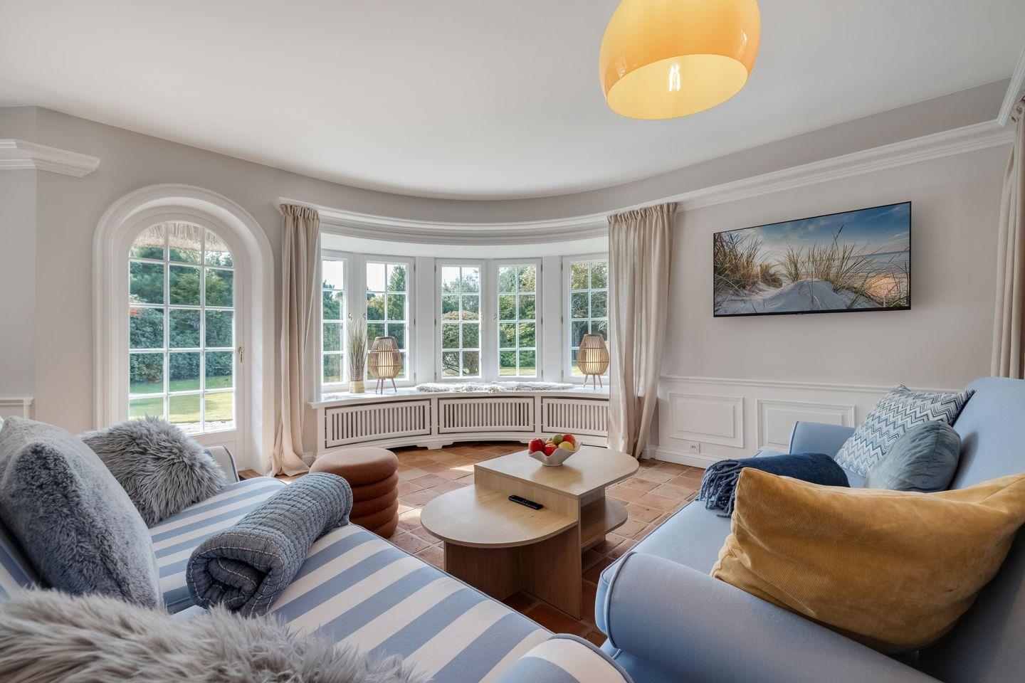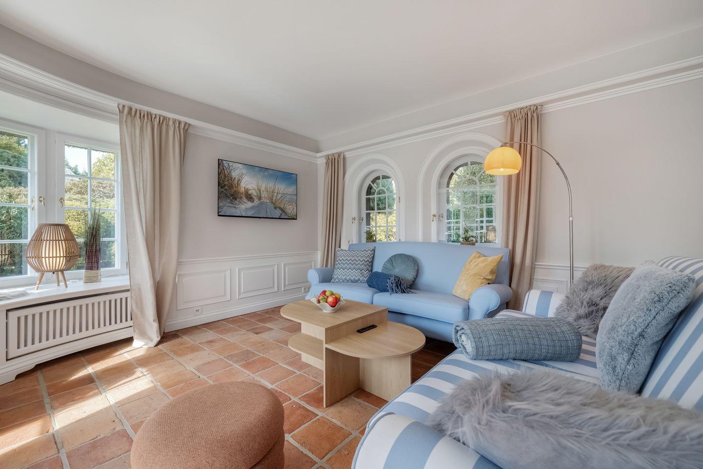 Diese im Jahr 2025 vollständig sanierte, exklusive 5 Sterne Hausscheibe unter Reet bietet auf ca. 90 m² eine großzügige Wohnfläche und bietet Platz für bis zu 5 Personen. Die ruhige, idyllische Lage in Kampen stellt den perfekten Ausgangspunkt dar, um sowohl das malerische Watt im Osten als auch die lebendige Innenstadt von Kampen bequem zu Fuß zu erreichen. Im Erdgeschoss empfängt Sie ein lichtdurchfluteter, offener Wohn- und Essbereich, der dank einer beeindruckenden Fensterfront einen herrlichen Blick auf den eigenen Garten freigibt. Die moderne, offene Küche ist mit hochwertigen Geräten bestens ausgestattet. Das Obergeschoss beherbergt ein gemütliches Doppelschlafzimmer sowie ein weiteres Schlafzimmer mit einem Einzelbett. Das elegante Tageslichtbad ist mit einer Dusche ausgestattet und bietet alles für eine erfrischende Auszeit. Im Souterrain erwartet Sie ein großzügiges Doppelschlafzimmer, ein zusätzliches Duschbad und ein Wellnessbereich mit einer Sauna – der perfekte Ort, um zu entspannen. Hier steht Ihnen ein weiteres Gäste-WC zur Verfügung. Alle Schlafräume und das Wohnzimmer sind mit Smart-TVs ausgestattet, um Ihnen Unterhaltung und Komfort zu bieten. Die Südterrasse mit angrenzendem Garten und einem Strandkorb (saisonabhängig) lädt zu entspannten Stunden im Freien ein. Darüber hinaus stehen Ihnen WLAN, ein eigener PKW-Stellplatz sowie eine Waschmaschine und ein Trockner zur Verfügung. Haustiere sind hier herzlich willkommen, sodass auch Ihr vierbeiniger Begleiter sich wie zu Hause fühlen kann. Erkunden Sie tagsüber den charmanten Ort Kampen und die Insel Sylt und lassen Sie den Abend in gemütlicher Runde ausklingen.