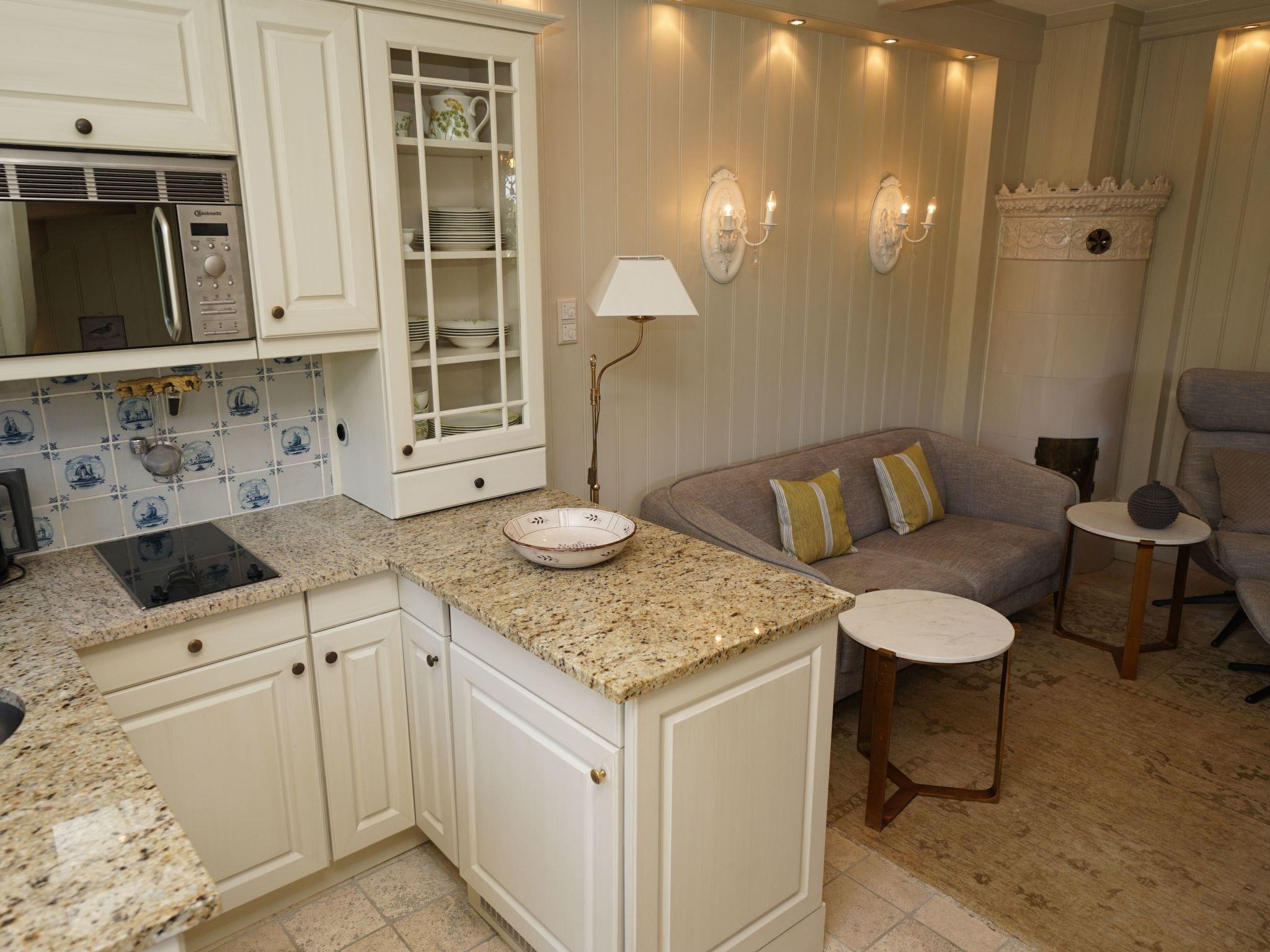 Inside, you can expect cosy warmth thanks to the partial underfloor heating, which makes for a particularly cosy atmosphere in the cooler months. The holiday flat is equipped with an open-plan kitchen that leaves nothing to be desired: In addition to a 2-ring hob, you will find a filter coffee machine, a pod coffee machine and a kettle. The practical dishwasher makes kitchen work easier. The exclusive use of a washing machine and tumble dryer also adds to the convenience - ideal for longer stays or after long days at the beach.