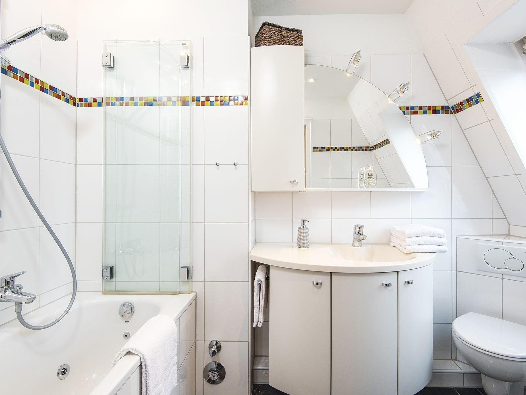 Dieses wohnliche Appartement liegt im 1. Obergeschoss eines hochwertigen Appartementhauses in der Kurhausstraße. Über einen kleinen Flur erreichen Sie den gefliesten Wohnbereich, welcher sich in eine kleine offene Küche mit Essplatz für Vier, sowie ein Wohnzimmer mit Balkon samt Strandkorb und seitlichem Meerblick aufteilt. Das mit Teppichboden ausgelegte Obergeschoss erreichen Sie über eine offene Wendeltreppe. Hier hält das Quartier ein Doppelschafzimmer nebst durch einen Raumtrenner separierten Arbeitsplatz, ein Bad mit kleiner Wanne und ein Einzelschlafzimmer mit kleinem Duschbad en suite für Sie bereit. Ein funktionales Raumwunder für bis zu drei Gäste in bester Lage Kampens.