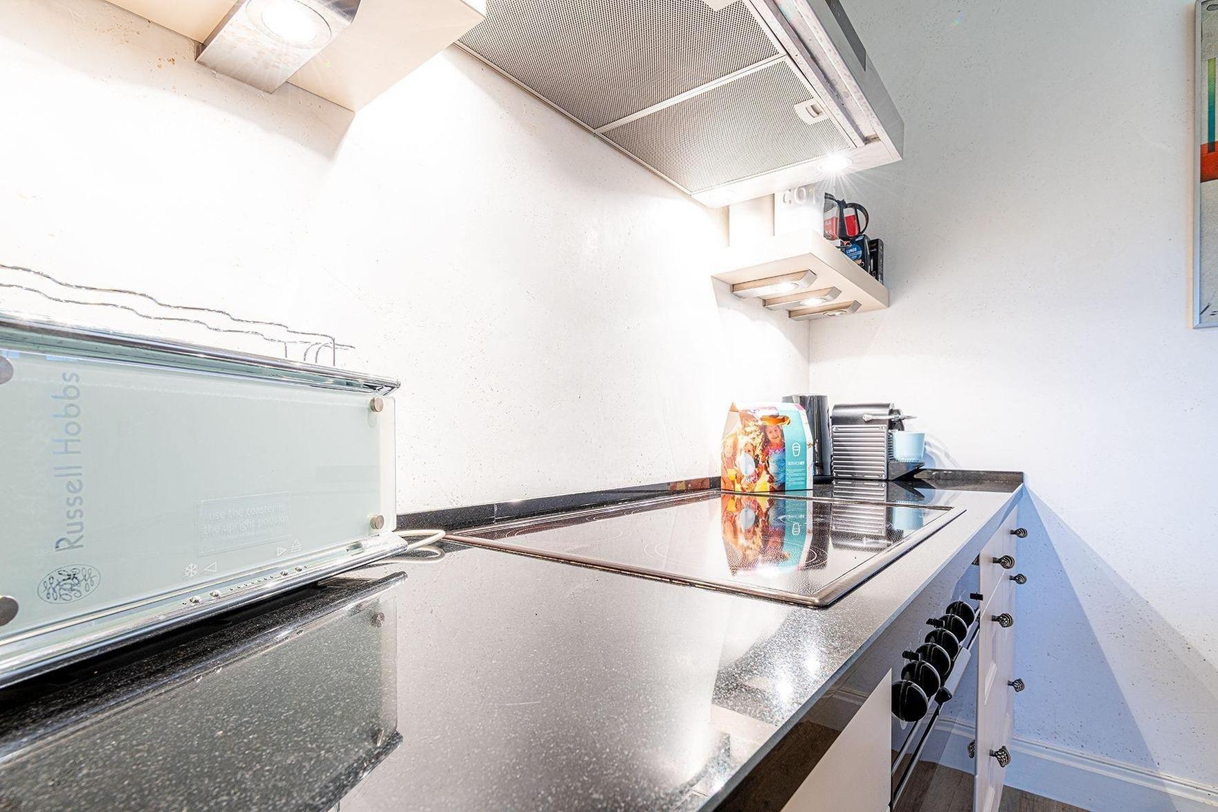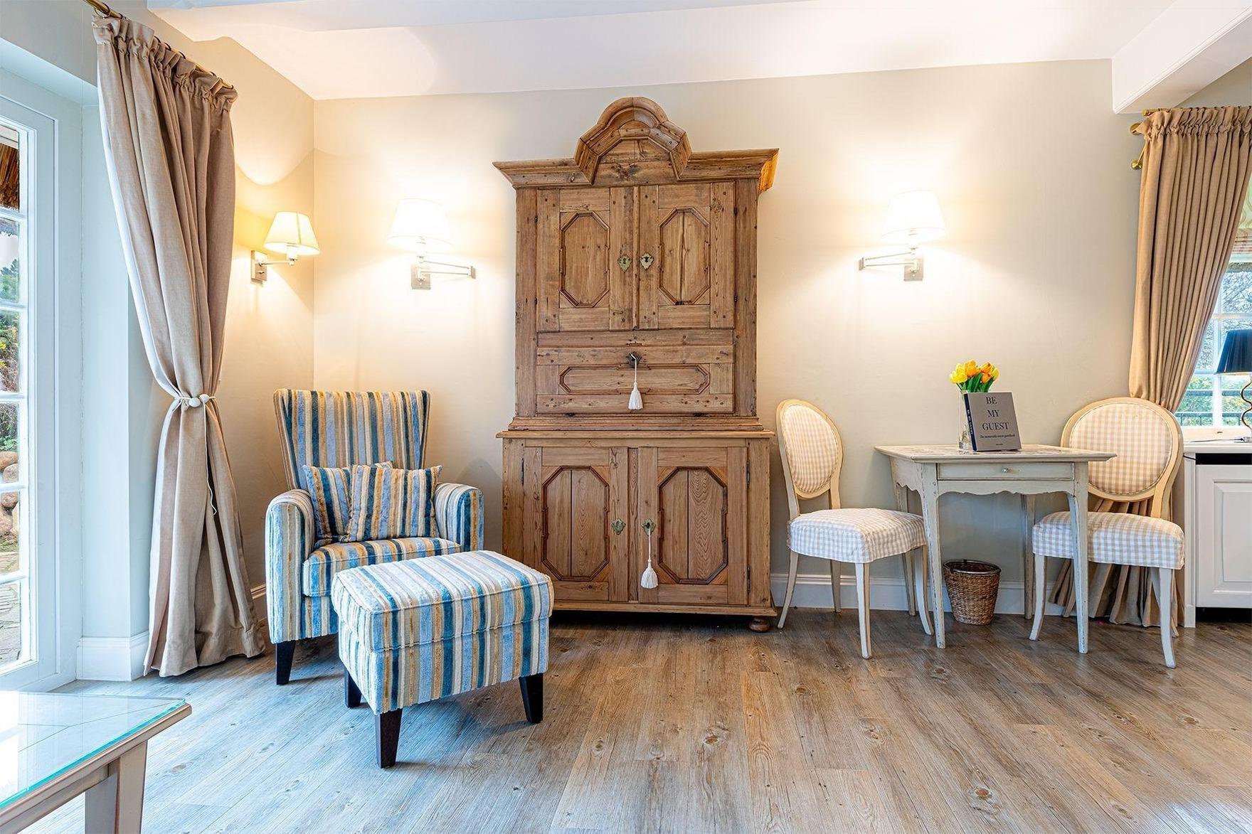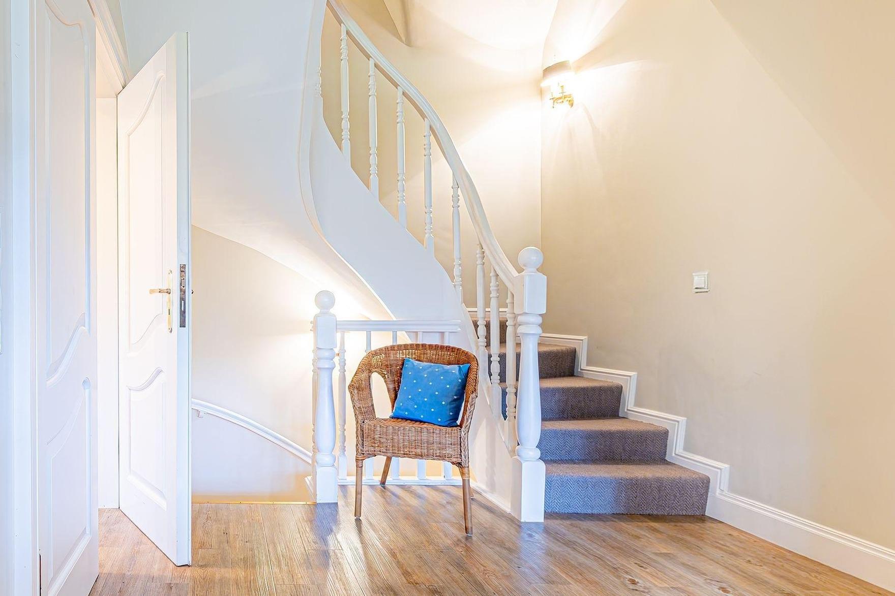 Die Ferienwohnung bietet komfortable drei Schlafzimmer mit jeweils einem Doppelbett und verfügt über drei moderne Badezimmer, die mit Duschbad und Badewanne ausgestattet sind. Die offene Küche lässt keine Wünsche offen und ist mit einem Elektro-/Gasherd, Geschirrspüler, Kühlschrank, Backofen, Mikrowelle und weiteren Annehmlichkeiten wie einer Kaffeemaschine und einem Toaster ausgestattet. Für Familien stehen zudem ein Kinderhochstuhl und ein Esstisch zur Verfügung. Der großzügige Wohnbereich lädt mit einem Sofa und einem Kamin zur Entspannung ein. WLAN sorgt für eine durchgehende Internetverbindung. Zur Ausstattung gehören auch ein TV, Haartrockner, Bügeleisen und Staubsauger. Ein Parkplatz steht zur Verfügung und Allergiker können sich über eine geeignete Ausstattung freuen. Die Wohnung ist mit Rauchmeldern und einem Feuerlöscher gesichert. Ein Starterset an Reinigungsmitteln und Gewürzen rundet das Angebot ab.