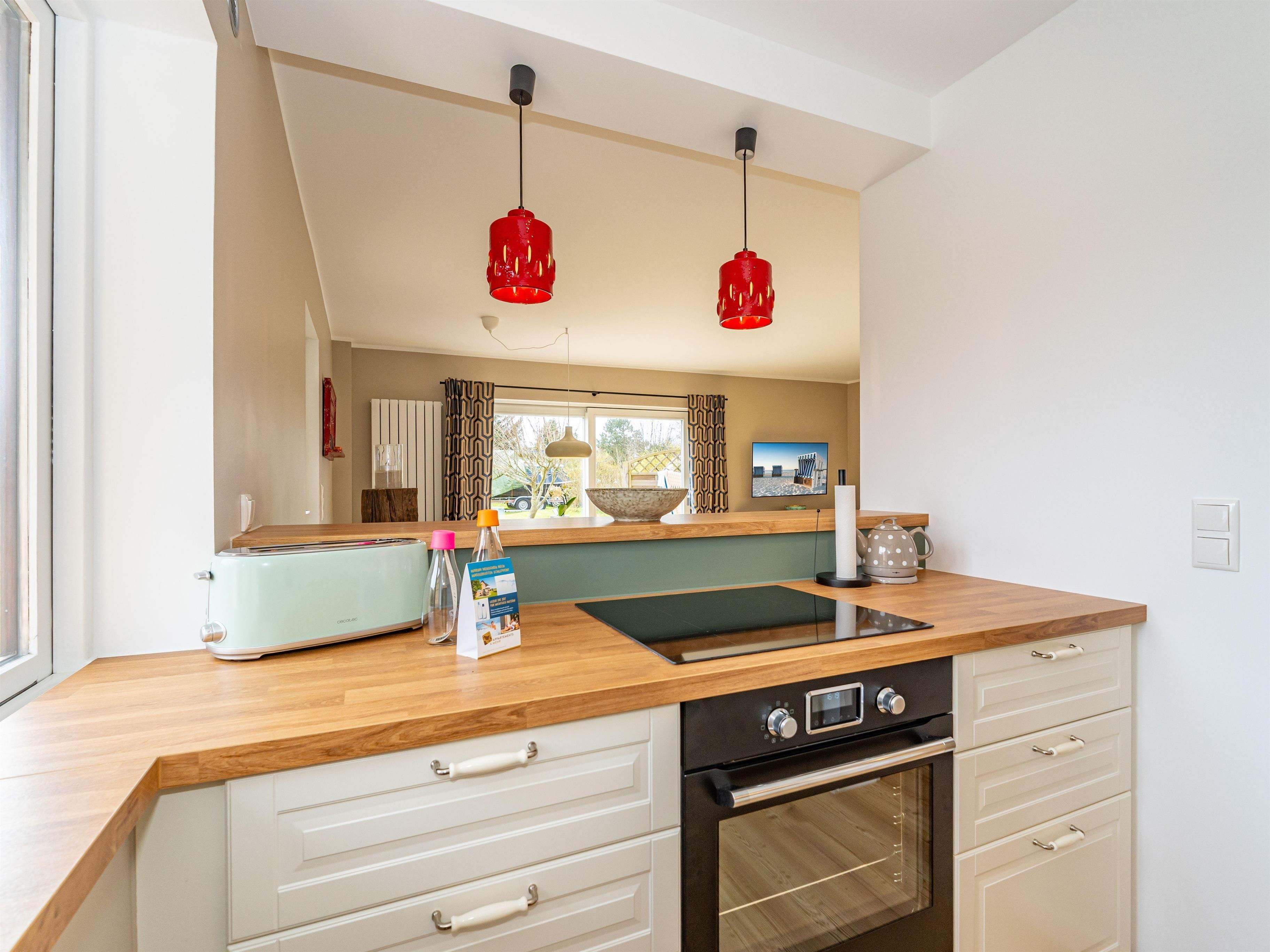 Wohnen in bester Lage und doch mitten in der Ruhe der Natur. Heideland, Wildblumenwiese und sogar ein kleiner Hühnerstall sorgen für ländliche Gemütlichkeit - fußläufig nach Kampen Mitte. Frisch saniert erreichen Sie dieses schmucke Appartement für bis zu Vier Sie einen Pfad durch den naturbelassenen Garten und betreten es direkt im Wohnbereich. Bequeme Polstermöbel, ein Esstisch für gemütliche Runden, Zugang zur Südterrasse mit Strandkorb und eine halboffene voll ausgestattete Küche erwarten Sie hier. Über den Flur, vorbei am kleinen und ganz neuen Duschbad, teilt sich der Weg in zwei Doppelzimmer mit zwei Bettvarianten - zu stellen jeweils als ein Doppel- oder zwei Einzelbetten. Das Quartier ist mit Designboden in Holzoptik ausgelegt. Landhausstil gemixt mit stylischen Elementen, eine Terrasse mit fast den ganzen Tag über Sonne und Weitblick über die Heide.
