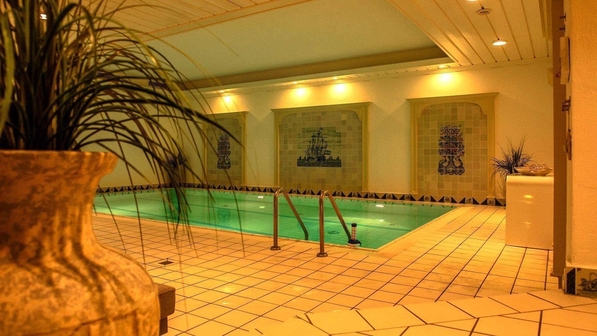 Exklusiver Wellnessbereich im Haus mit großzügigem Schwimmbad (3 Bahnen), Sauna und Relax-Liegen. Kostenfreie Nutzung von W-Lan im Hause.