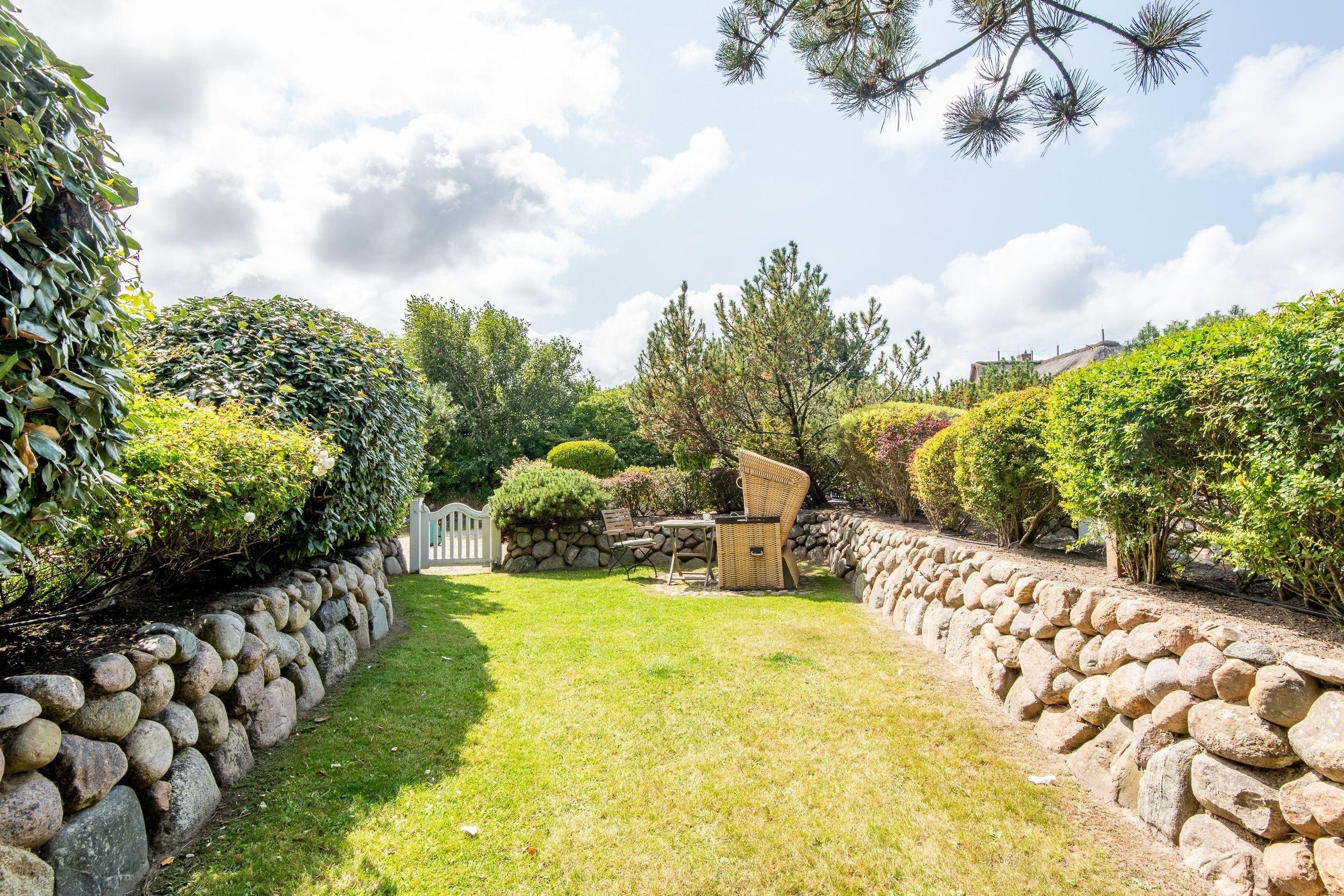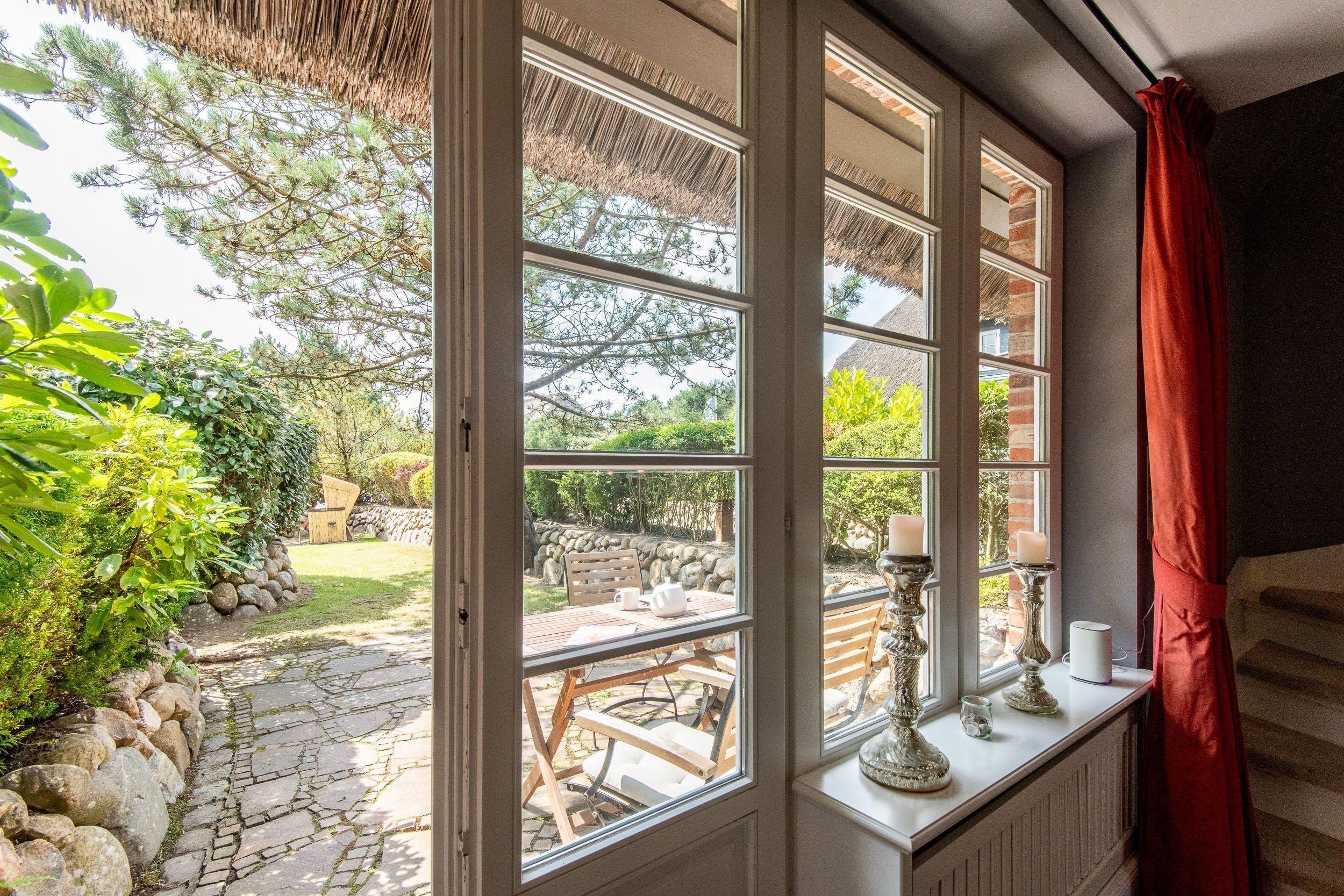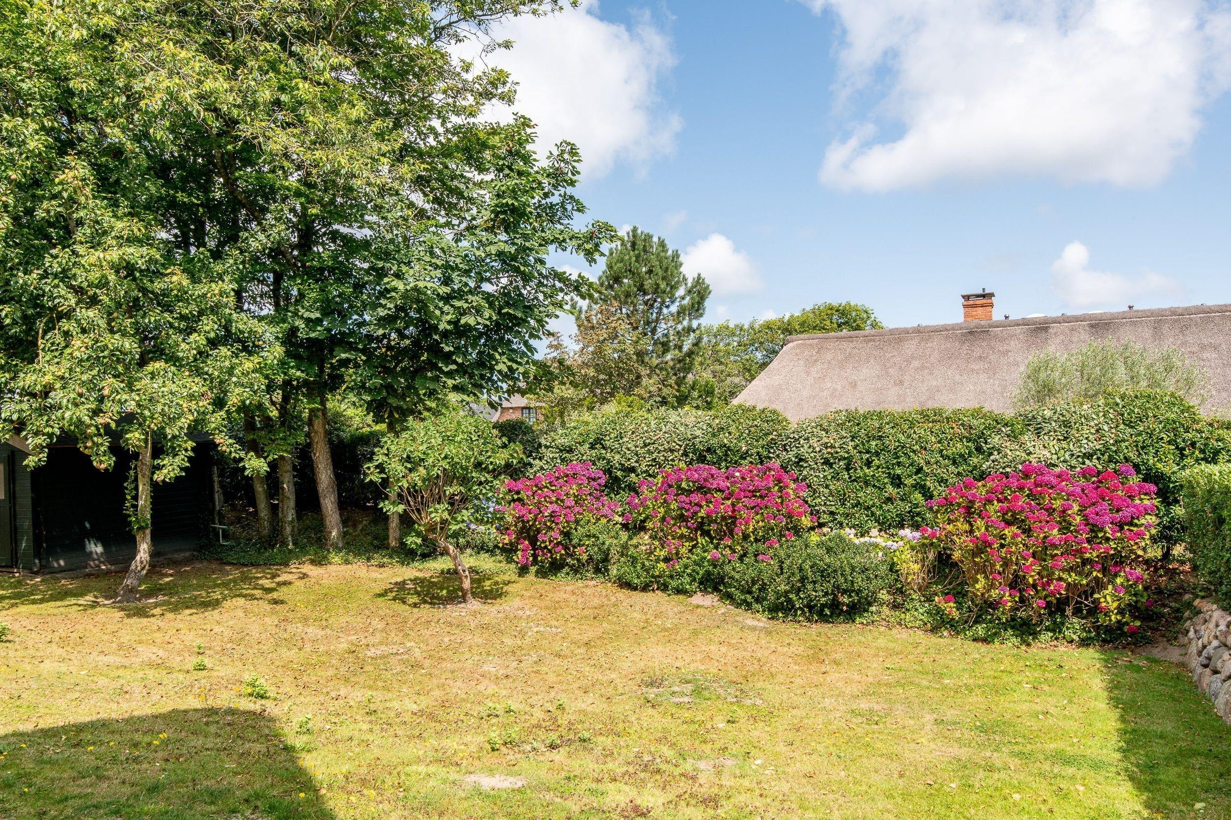 Im Herzen Kampens und ruhig gelegenes edles Reetdachhaus, durch einen Gartenweg von der Straße entfernt, herrlich eingewachsenes Grundstück mit eigenem sonnigen Süd-Garten.